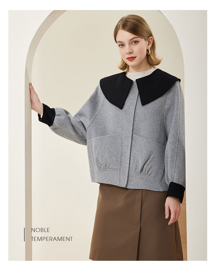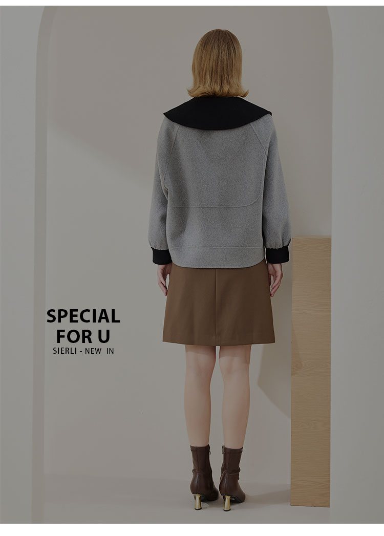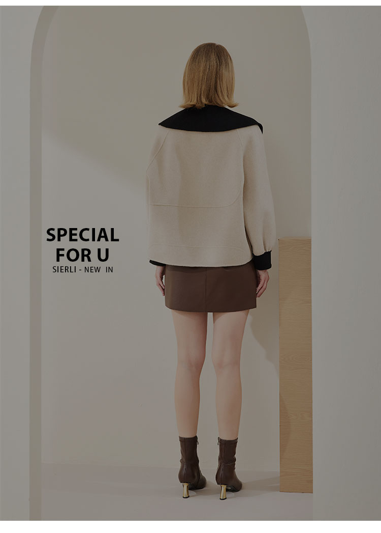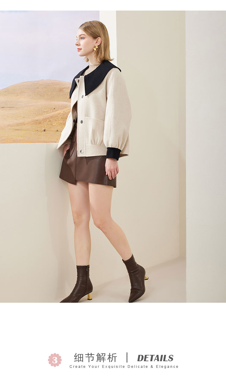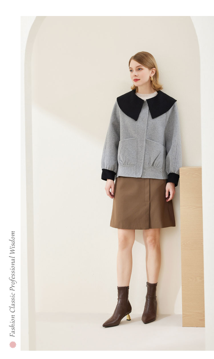 MH9J2斯尔丽瑟俪2022年冬上新商场同款甜美名媛撞色娃娃领短款大衣