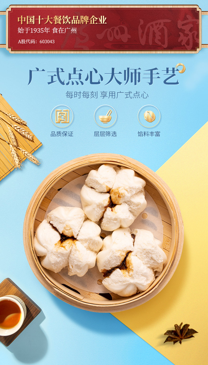 广州酒家开口叉烧包(270g/包 6个装)生产日期: 8月