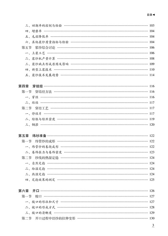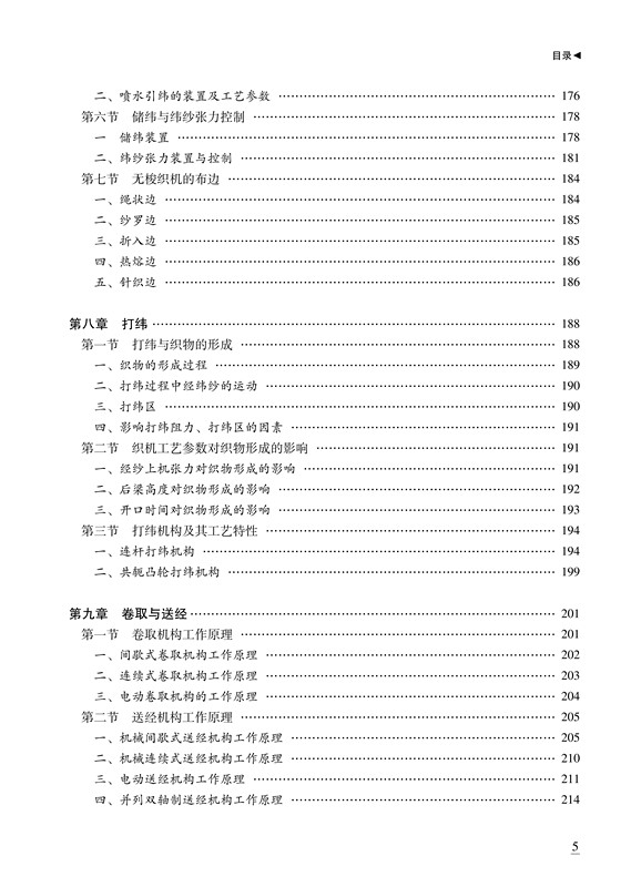 本书系统地介绍了由纱线加工成机织物的生产过程中各工序的工艺原理、工艺技术及产品质量,内容贯彻以工艺为主的原则,紧密联系生产实际。本书内容主要包括经纱准备工程的络筒、整经、浆纱、穿结经和纬纱准备工程,在织机上形成织物的开口、引纬、打纬、卷取与送经等主要工艺运动和原理,织物检验与整理。