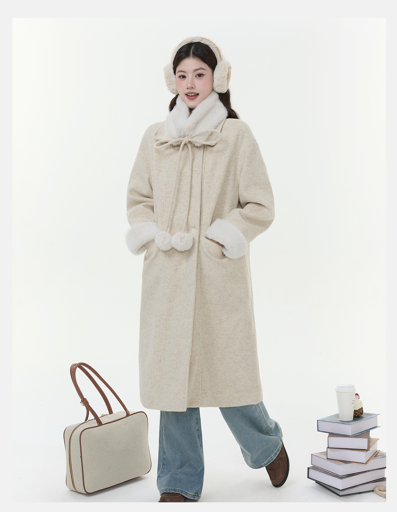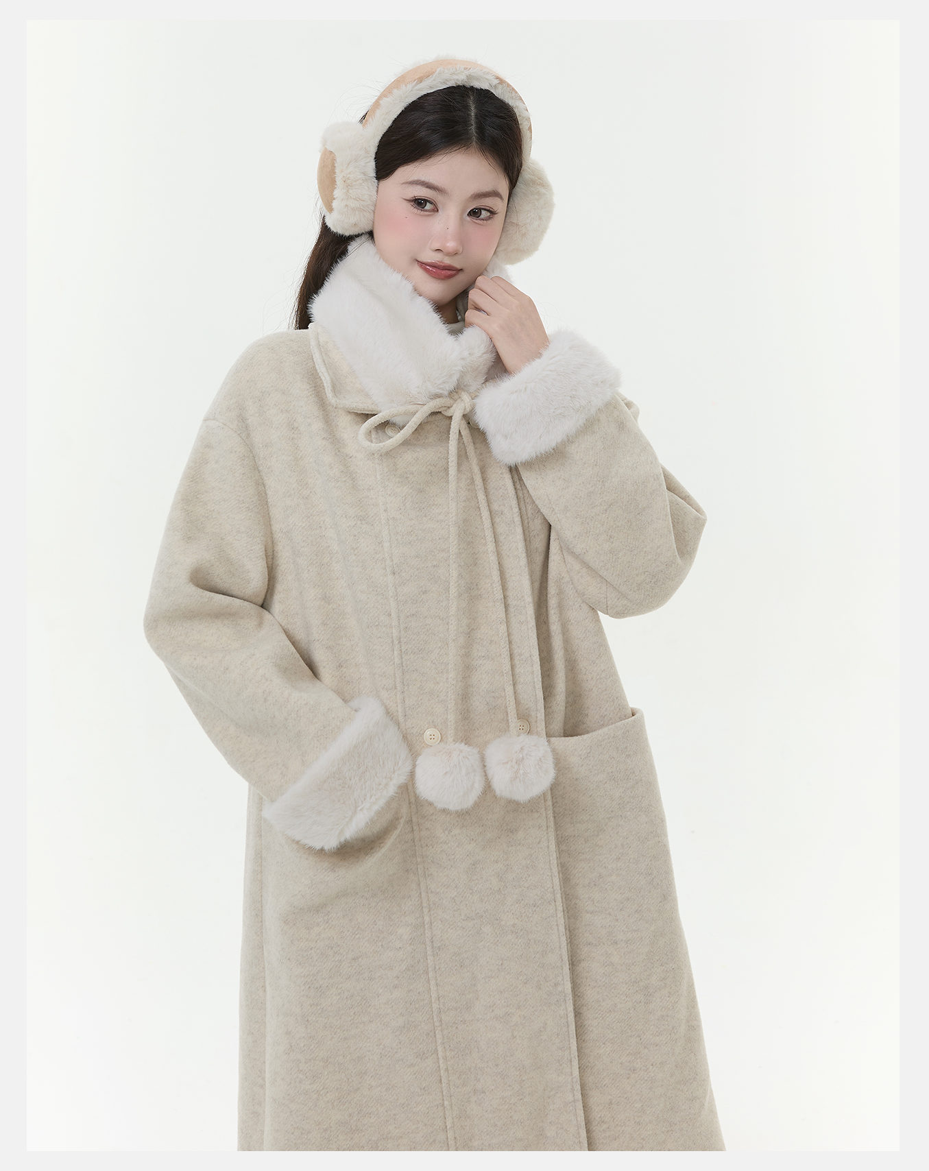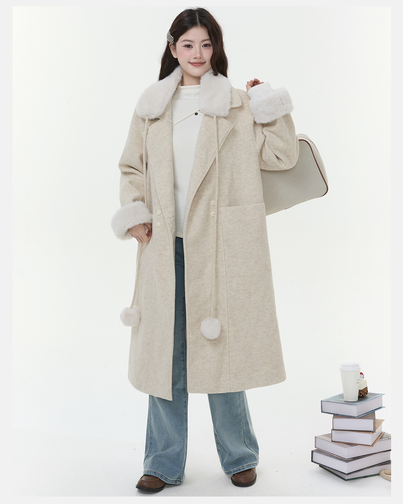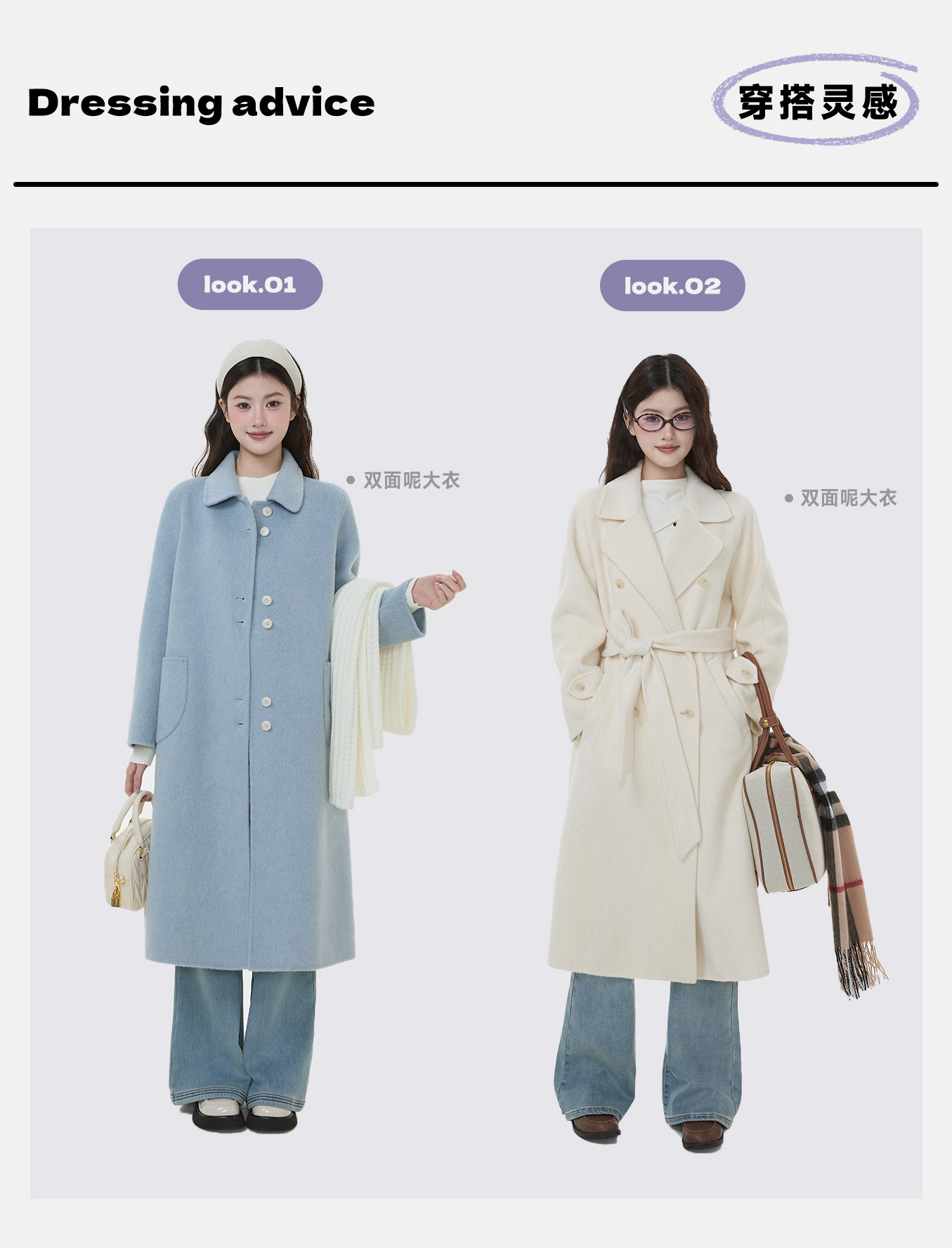 P&X设计师女装2025冬季宽松毛呢梭织长款外套825413236 燕麦色