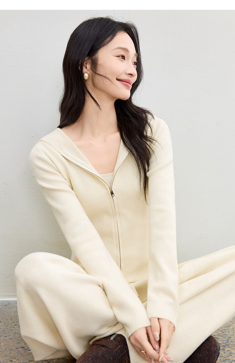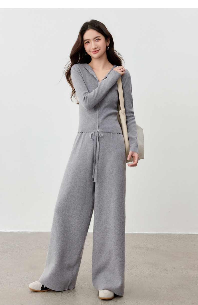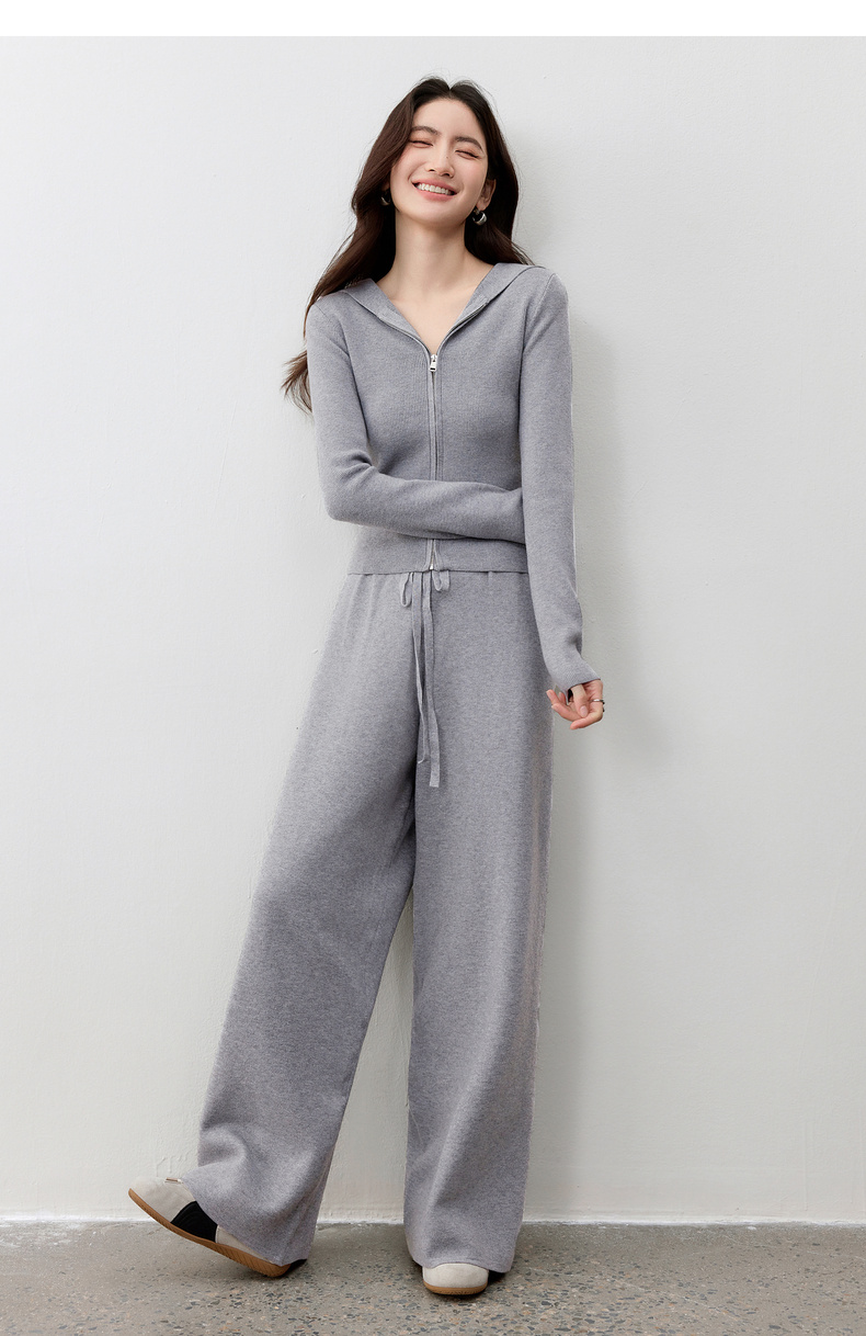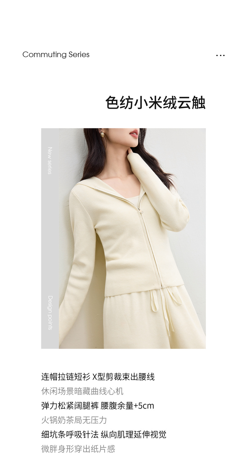 【内购】【裸肌云套装】连帽拉链衫+阔腿裤云感裸穿小米绒两件套-W53ZF3136