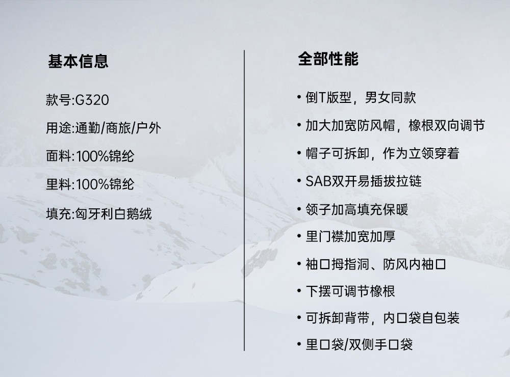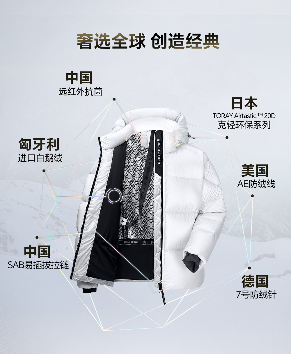 天石鹅铠甲冬季户外白鹅绒羽绒服男士女款可拆卸帽加厚东北严寒G320