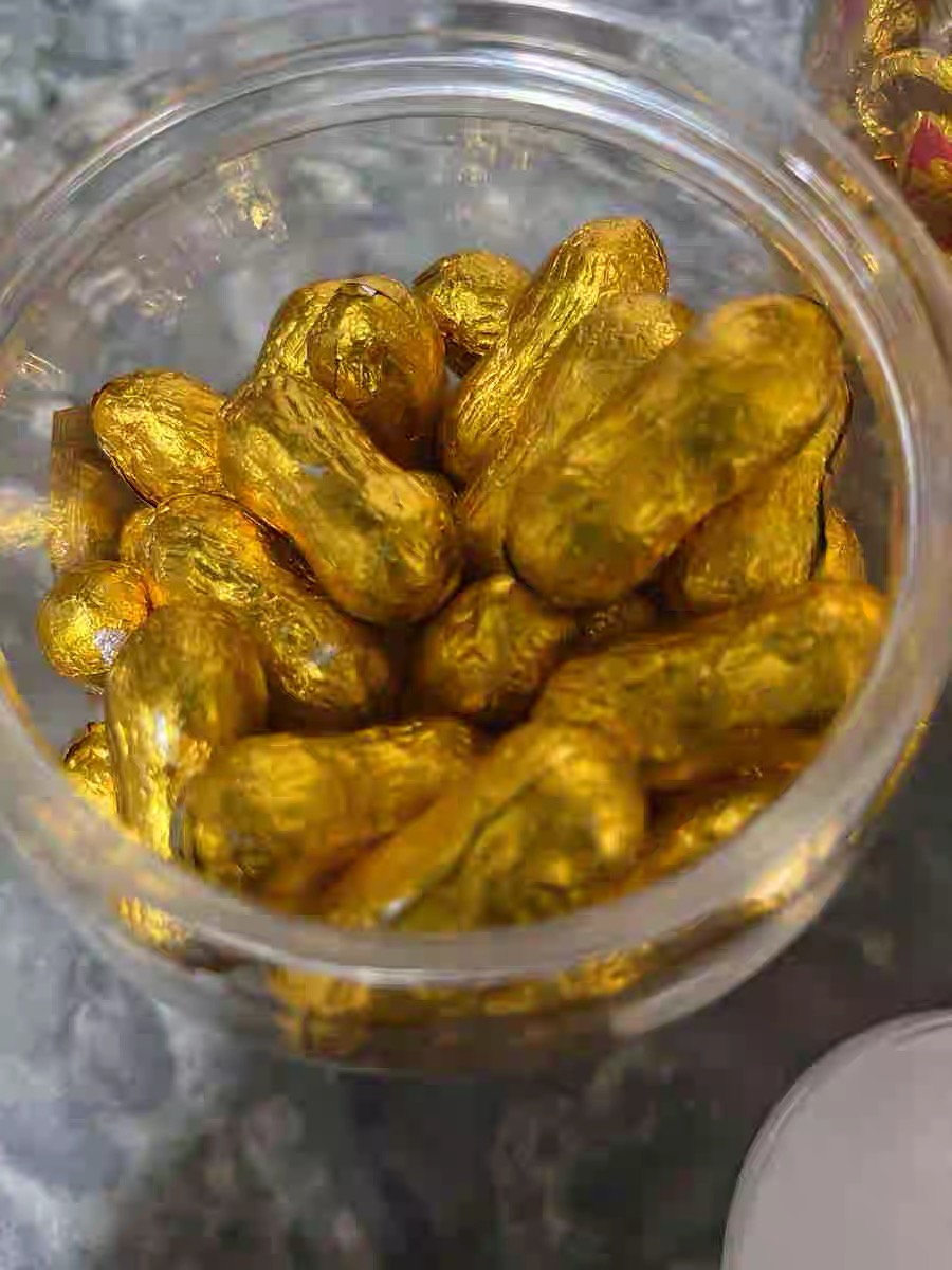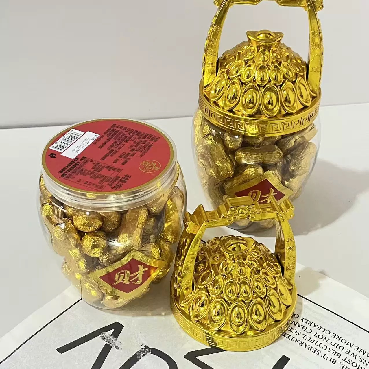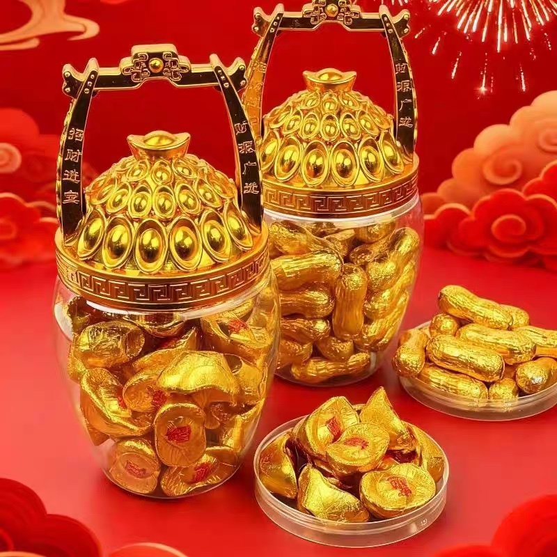 拜拜首选泉佳旺一桶金代可可脂巧克力(368g*2桶/对 元宝+花生)生产日期: 1月