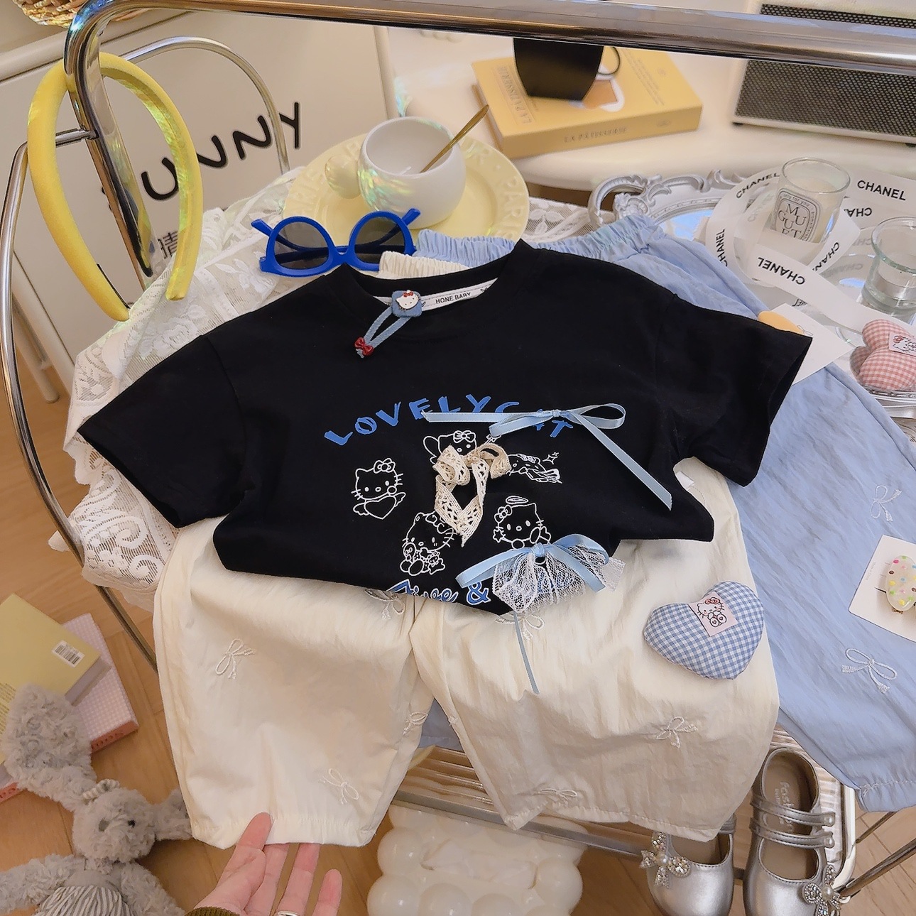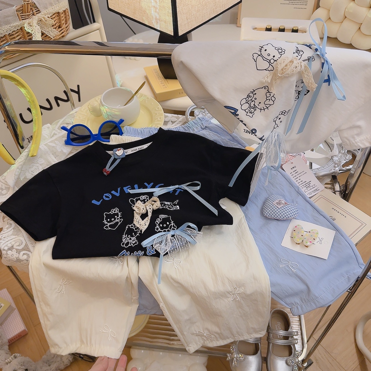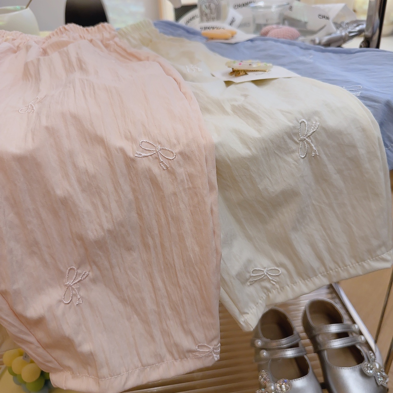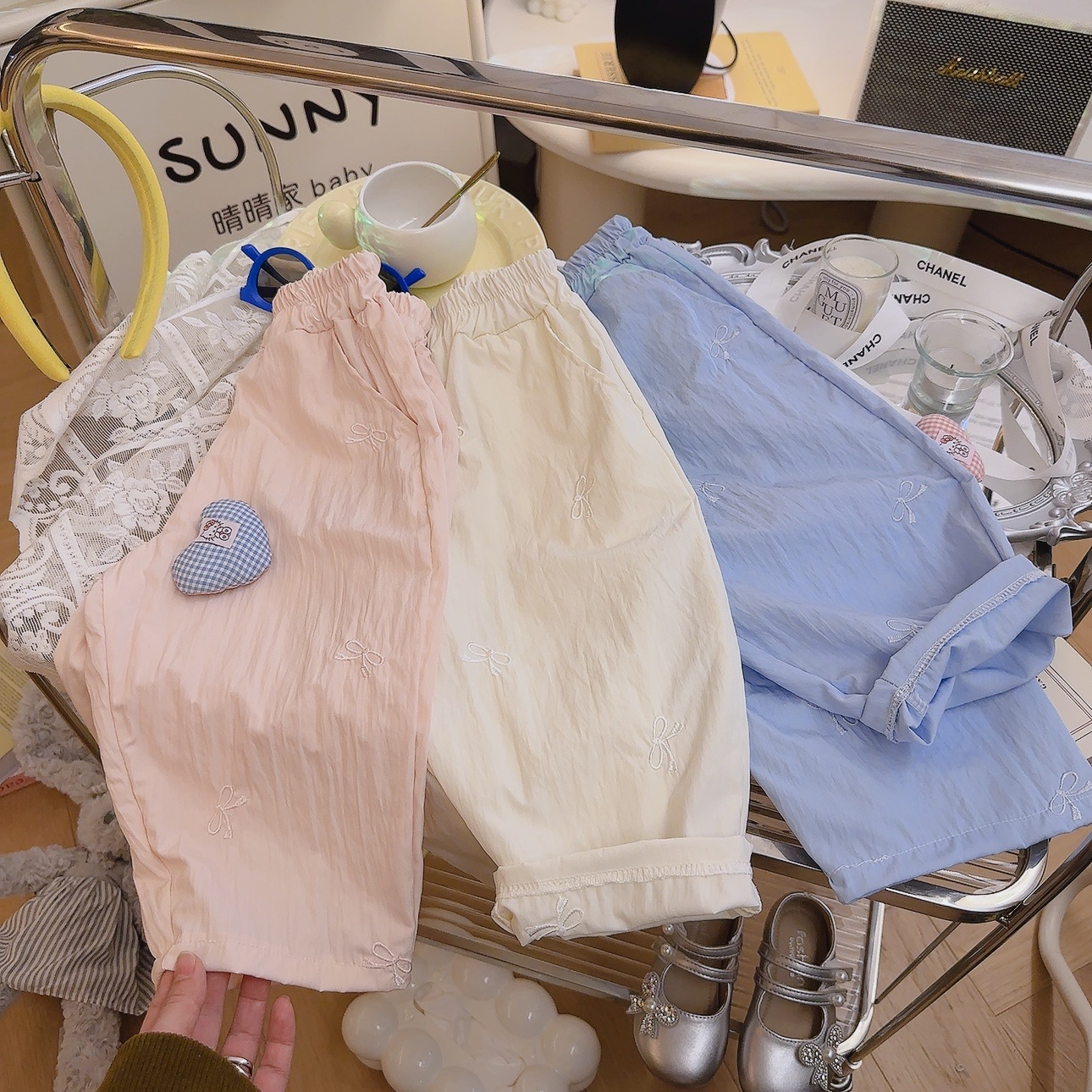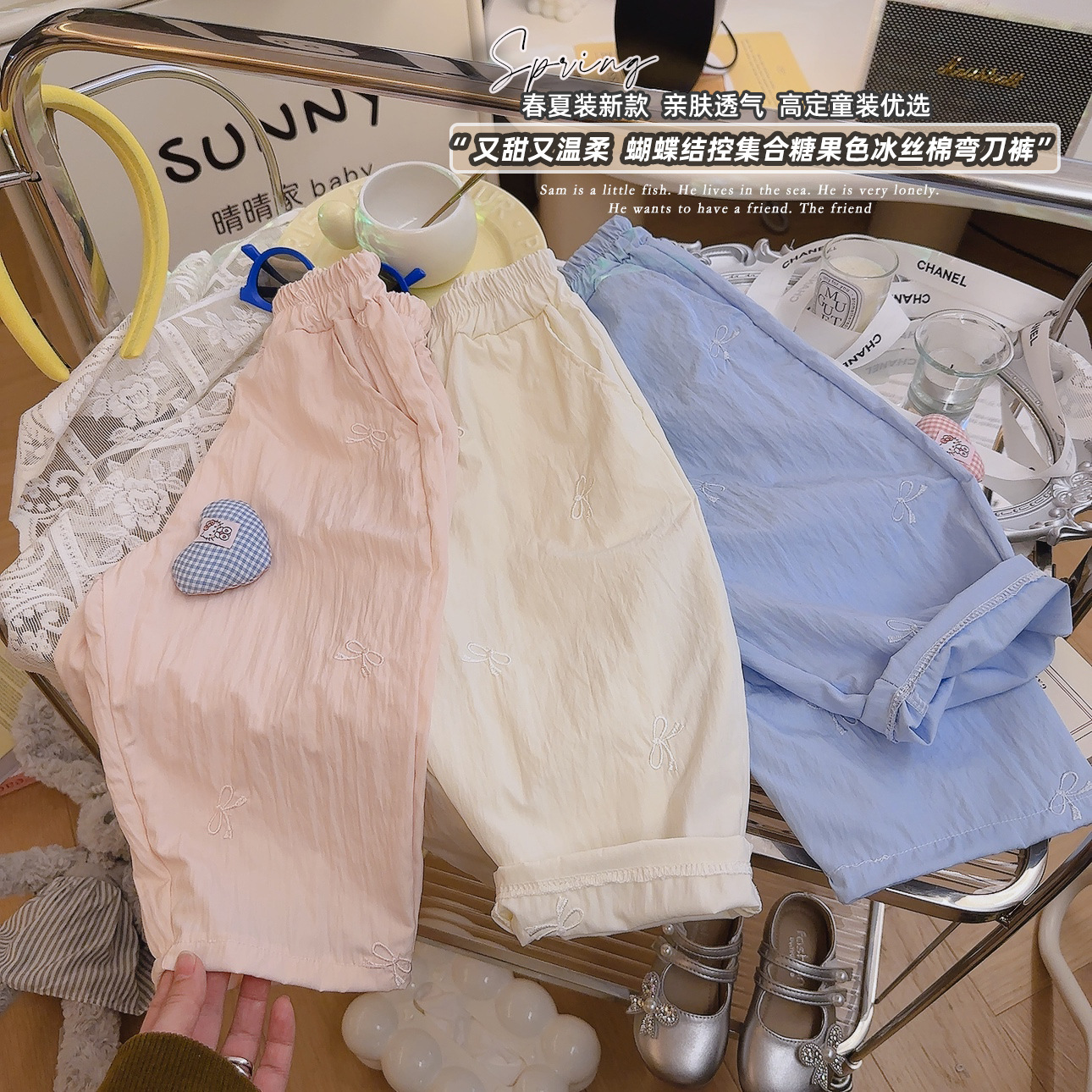 【亲子山本裤春秋】巴比童装2025新款女宝宝刺绣蝴蝶结阔腿裤儿童弯刀裤洋气★