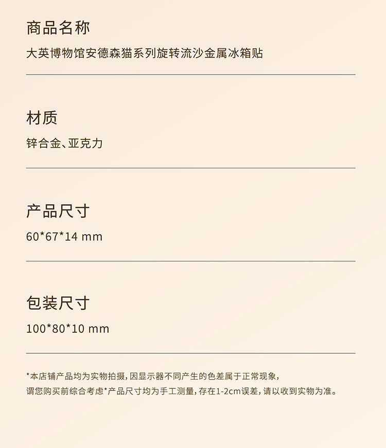 大英博物馆 盖亚·安德森猫系列 旋转流沙金属冰箱贴