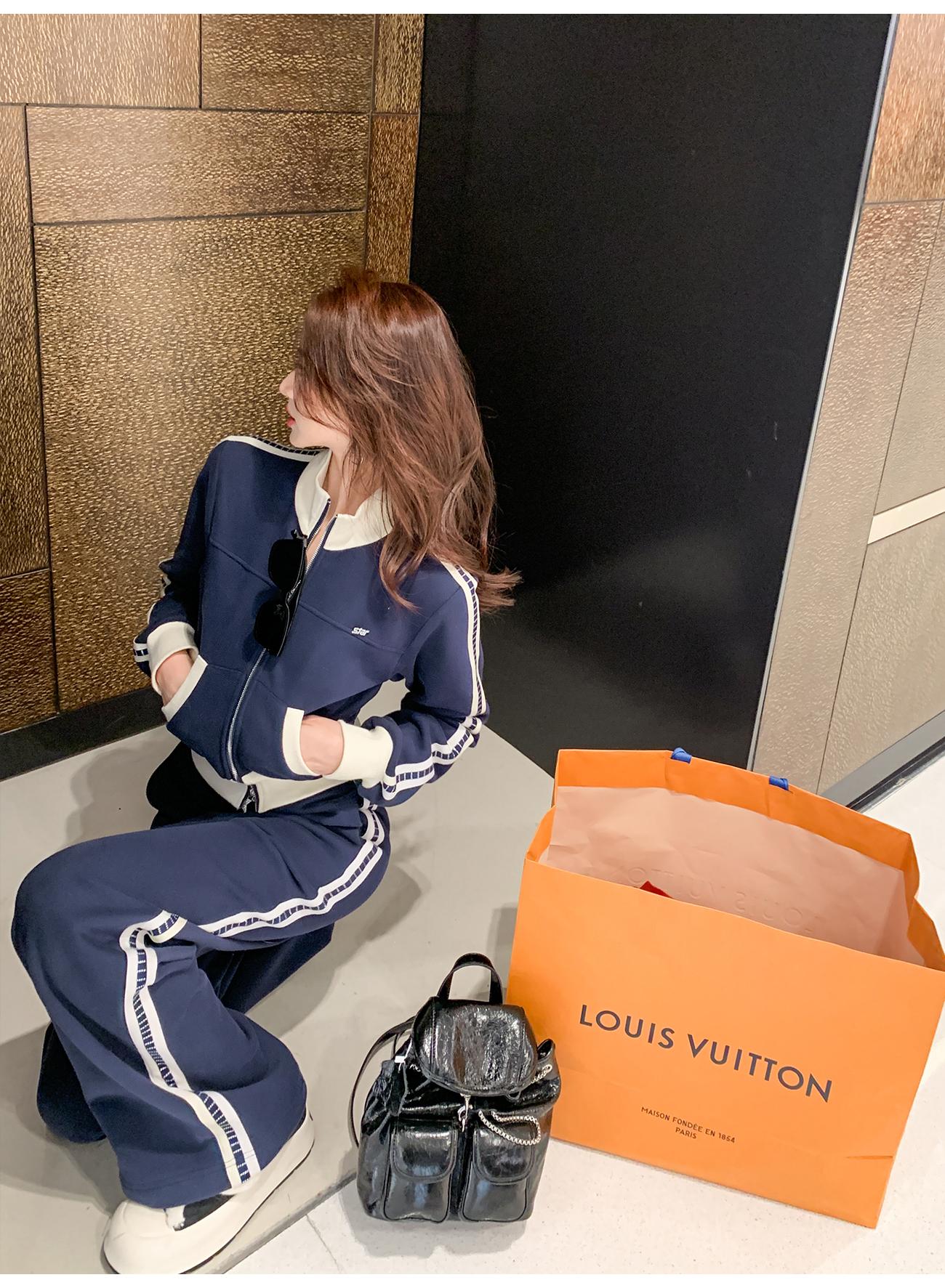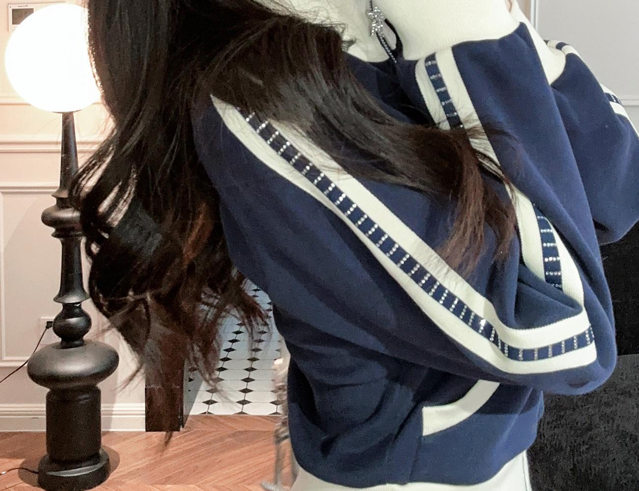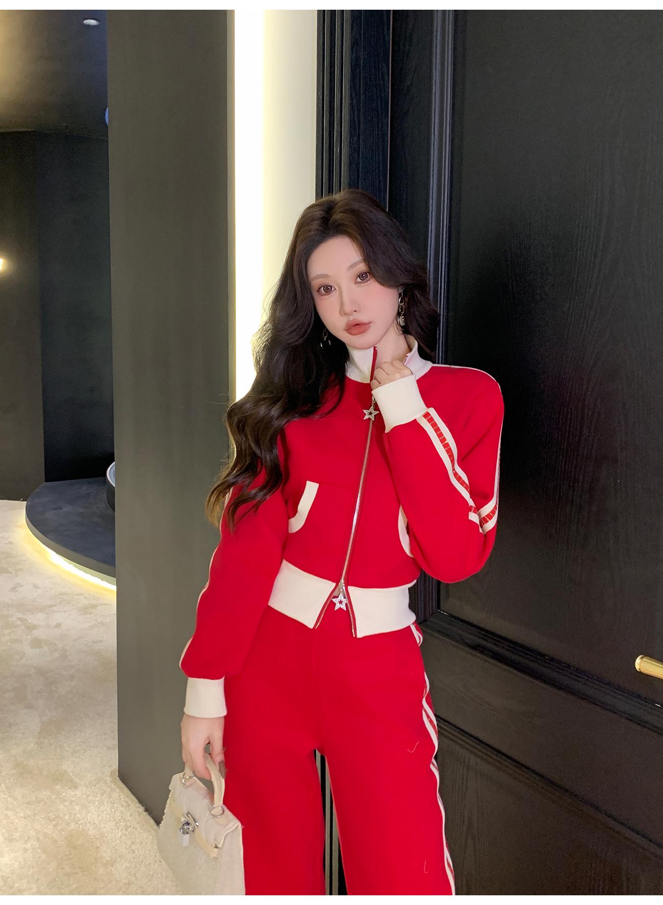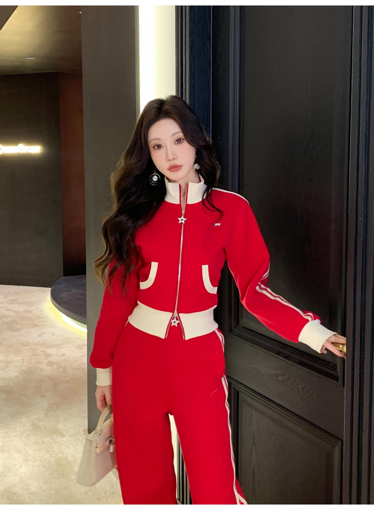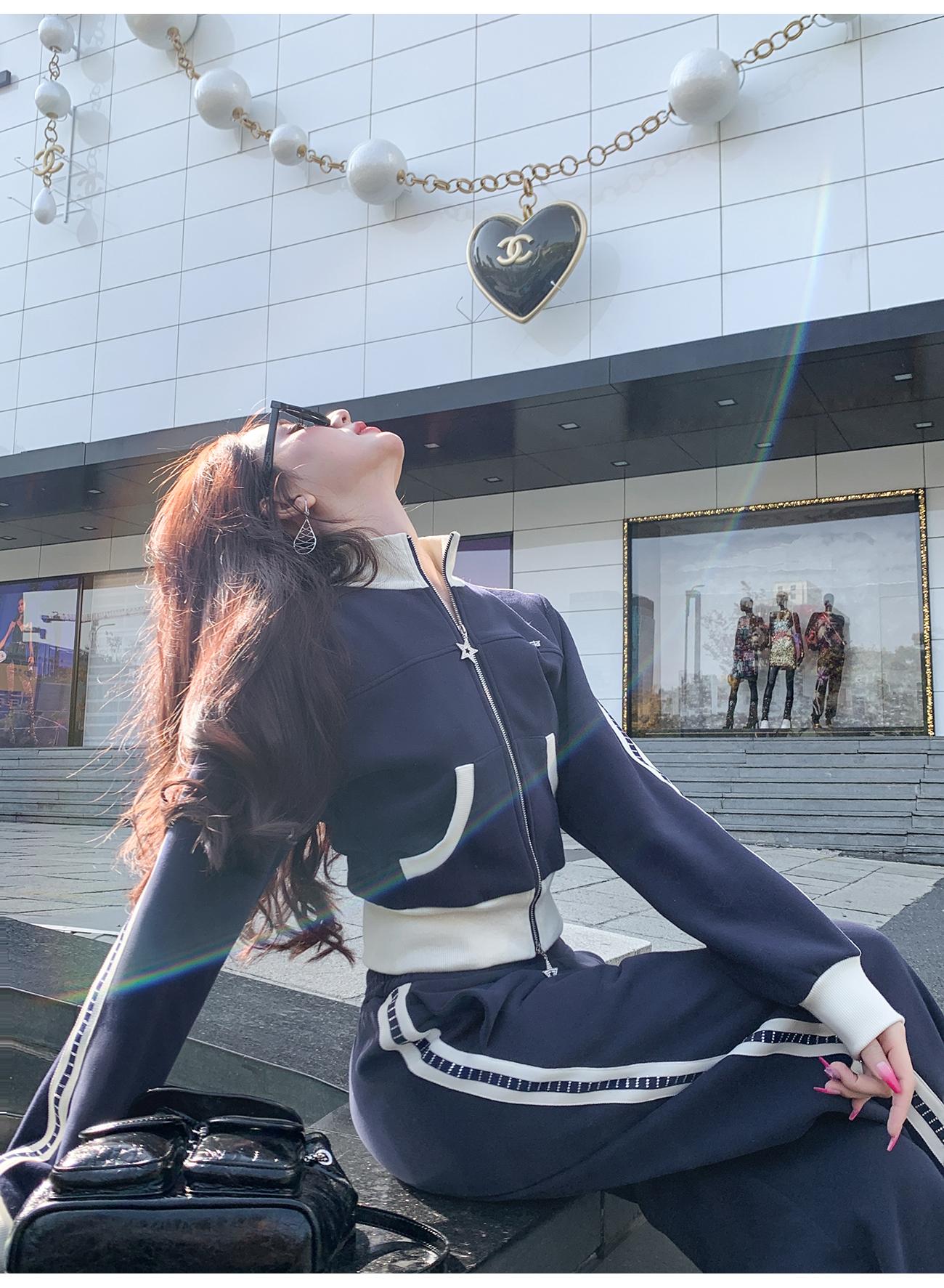 BeQueenStory【魅力出街】320g加绒烫钻撞色收腰直筒裤休闲显瘦套装