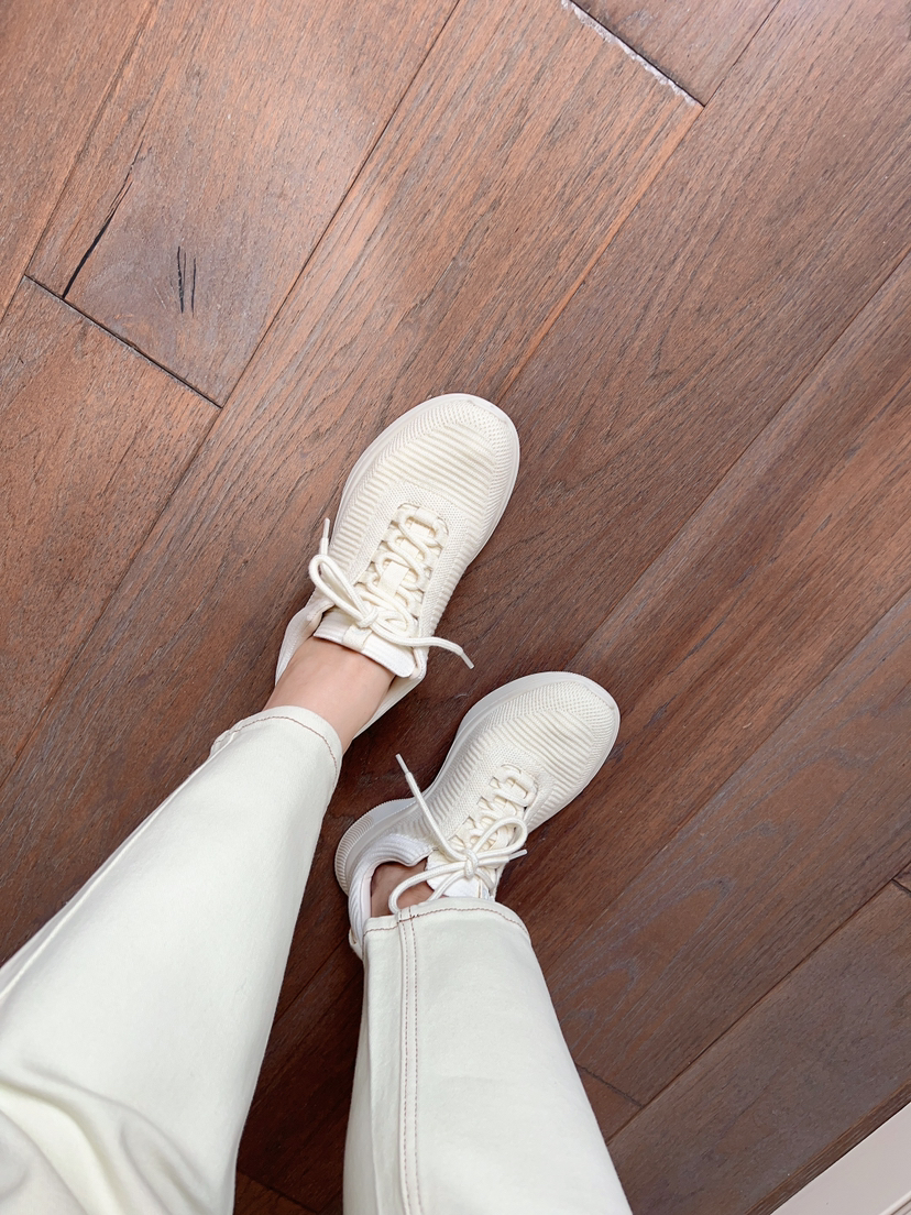 上脚完全就是袜套脚感,自然羊毛飞织的袜套脚感,比尼龙弹力鞋面的亲肤度,升级了不晓得多少倍。小禾羊毛飞织运动鞋,35-39我感觉偏大半码哦,我是肥脚36.5码,这双我穿36足够,因为针织鞋面有弹力。