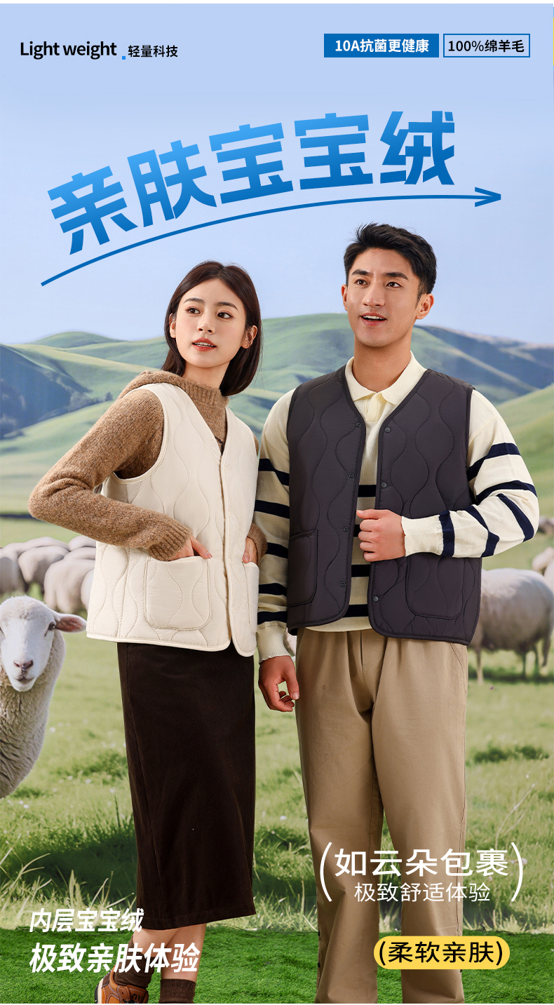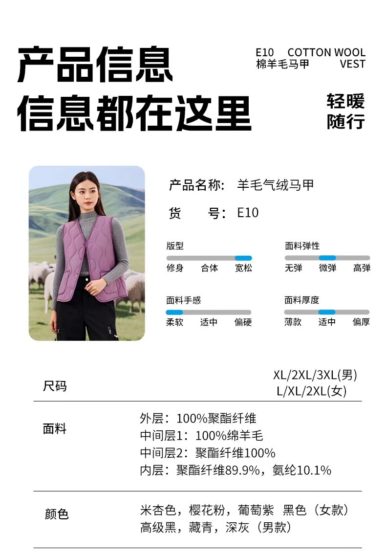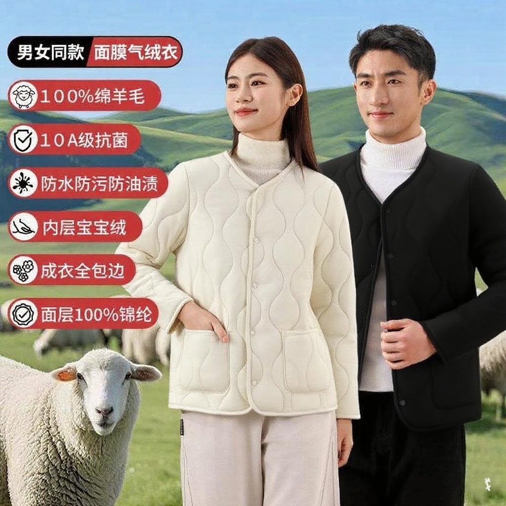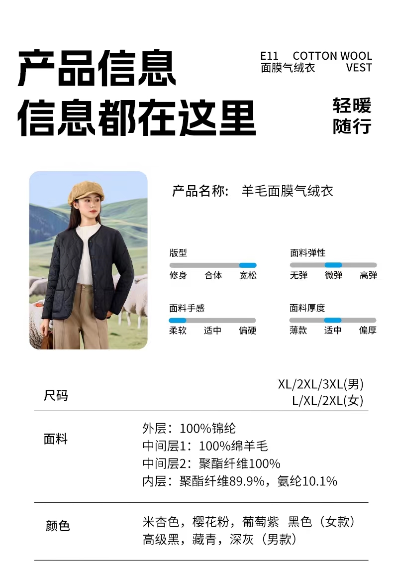 心选丨雅鹿 男女款羊毛气绒马甲&面膜气绒衣 100%鄂尔多斯羊毛填充 抗磨耐造巨锁温