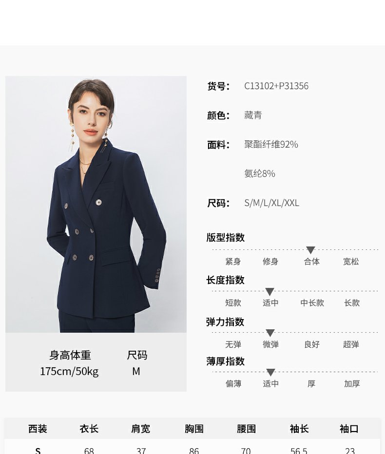 IWY/藏青色西装套装职业装高级西服外套女气质通勤商务显瘦工作服面试C13102+P11356