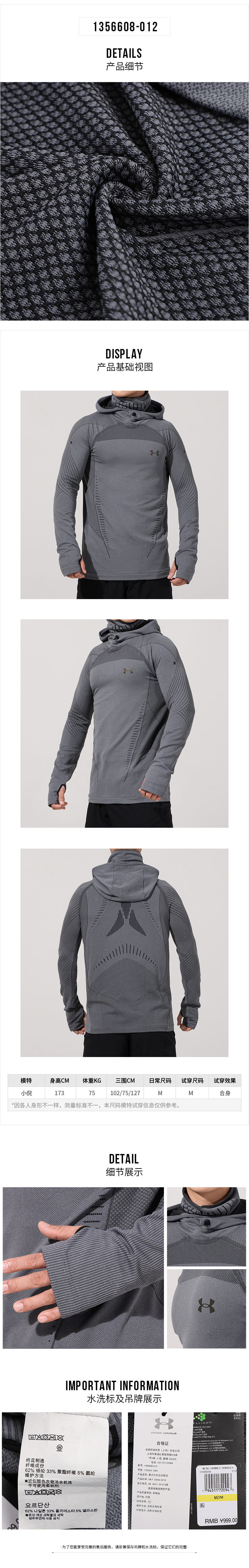 安德玛官方UA RUSH男子运动训练连帽长袖T恤Under Armour1356608