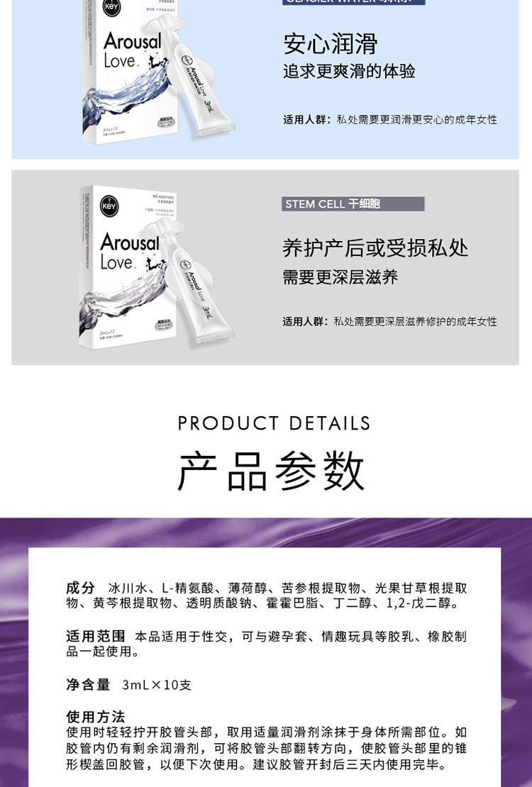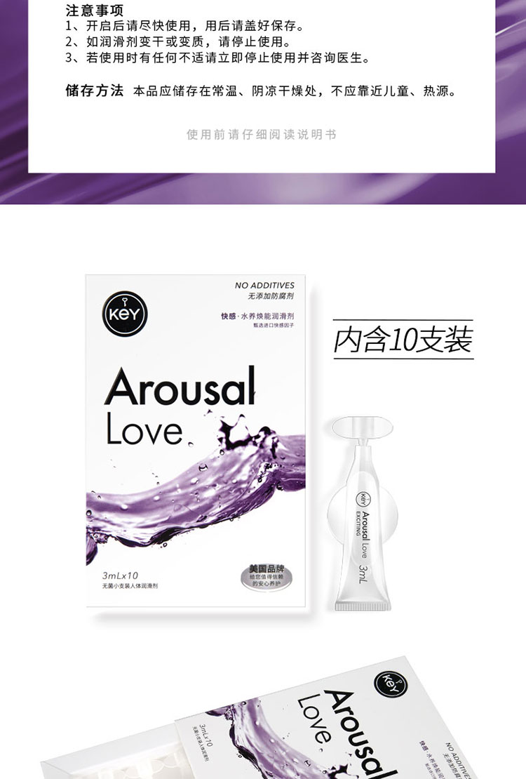 【R客户专拍!限时福利抢购!1:10送清洁湿巾!!】KEY润滑系列冰川水快感润滑10只装,若初活动专拍!!