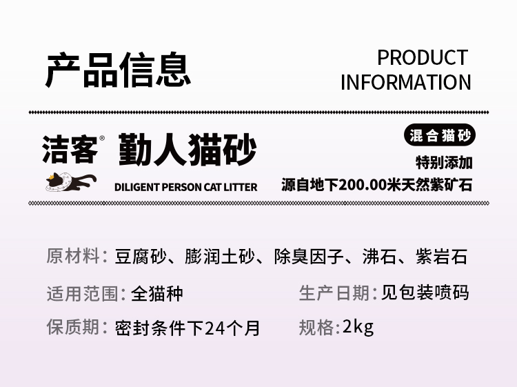 洁客猫砂膨润土豆腐混合猫砂紫岩石除臭无尘吸水快去味结团2公斤