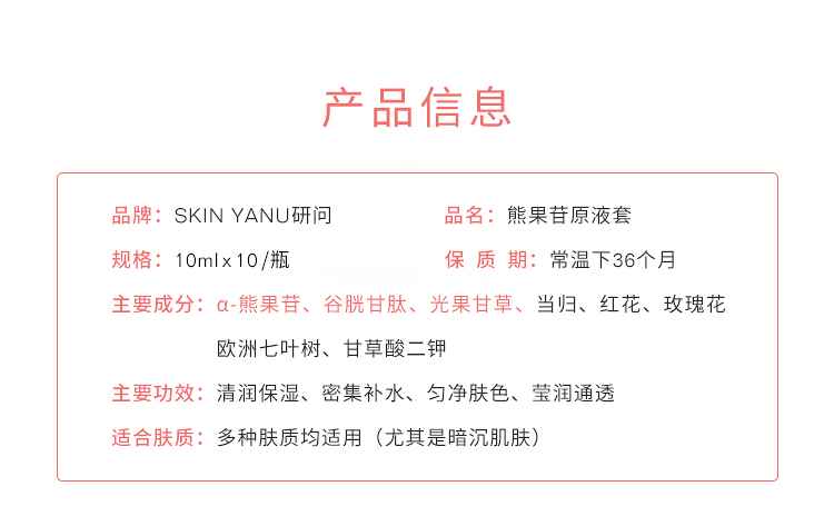 护肤专研 熊果苷原液单支10ml&套盒10支*10ml