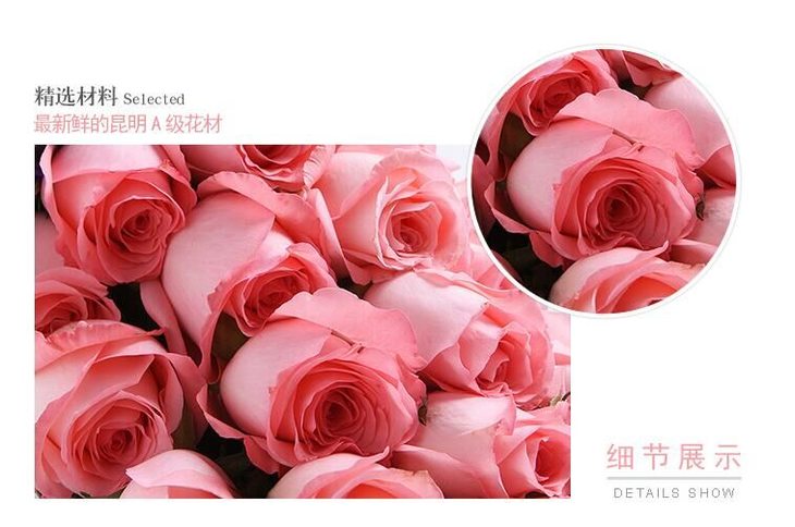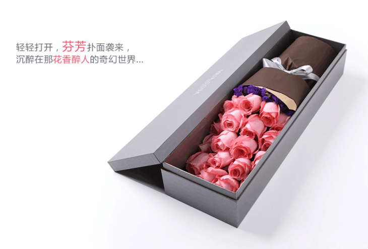 高档礼盒装鲜花:戴安娜粉玫瑰19枝,勿忘我适量