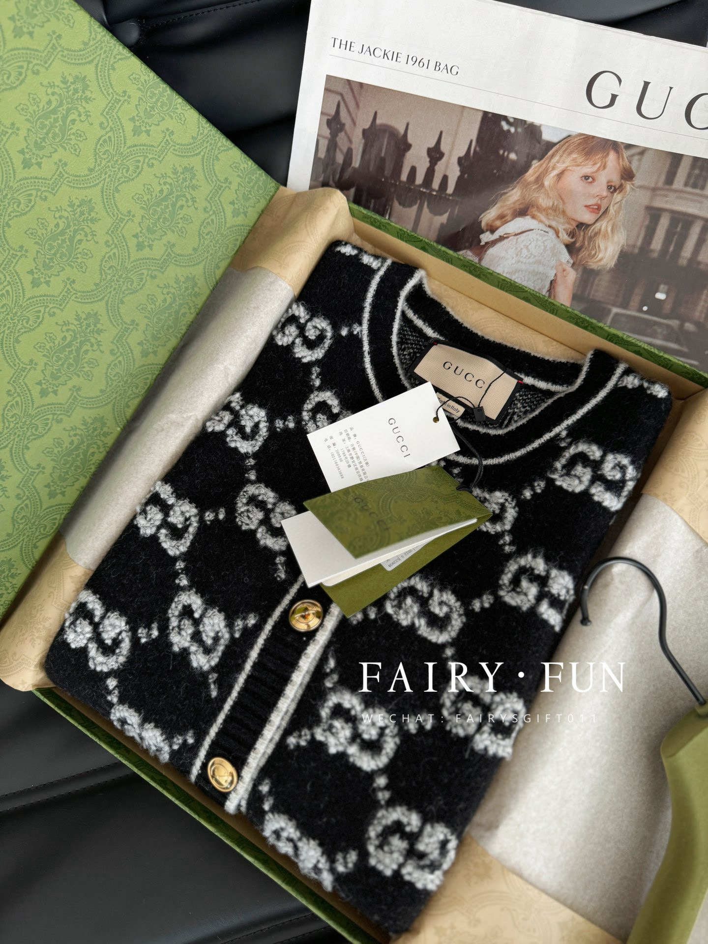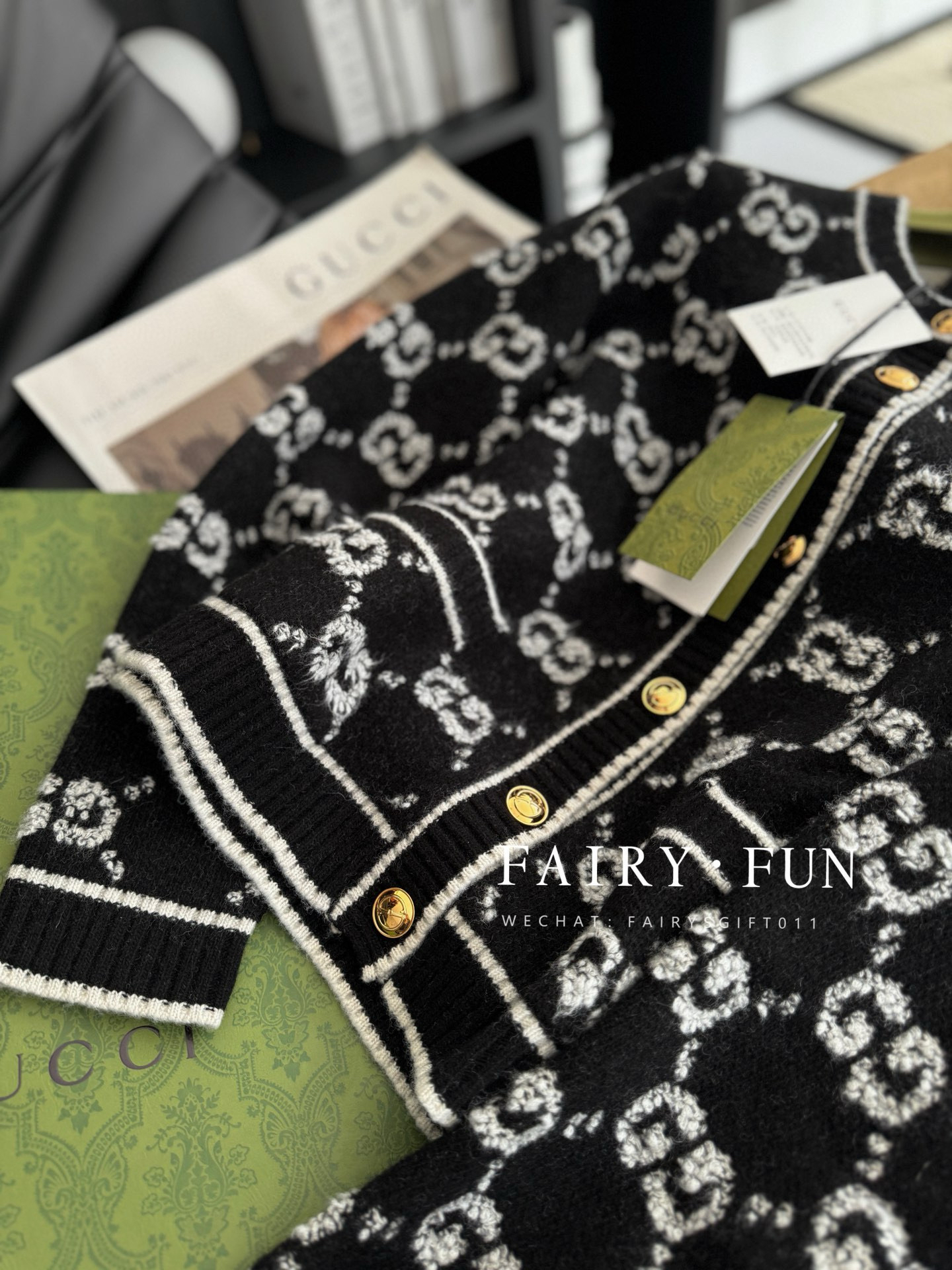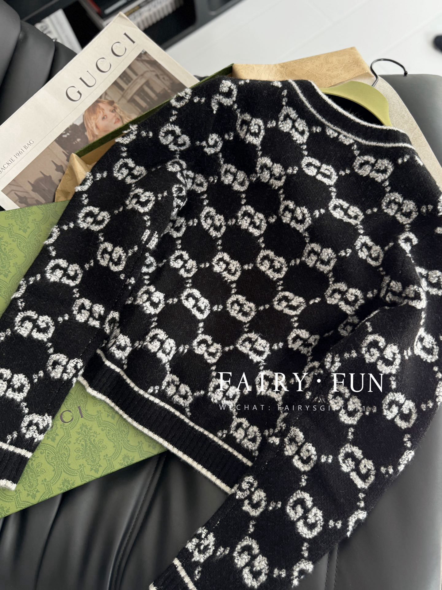 GG-S 黑色羊毛结子绒开衫