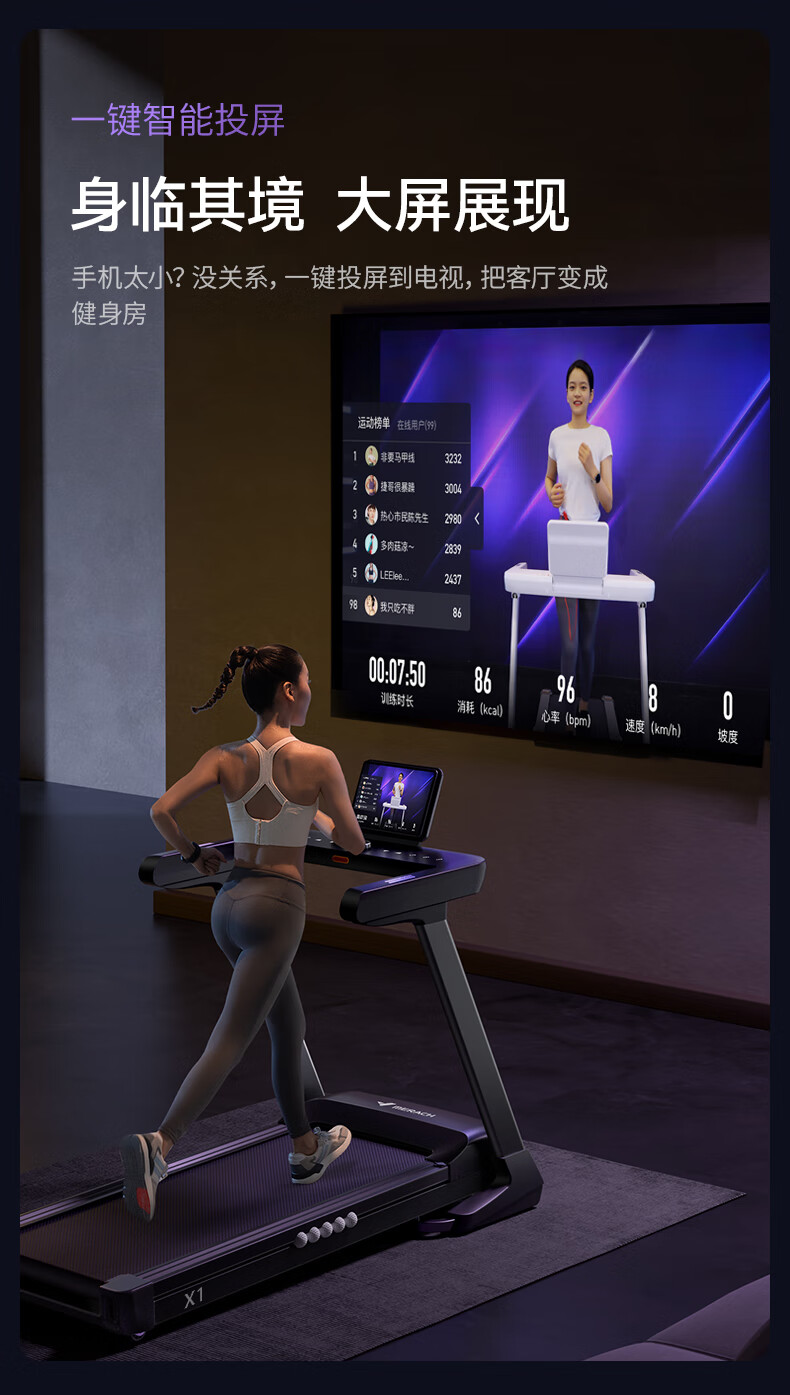 麦瑞克(MERACH)跑步机家庭用高端智能控速爬坡静音折叠健身房减震走步机 幻影X1 TOP新款/智能控速/18档坡度