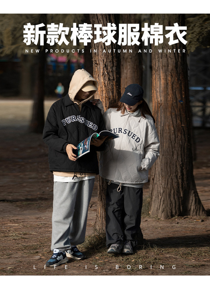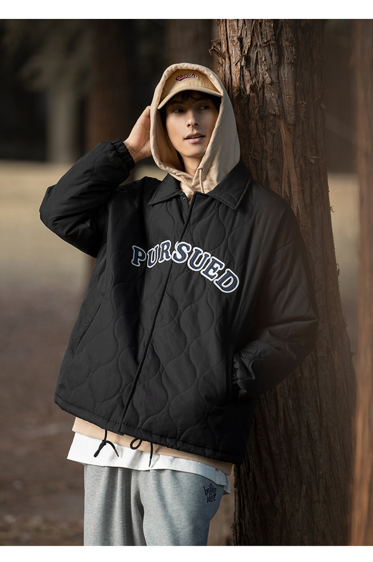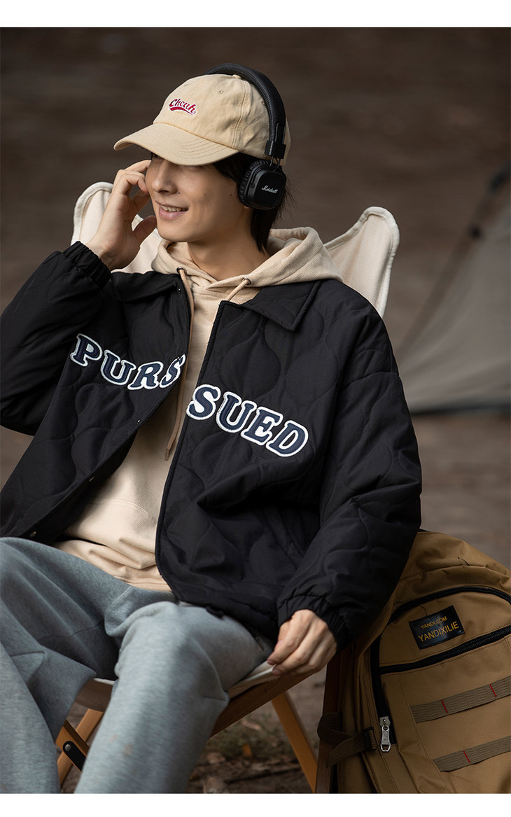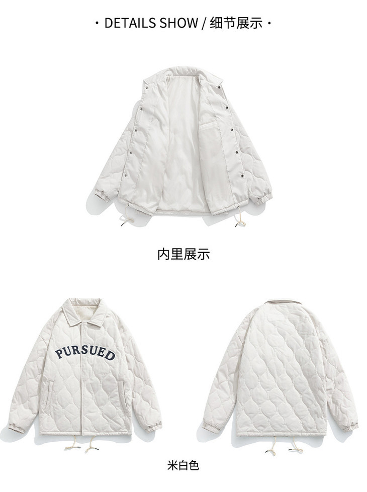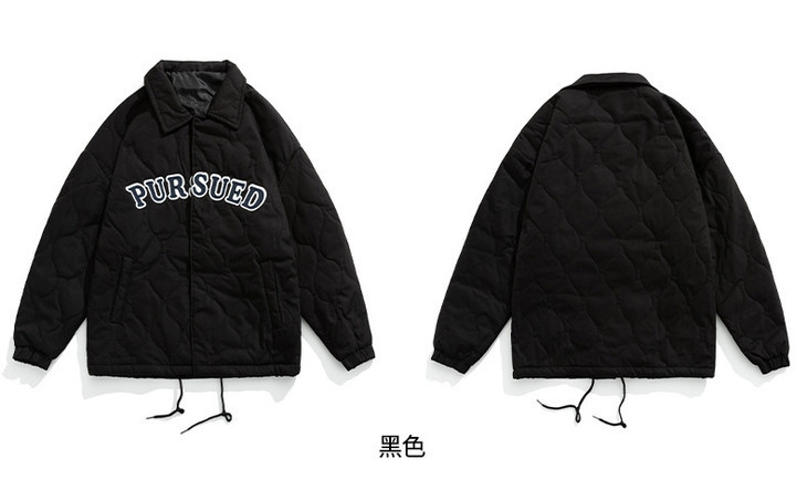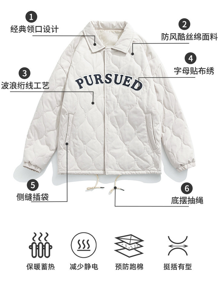 「黑白两色!抗风保暖水洗棉」情侣主推款-潮牌刺绣棉服 秋冬新款复古翻领加厚夹克外套上衣