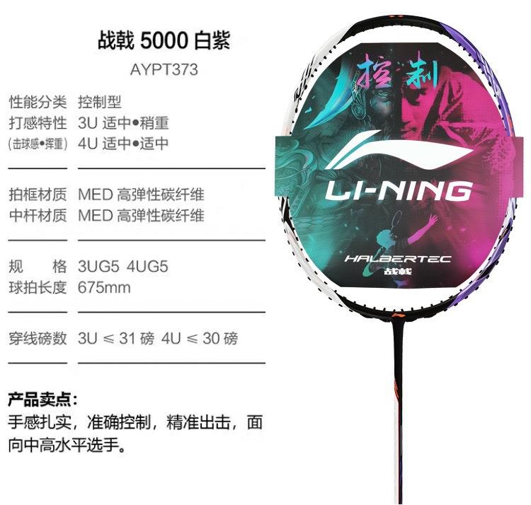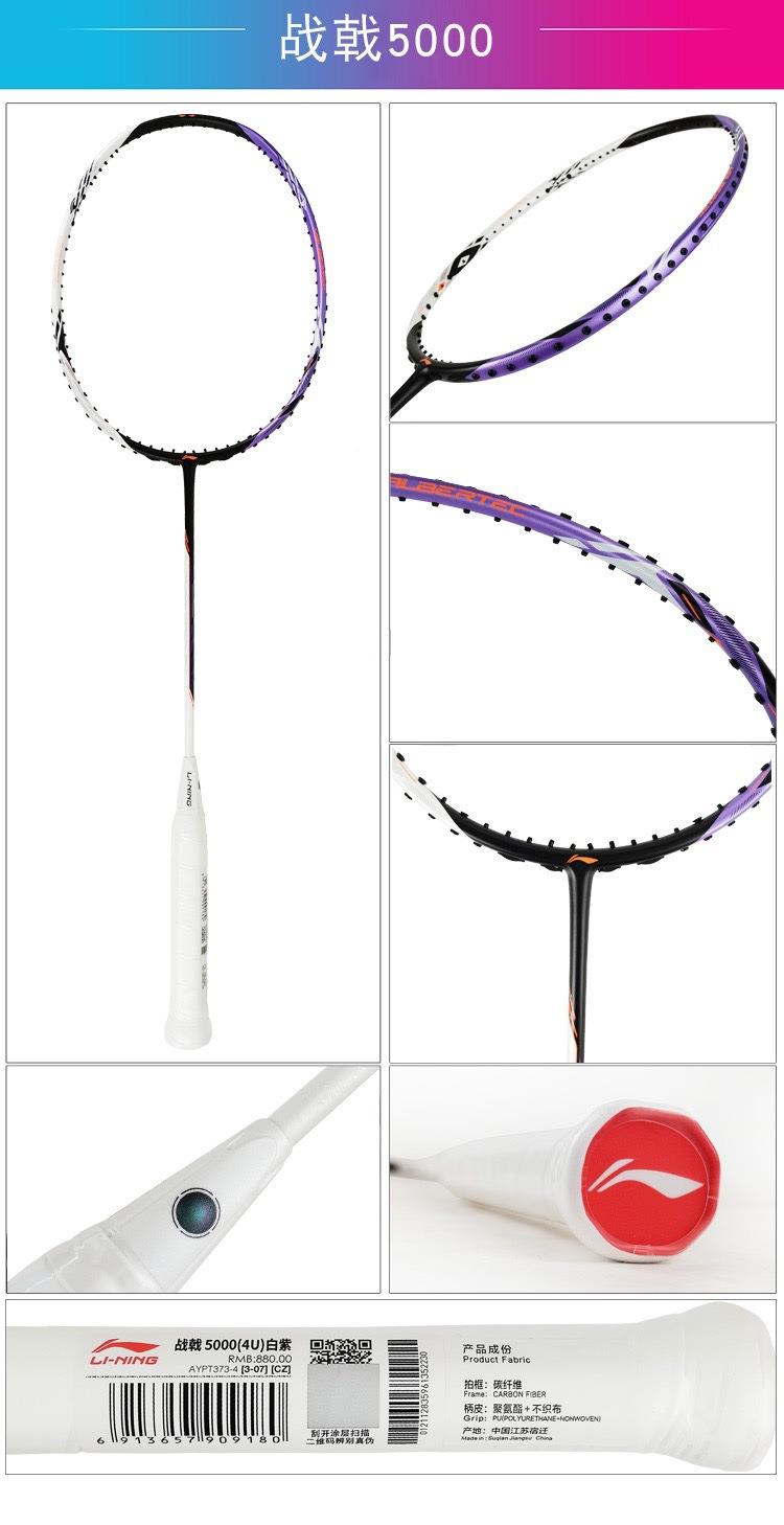 李宁Lining战戟5000平衡攻守兼备控制型羽毛球拍珍珠白锆石紫