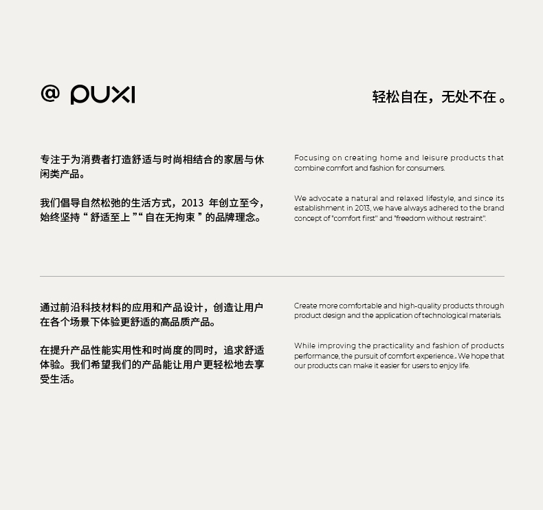 - 浙江朴西集团成立于2013年,是一家集研发设计生产销售服务为一体的复合型集团。朴西多年来坚持自主延发设计,并不断融合科技创新,致力于让更多人穿上舒适拖鞋,享受家庭幸福感。