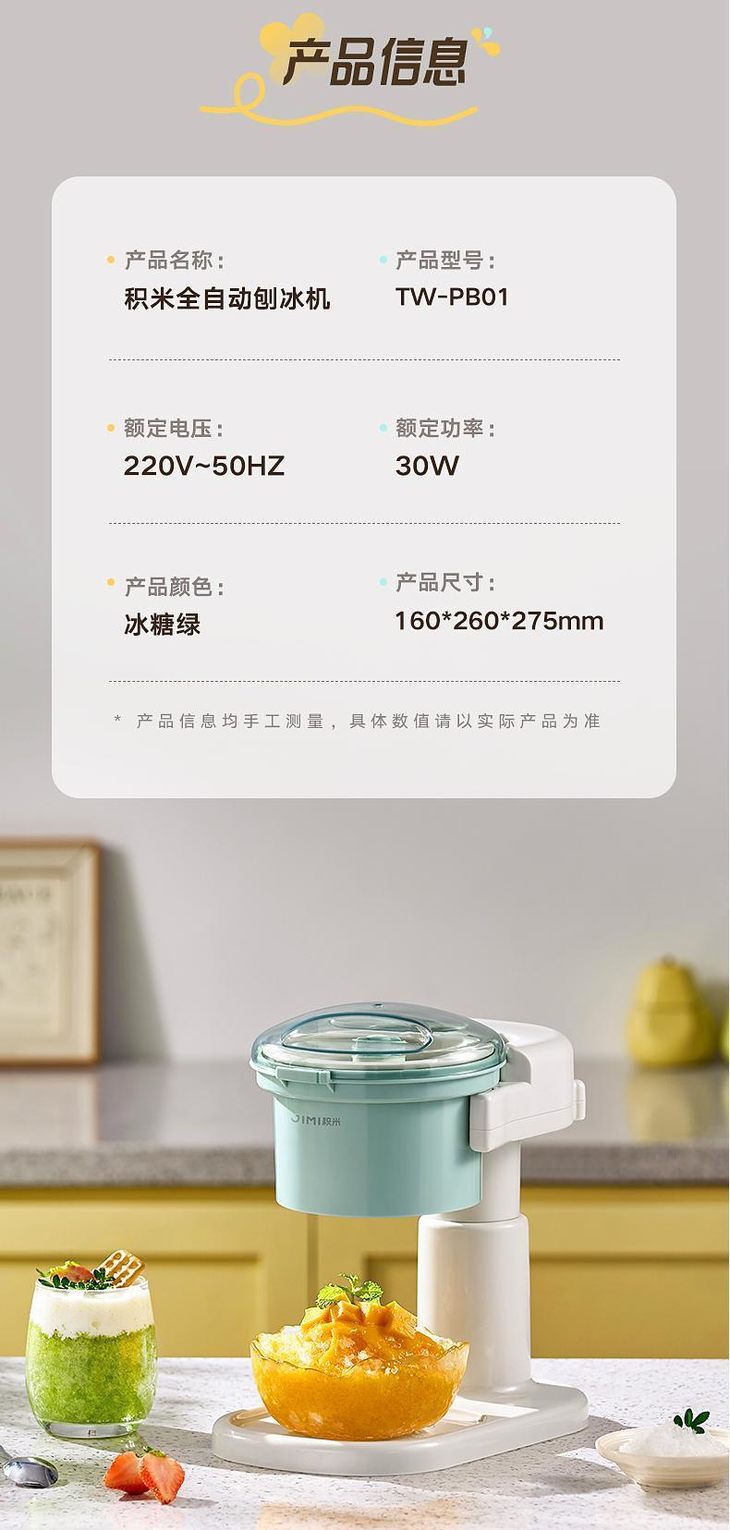 ● 积米家用全自动刨冰机电动碎冰机(售后条款):