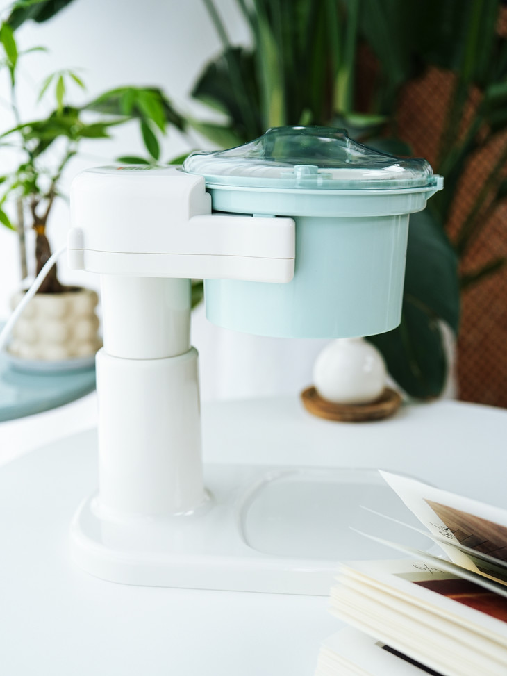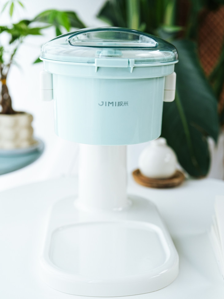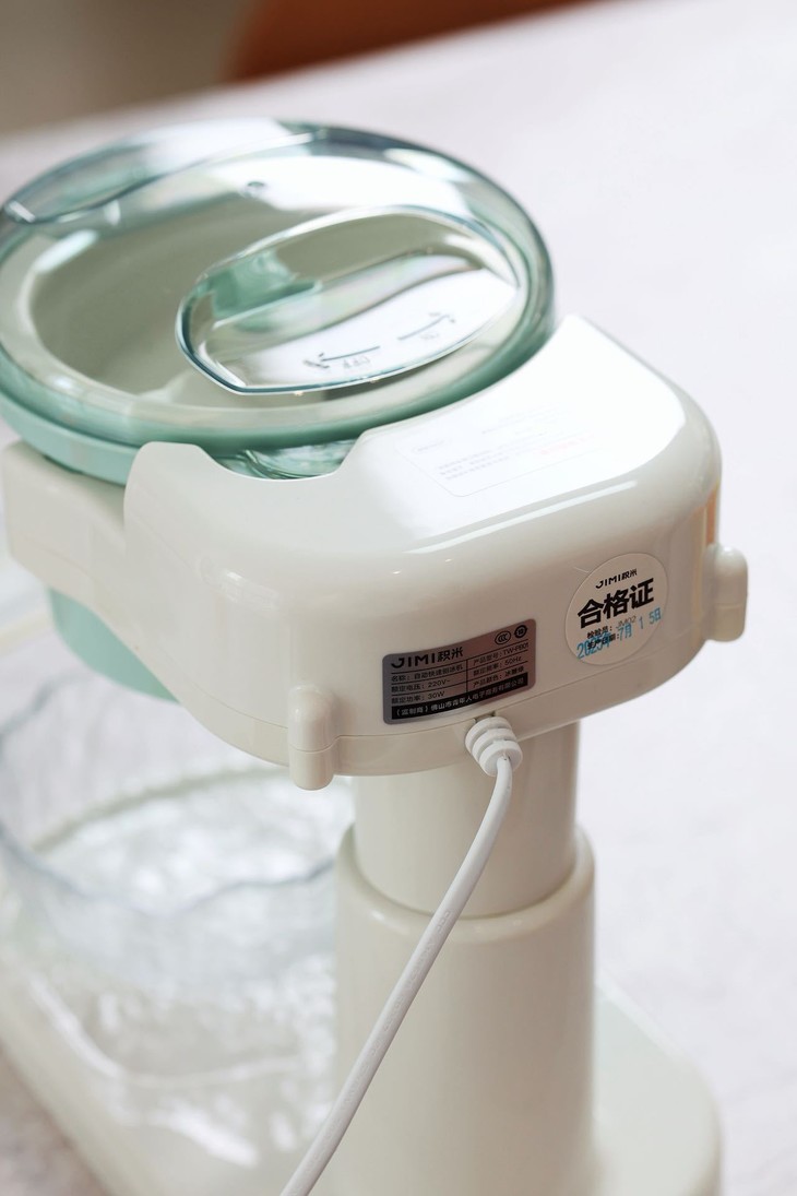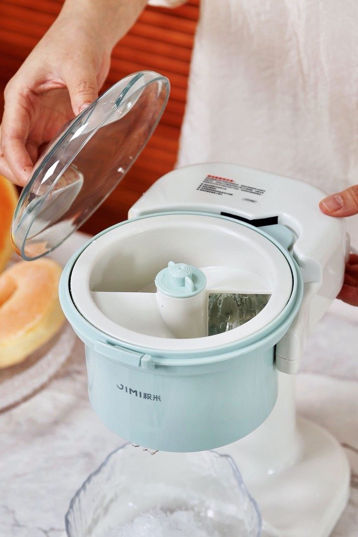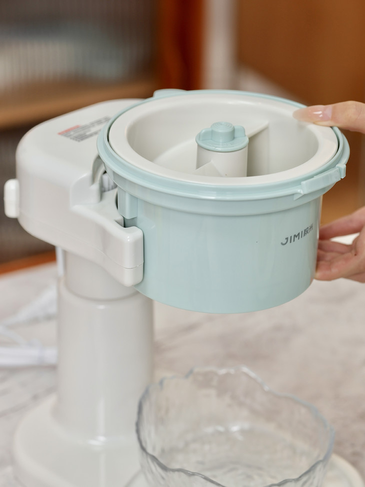 积米这款刨冰机开机是无按键启动,需要在面盖旋钮卡好即可自动工作 ,在碎冰工作期间声音较大属于正常现象,主要与电机齿轮与刀片转速切割冰块所产生的,同时我们使用时建议: