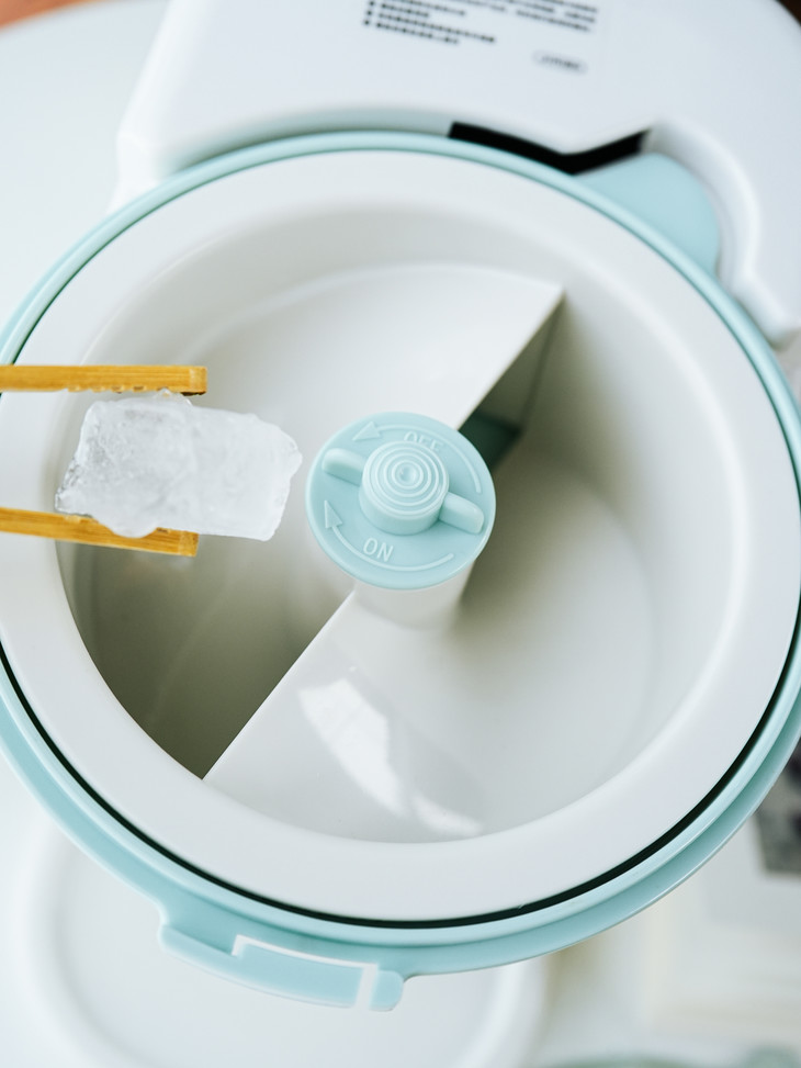 ①、将冰块稍软化或切小块