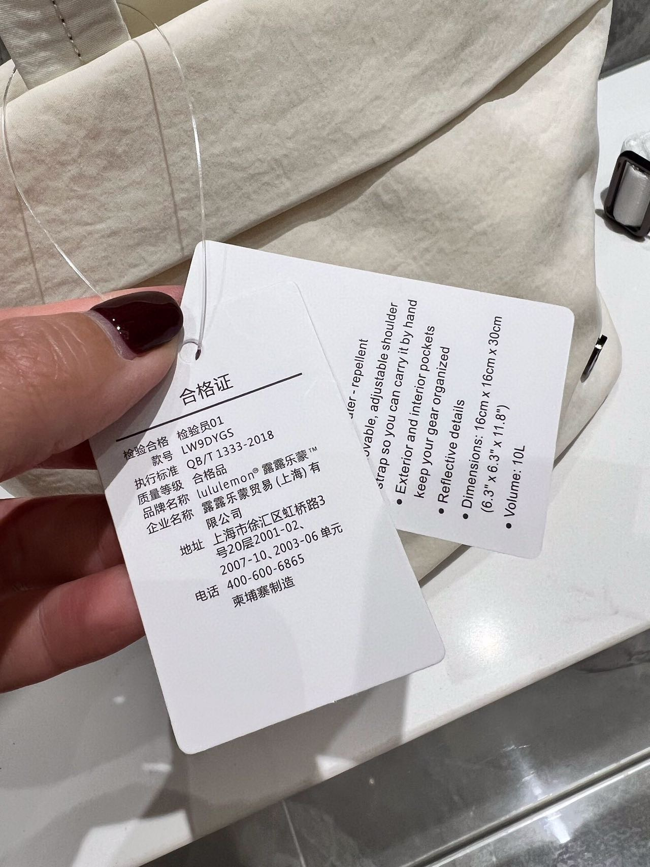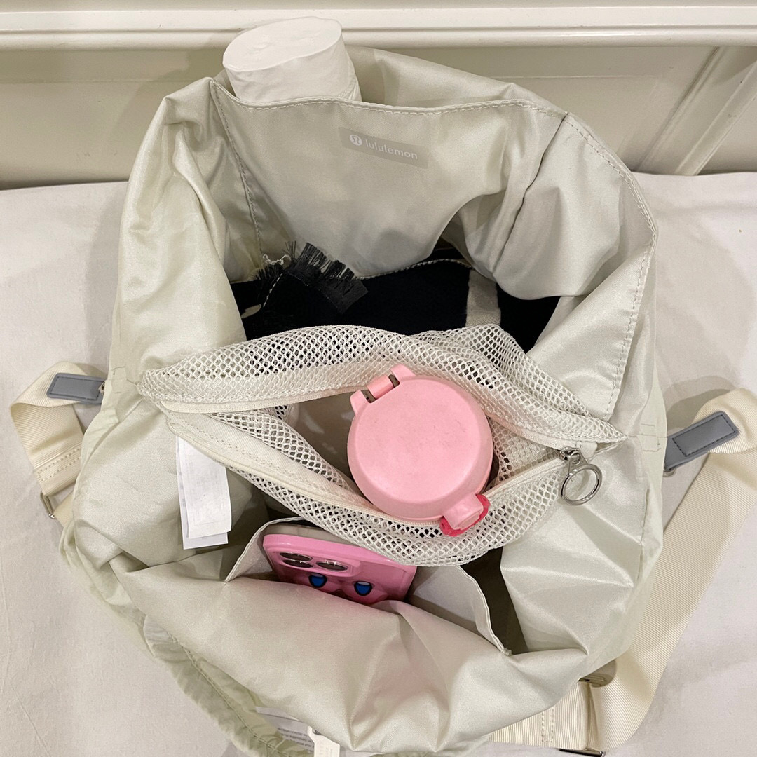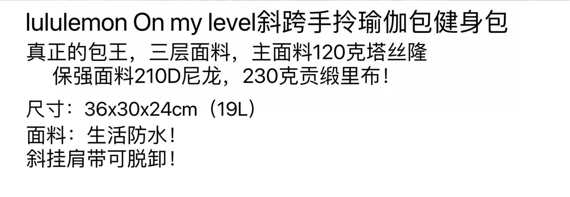lulu这款5升挎包超级适合夏天,包自重轻如鸿毛真的一点不夸张,包包虽然是5升标注。