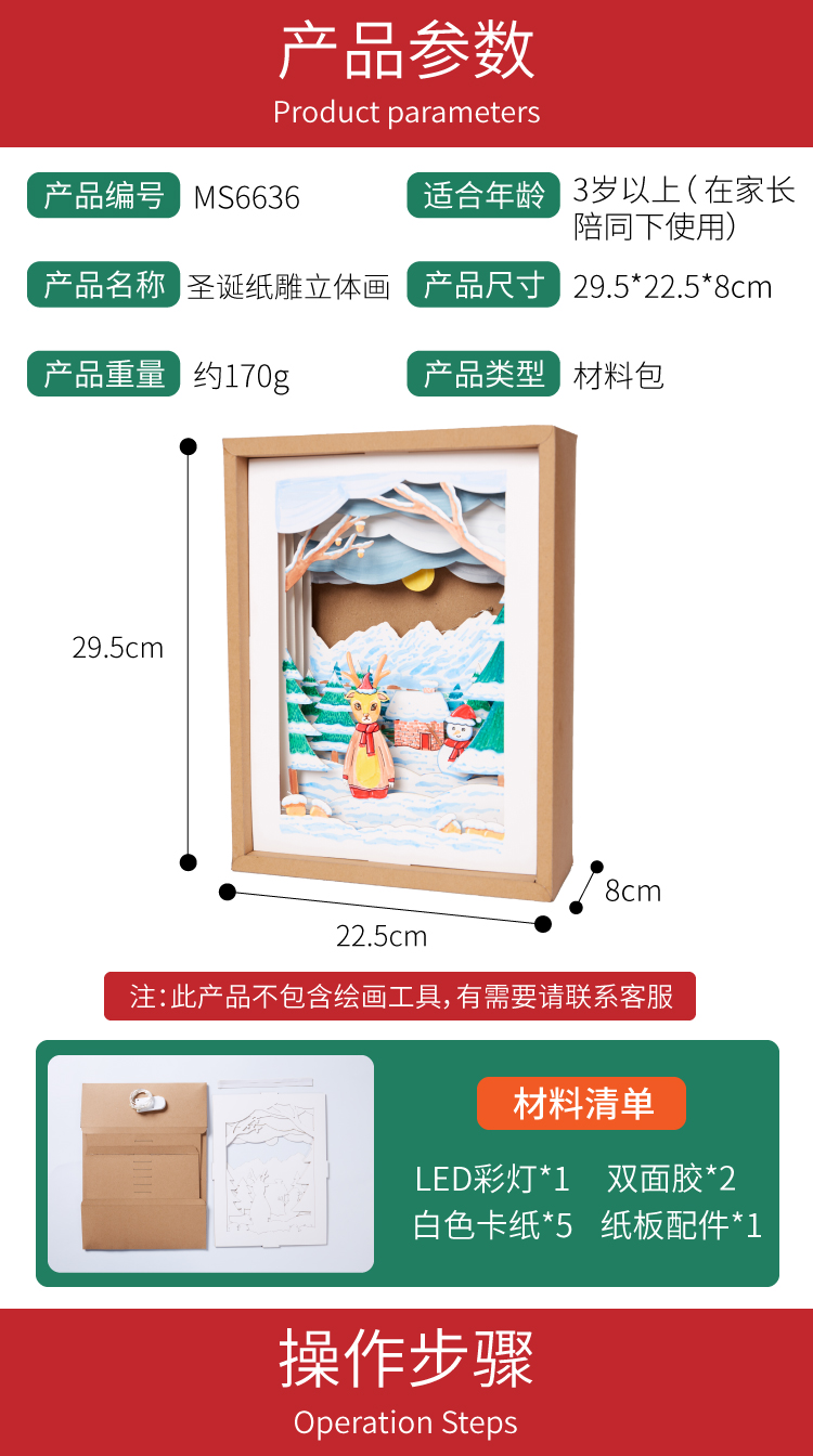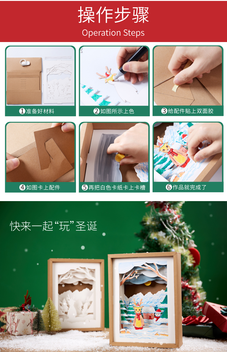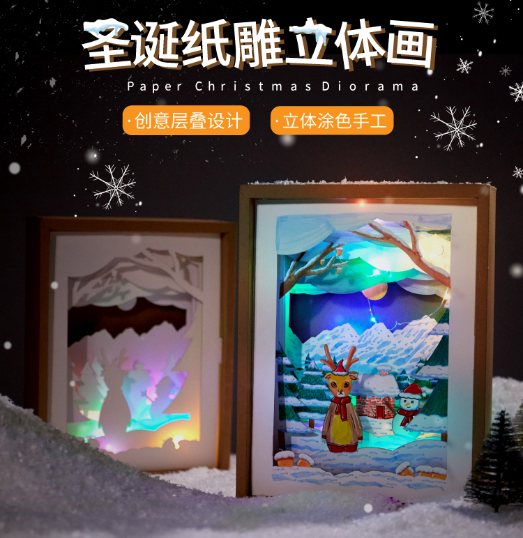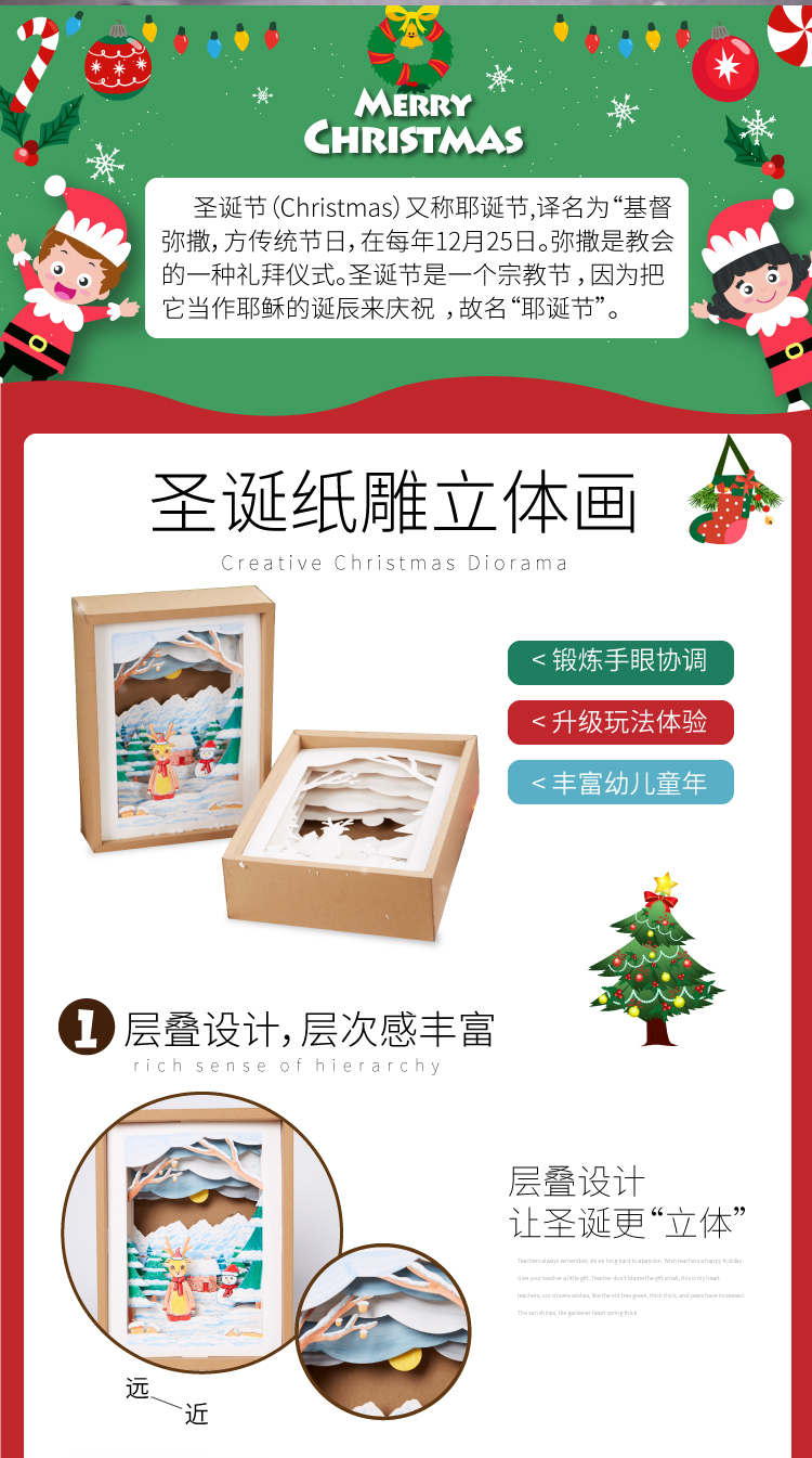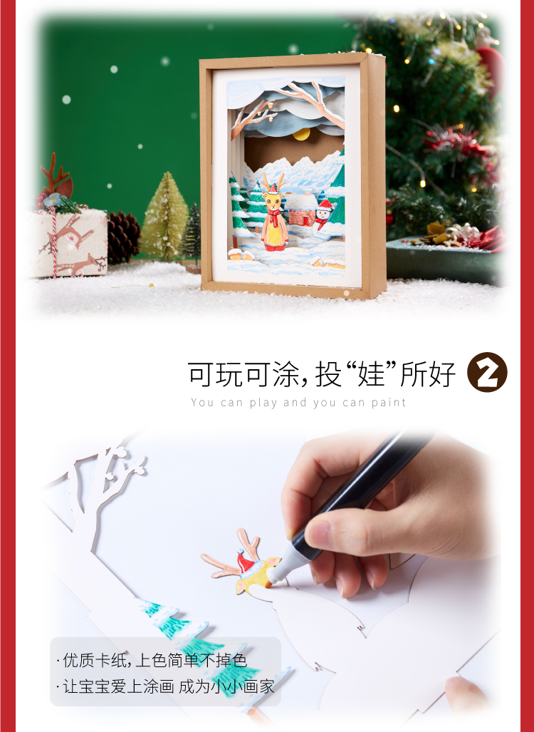 2022圣诞节手工diy纸雕立体画儿童创意美术礼物装饰品幼儿园圣诞树