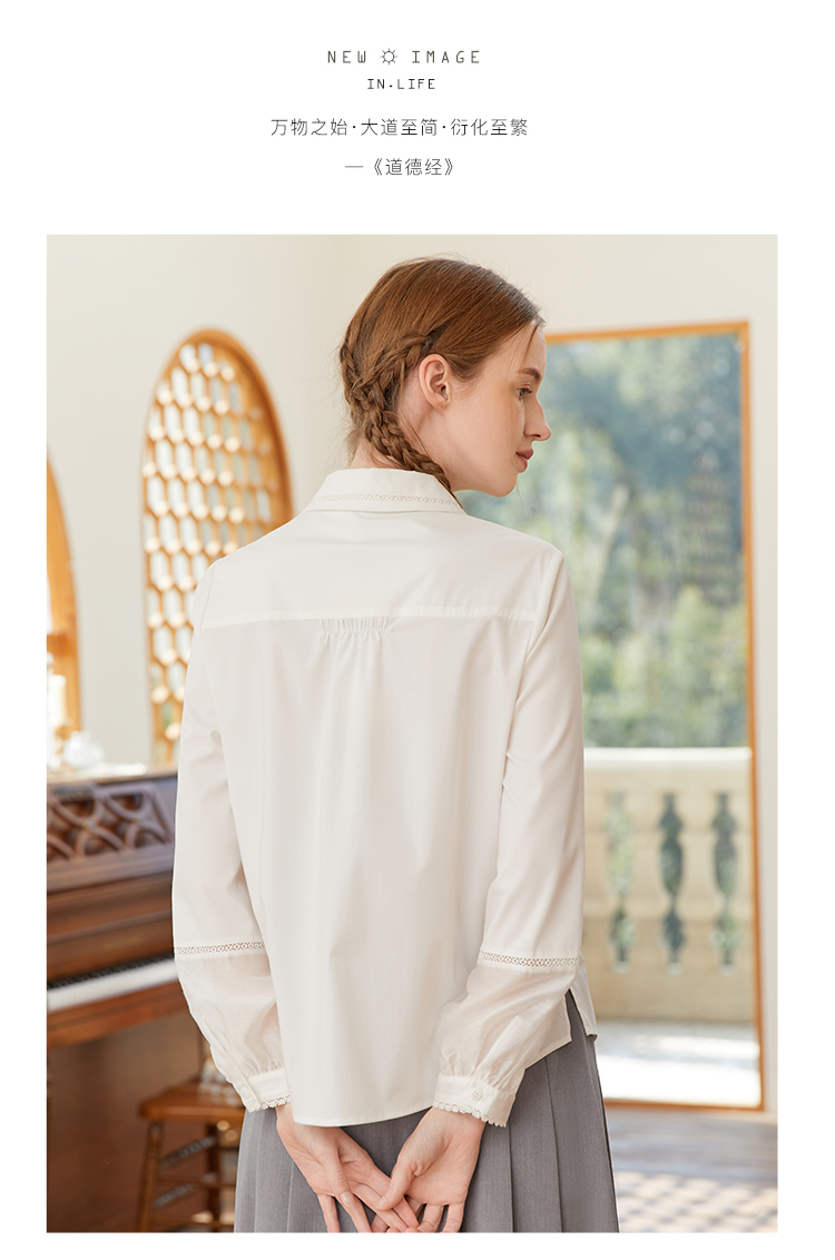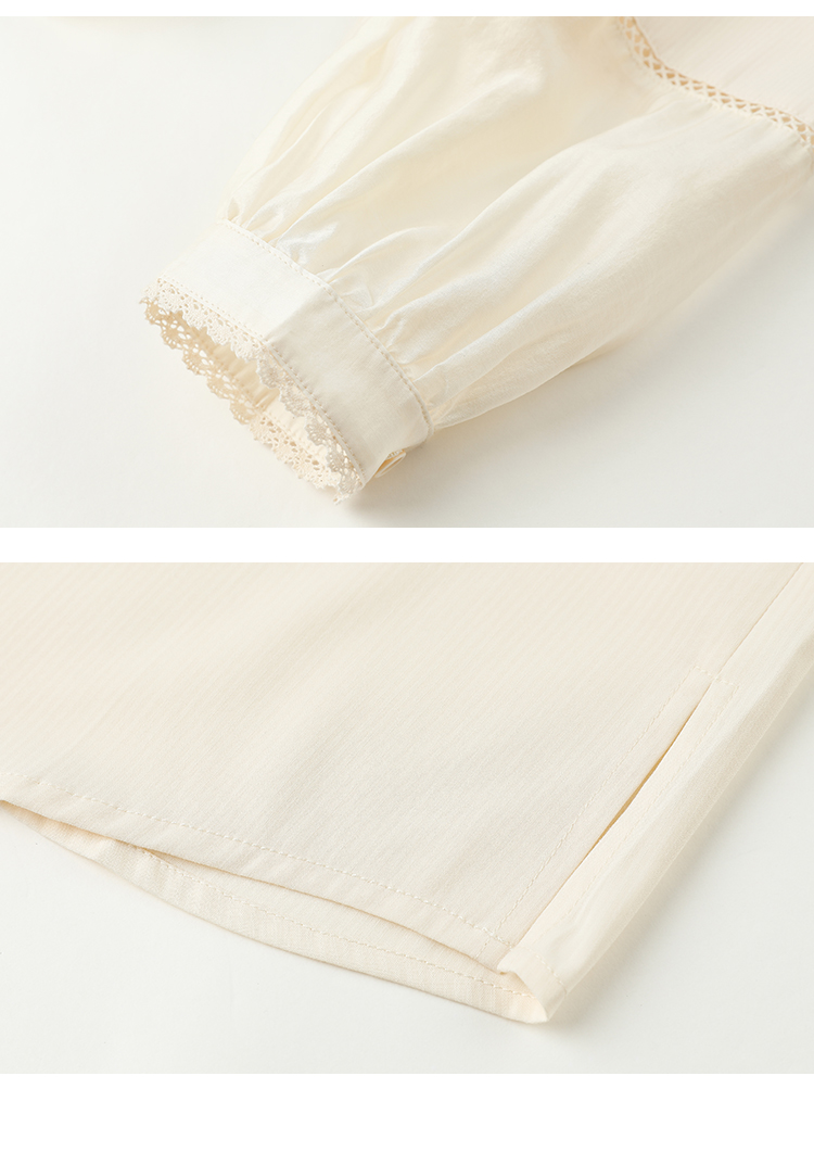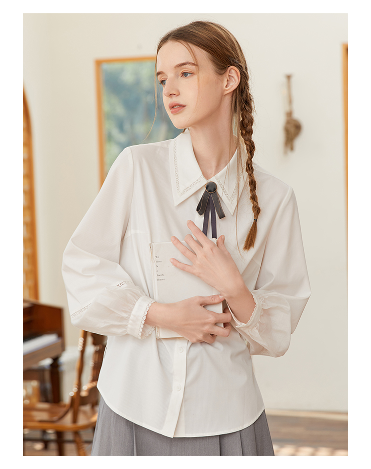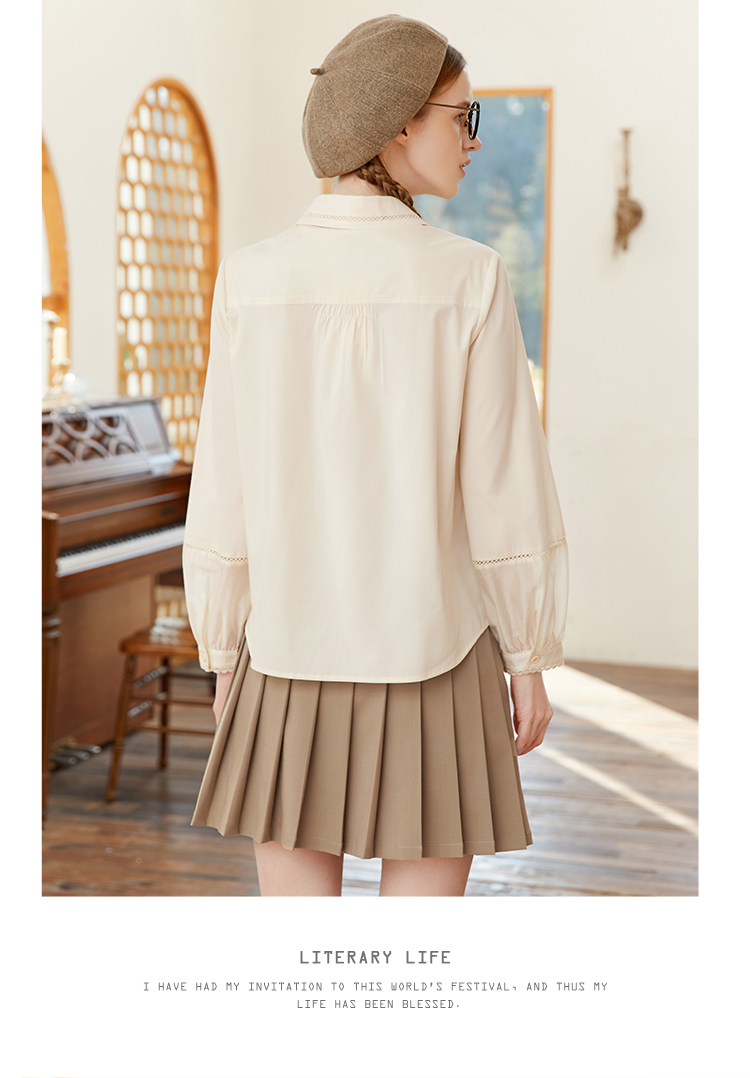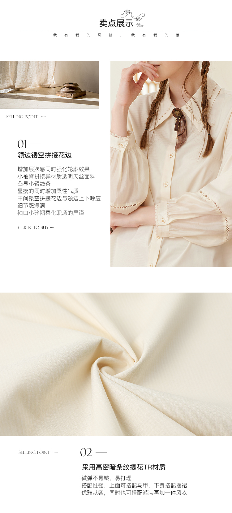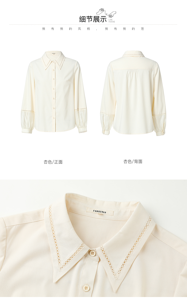 Famecoco范可儿天丝拼接衬衫春季法式泡泡袖仙气上衣女