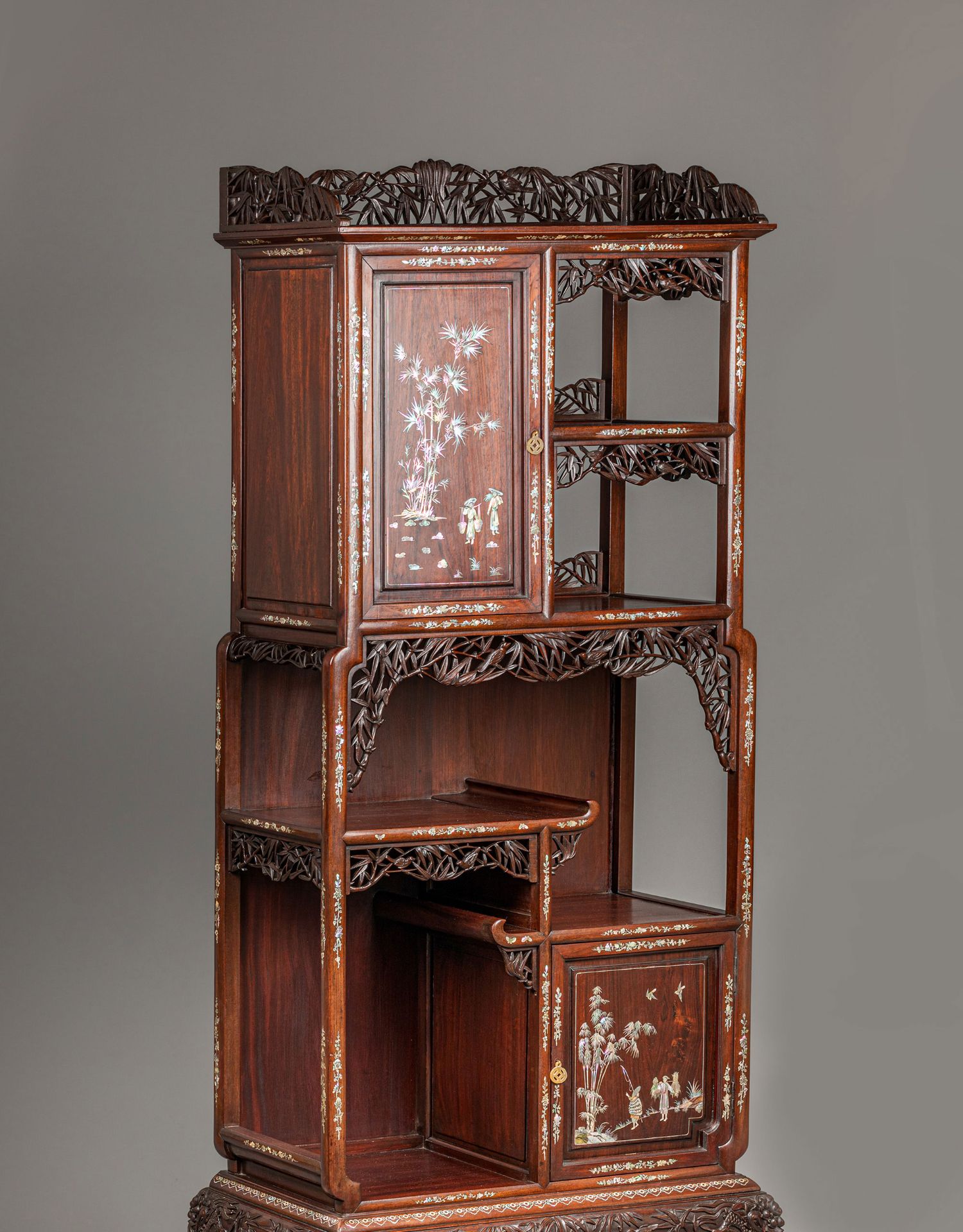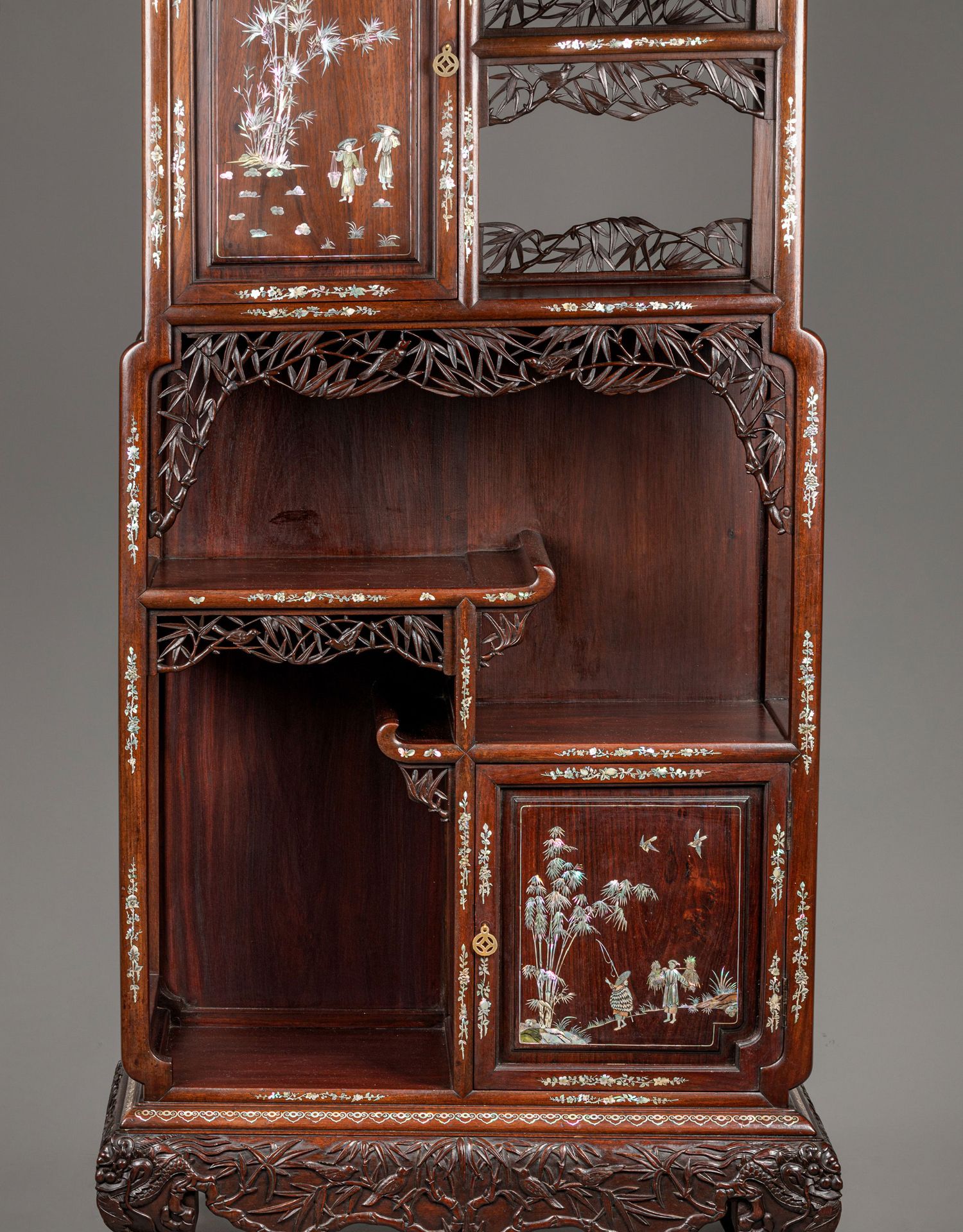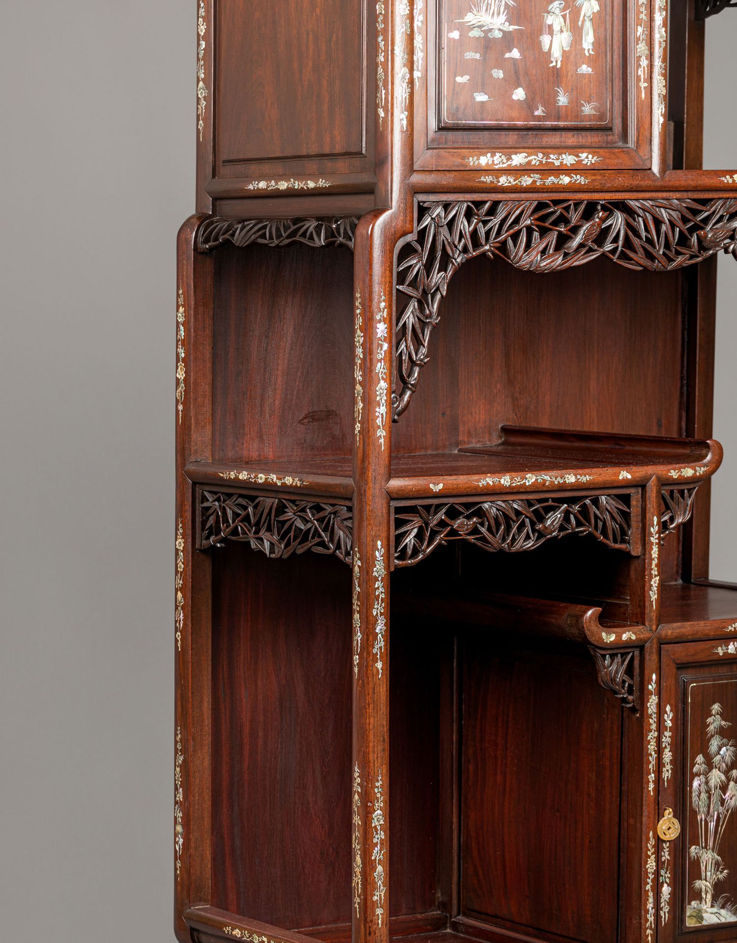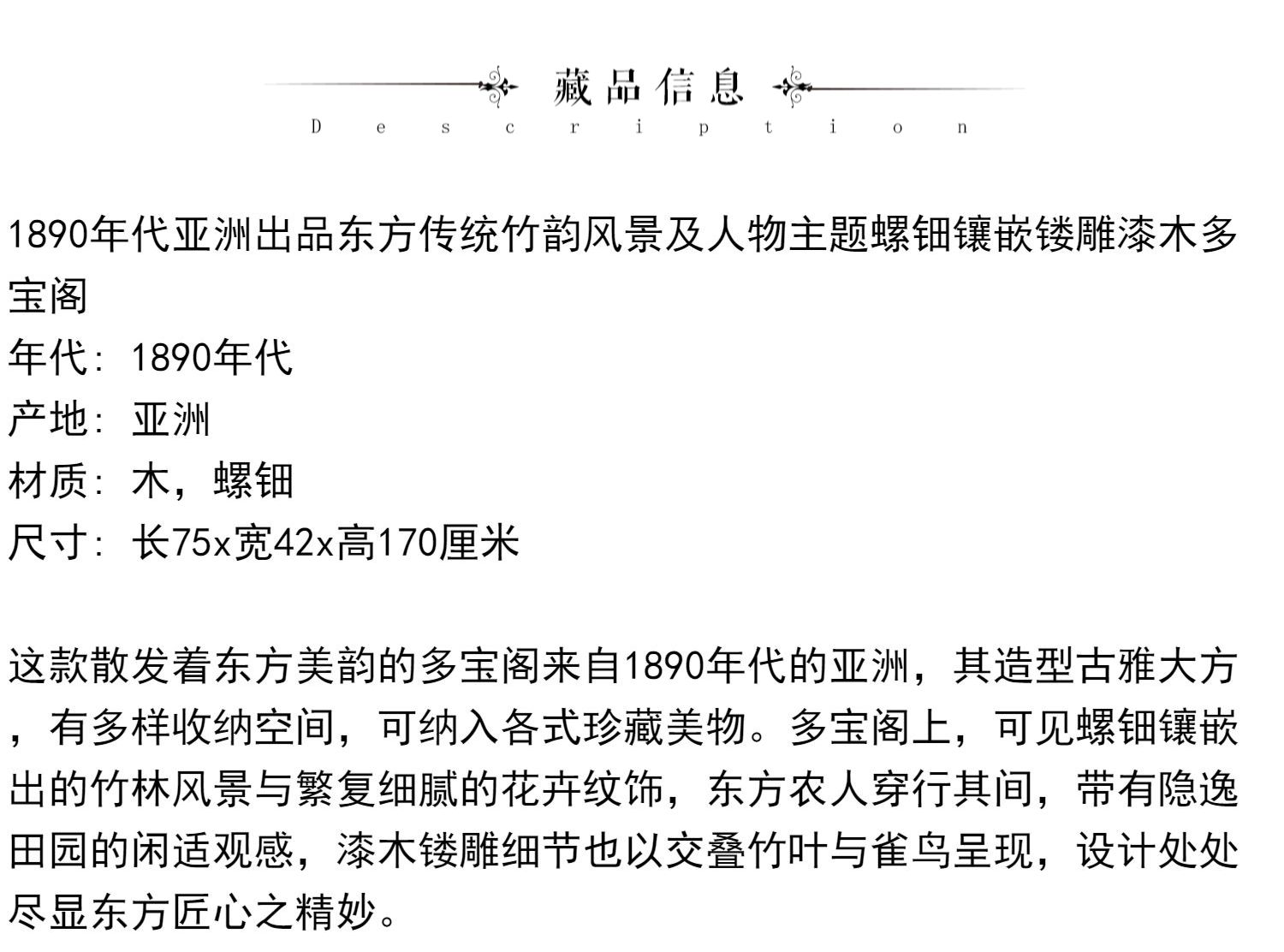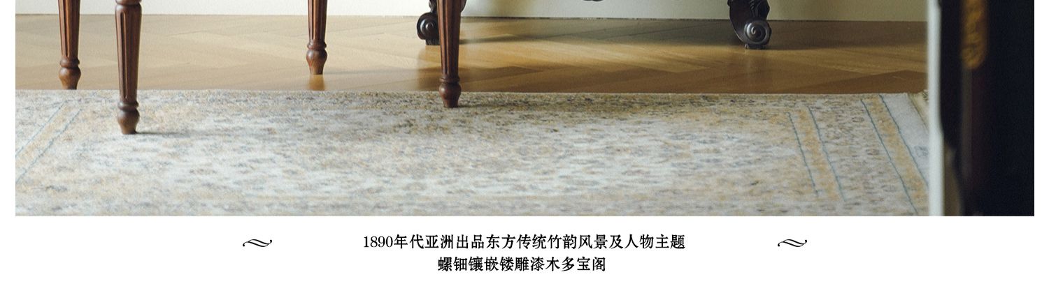 独角鹿西洋古董家具东方竹韵风景人物螺钿镶嵌镂雕漆木多宝阁