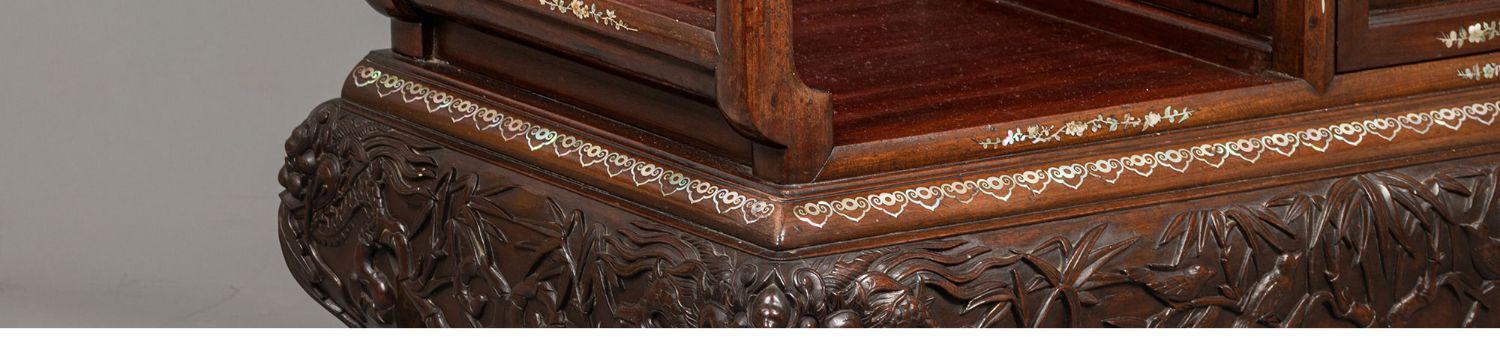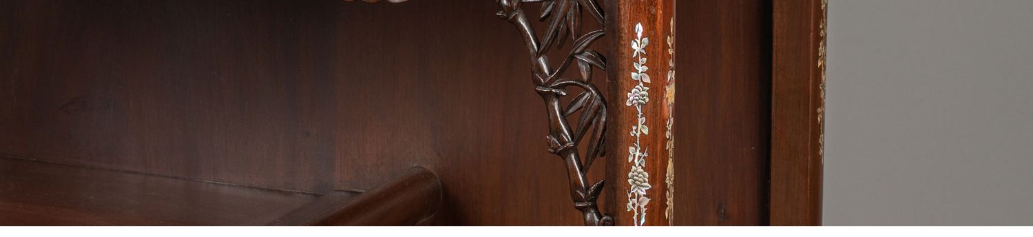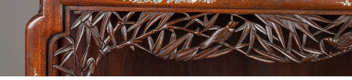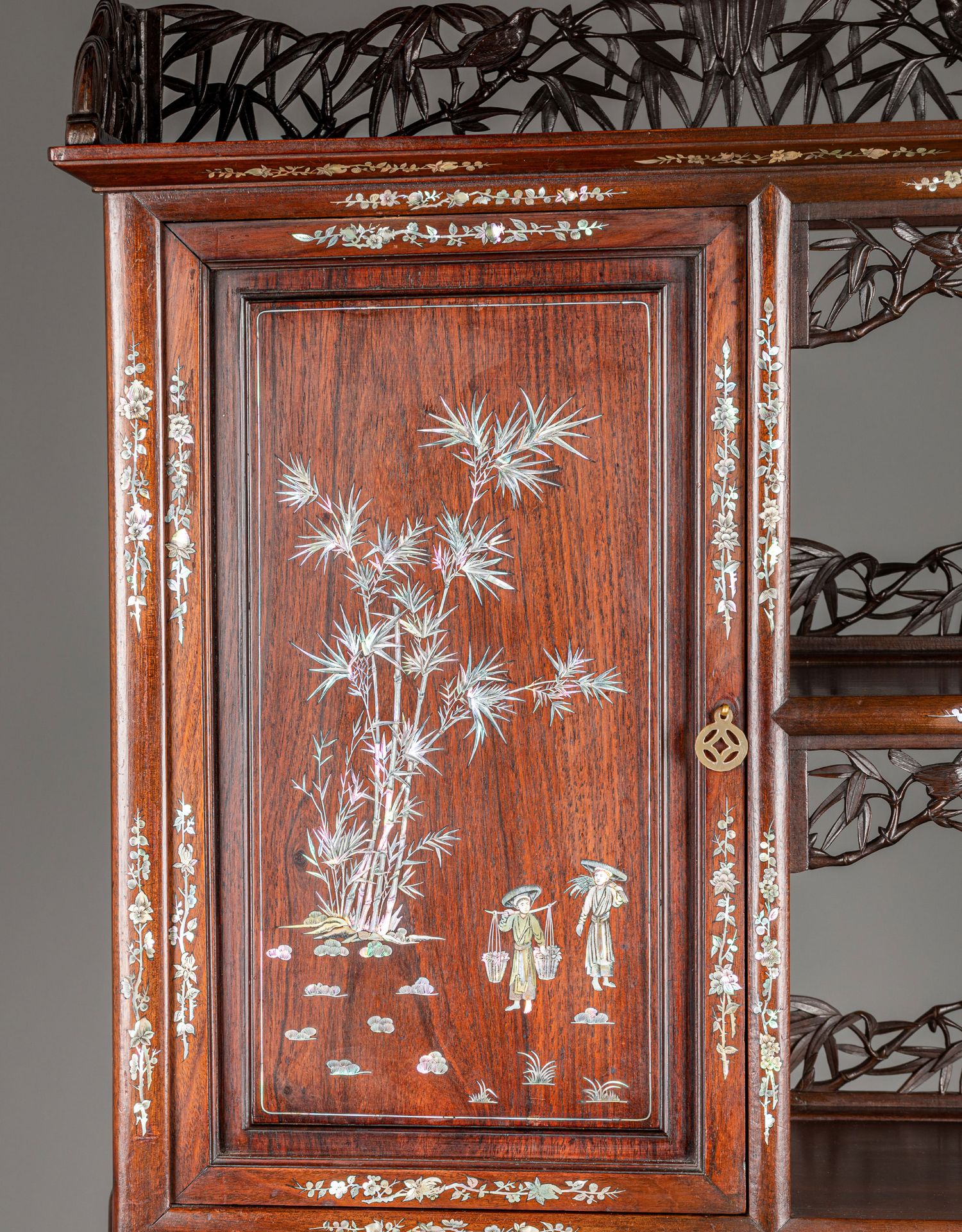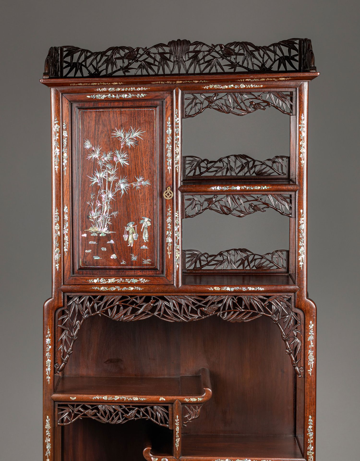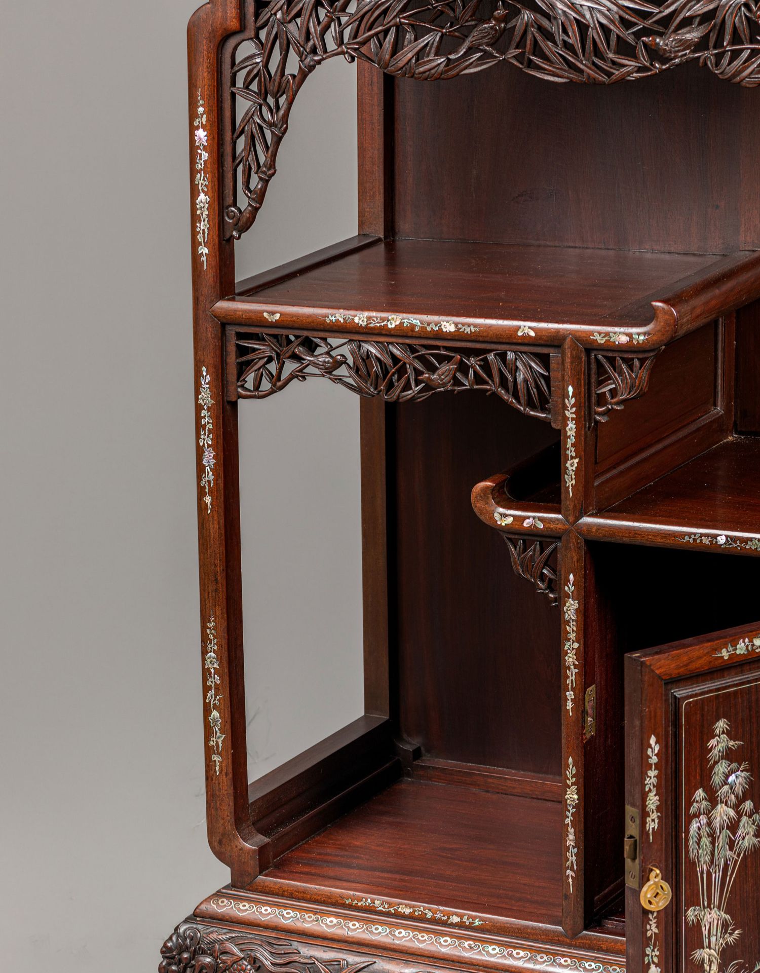 独角鹿西洋古董家具东方竹韵风景人物螺钿镶嵌镂雕漆木多宝阁