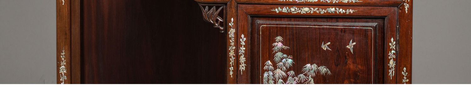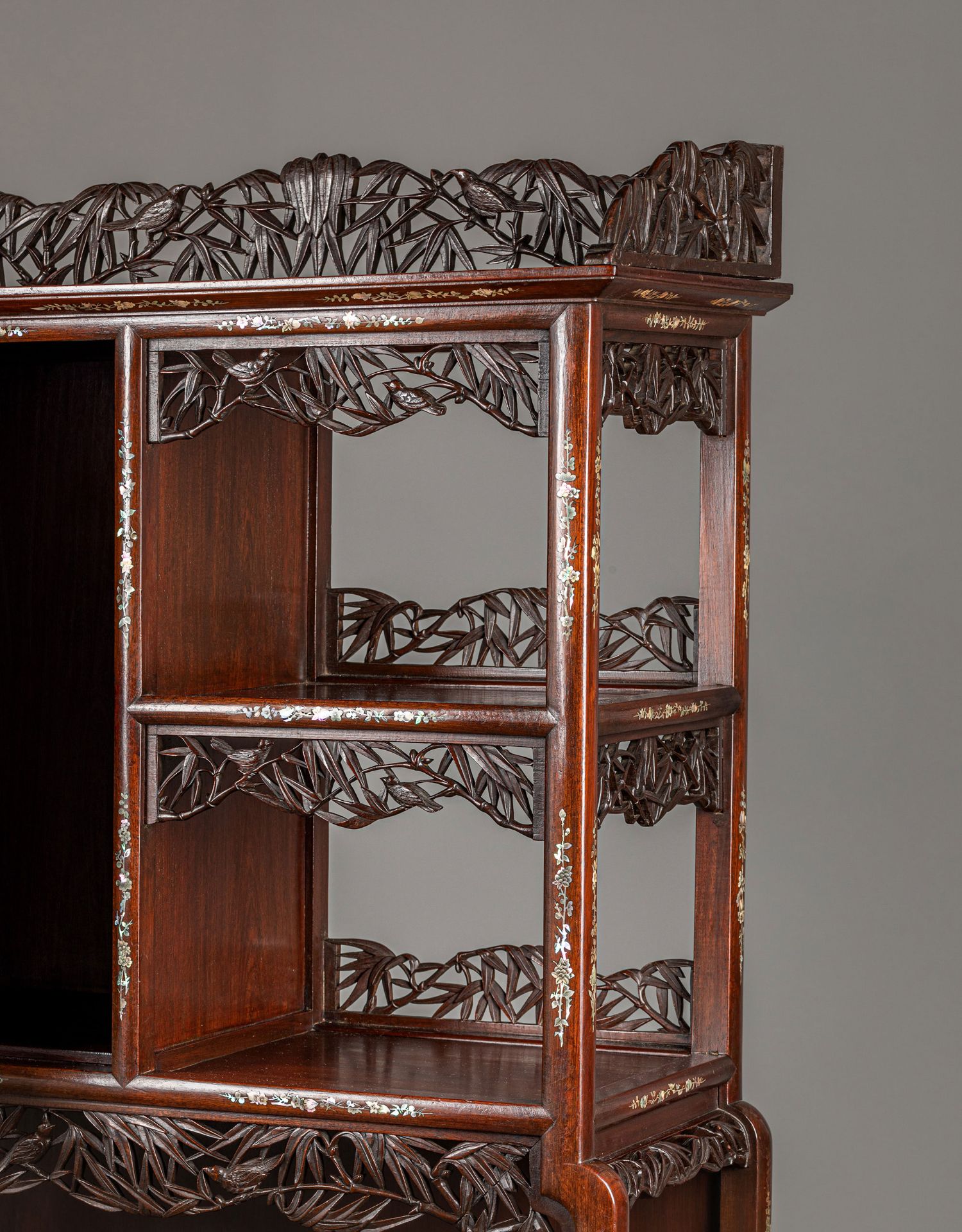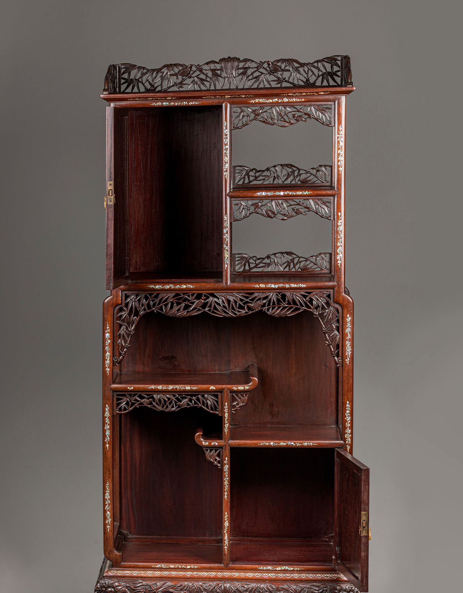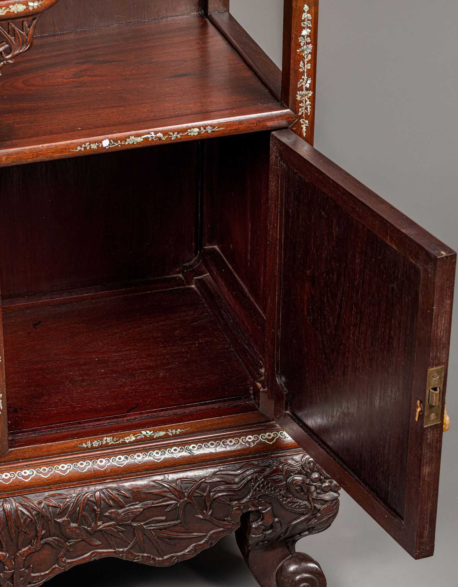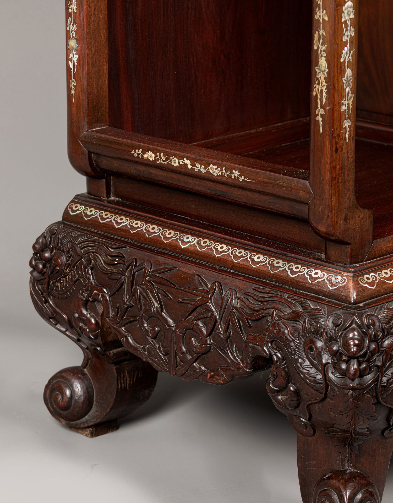 独角鹿西洋古董家具东方竹韵风景人物螺钿镶嵌镂雕漆木多宝阁