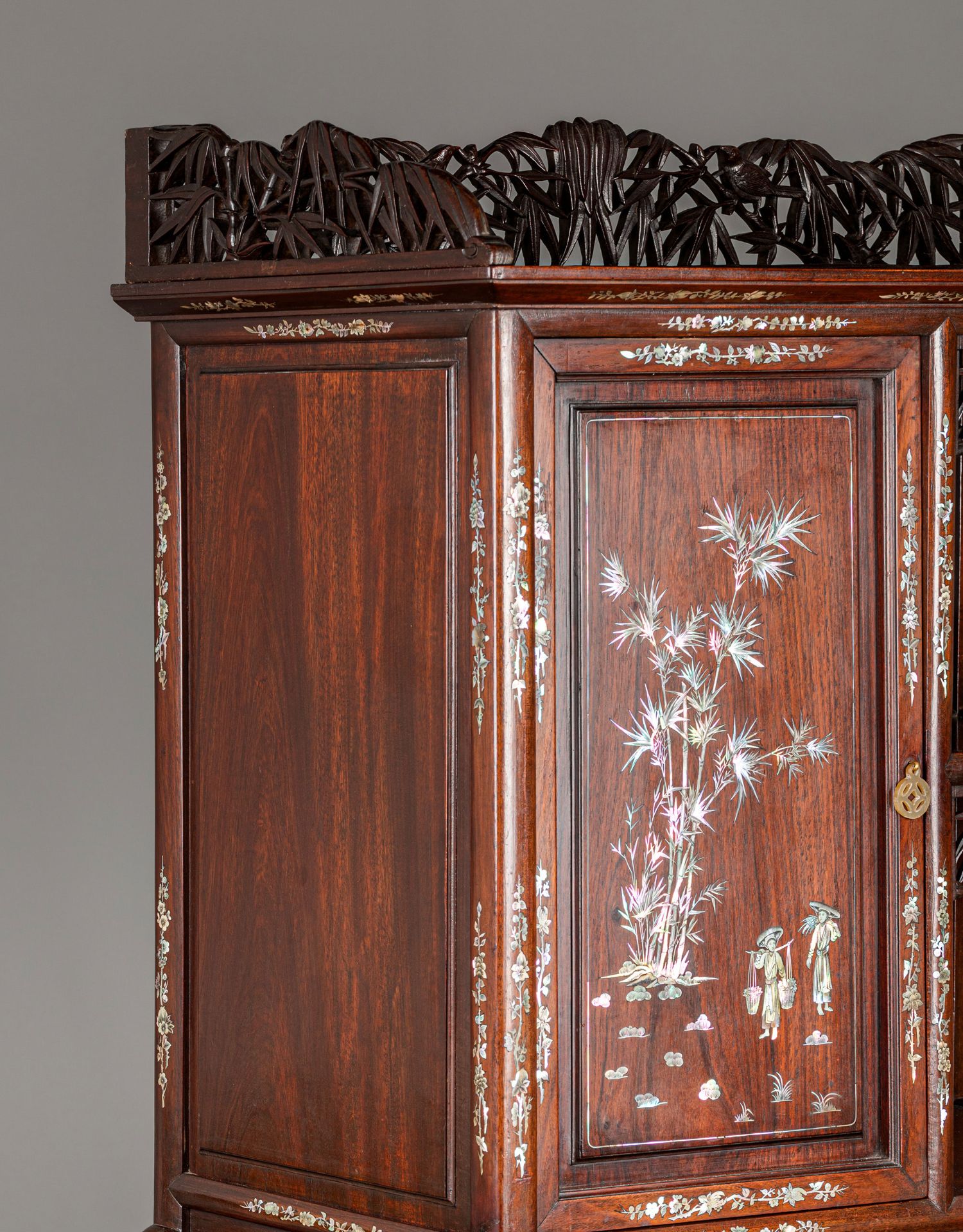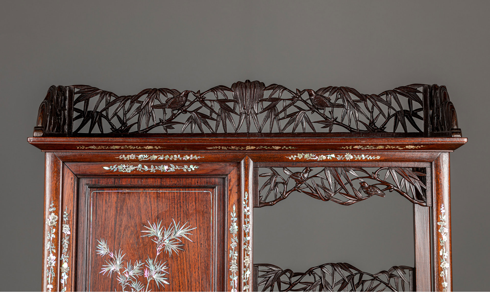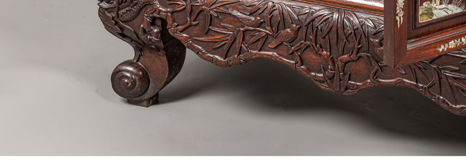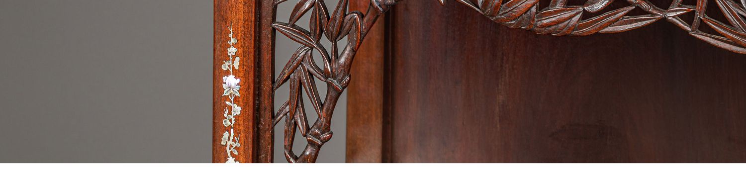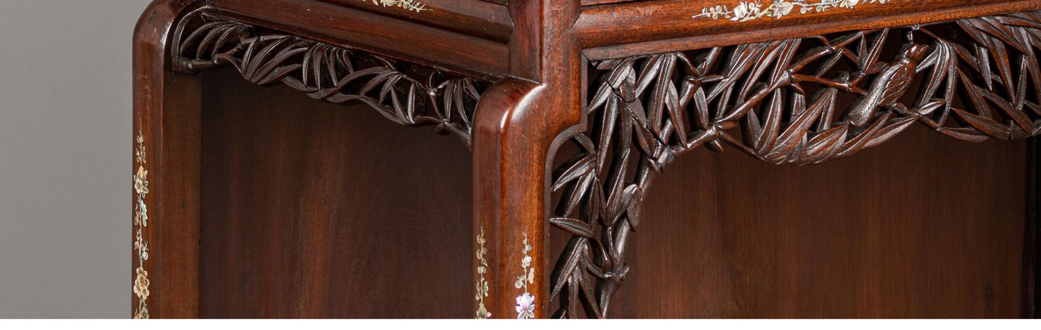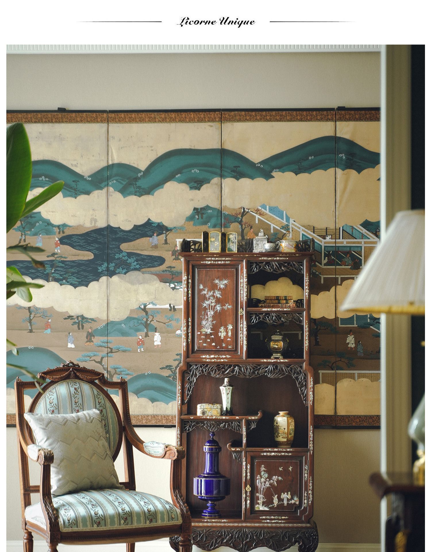 独角鹿西洋古董家具东方竹韵风景人物螺钿镶嵌镂雕漆木多宝阁