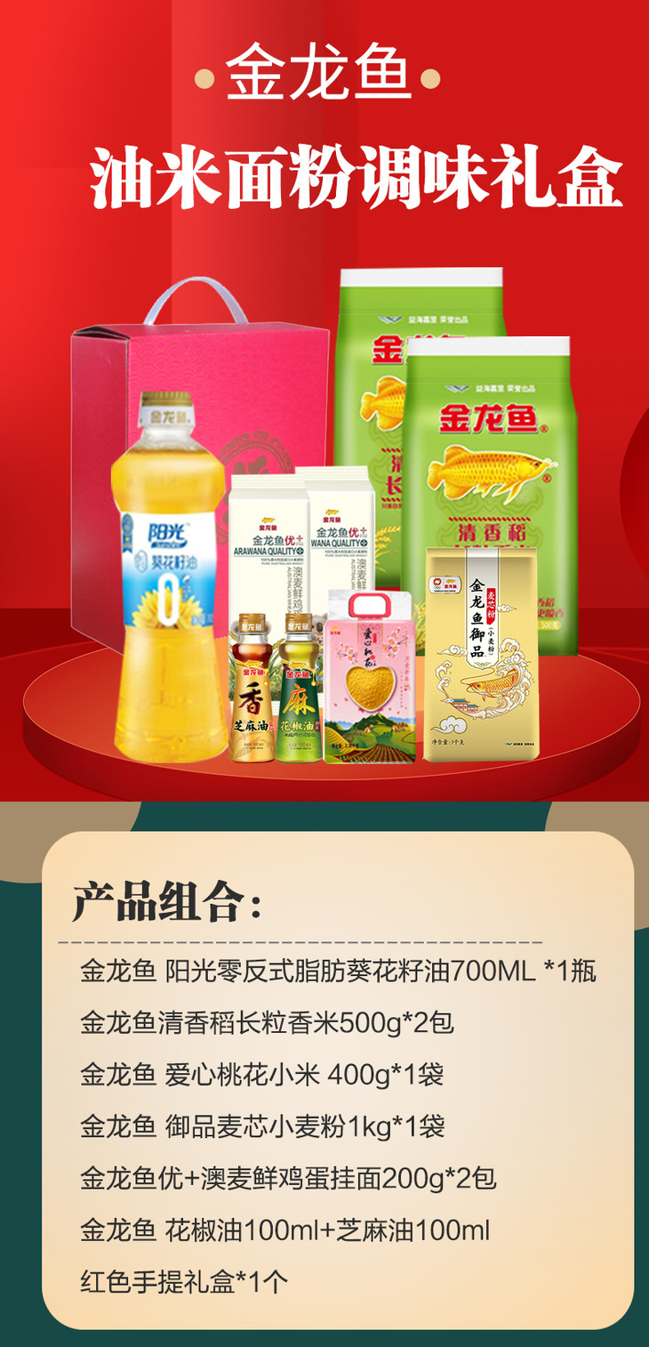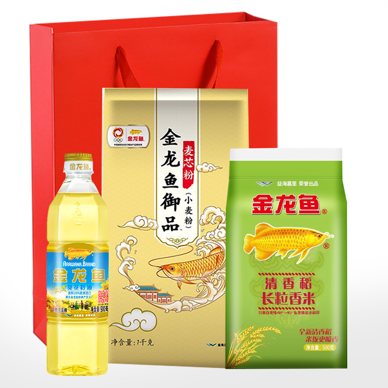 金龙鱼 粮油面礼包 礼品福利 金龙鱼米油面粉3件套礼袋2400g 金龙鱼米面粮油调味礼盒3700g