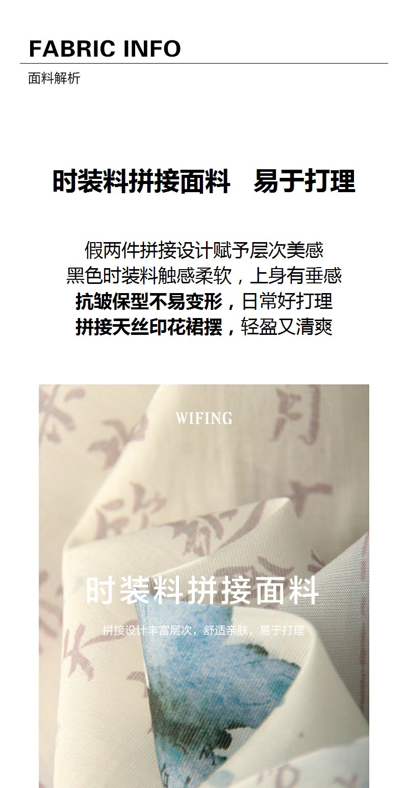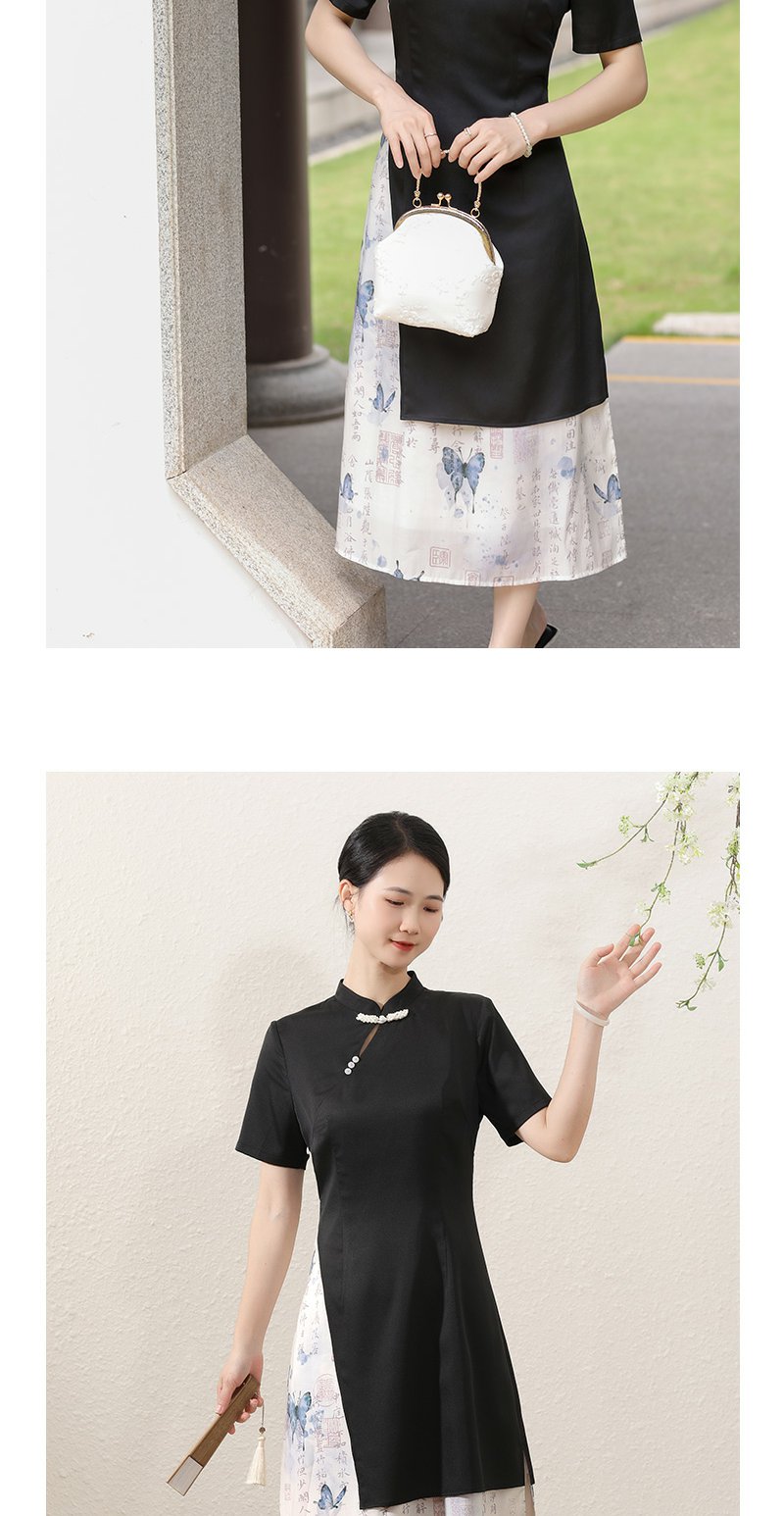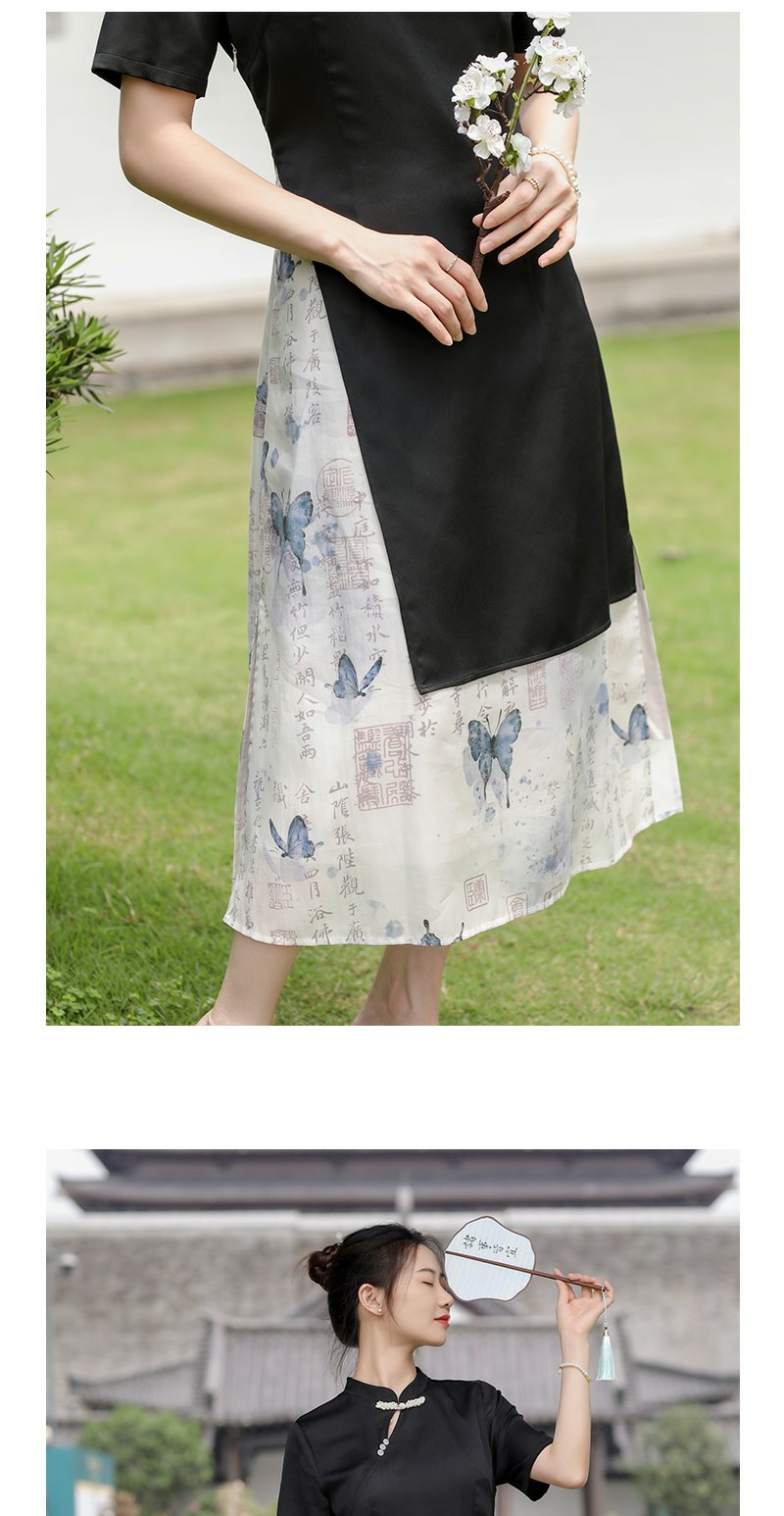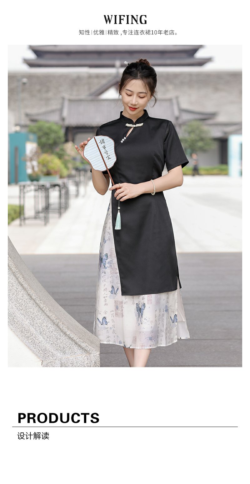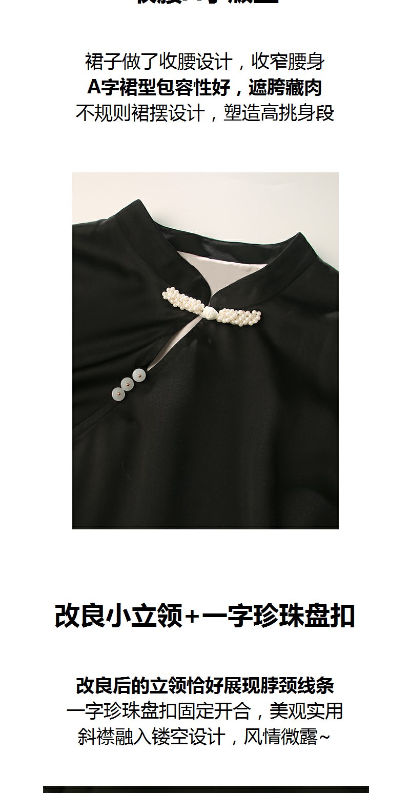 未风黑色改良旗袍连衣裙女2025新款夏季新中式假两件国风显瘦裙子