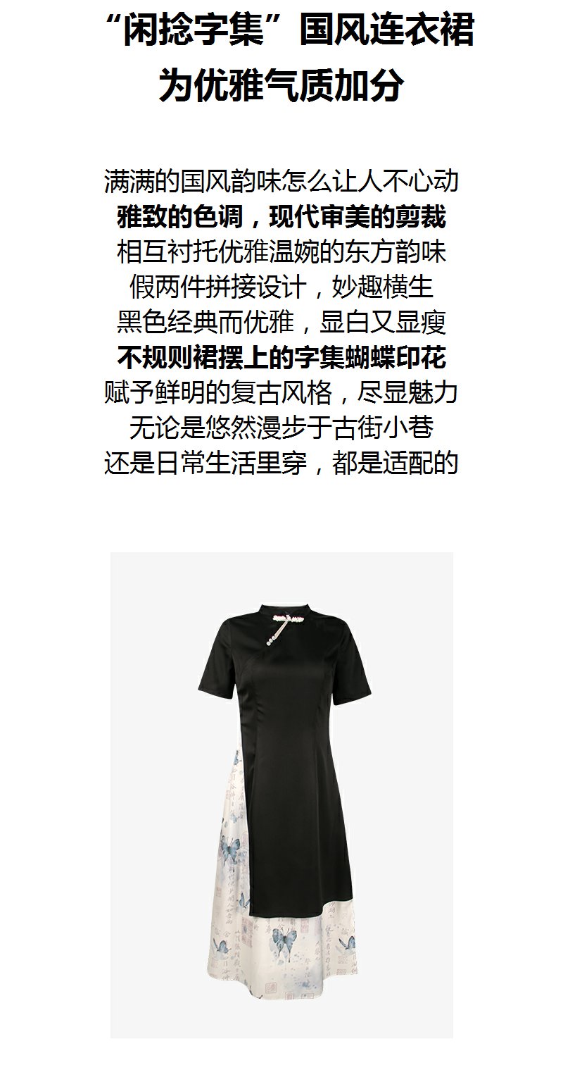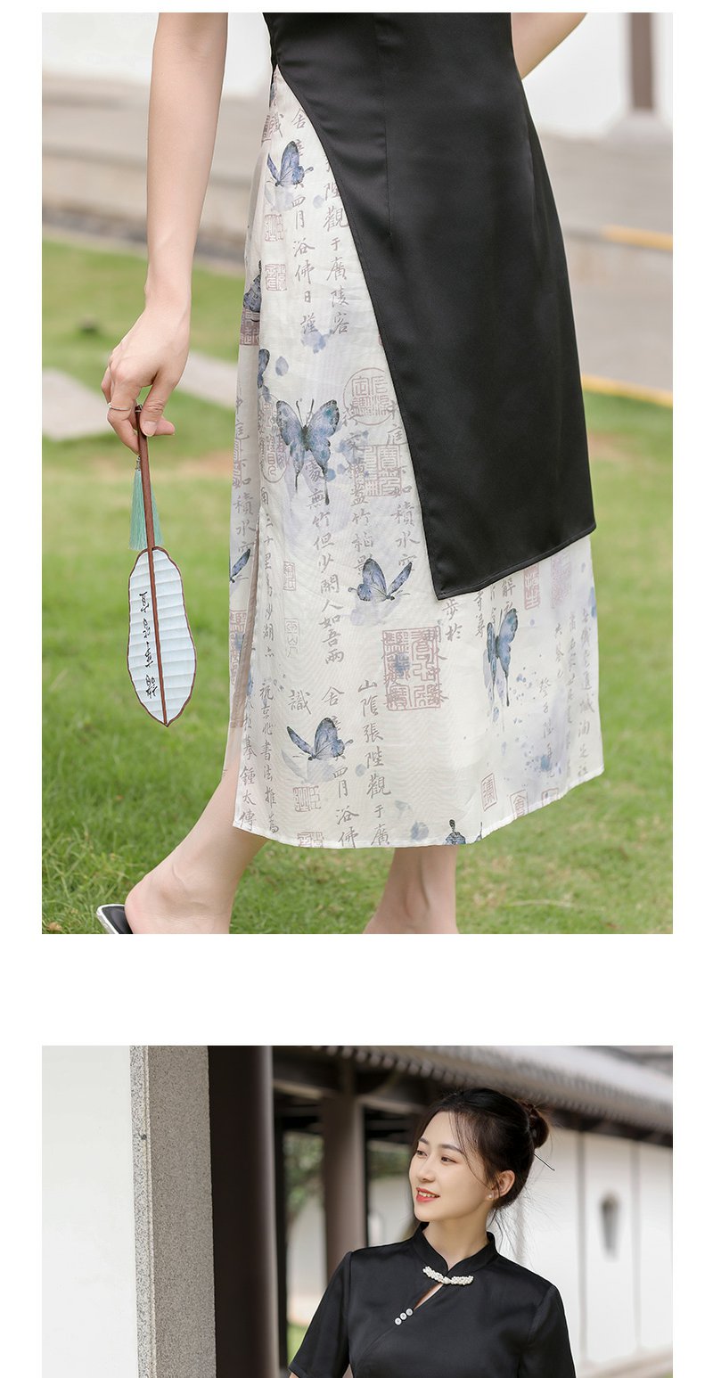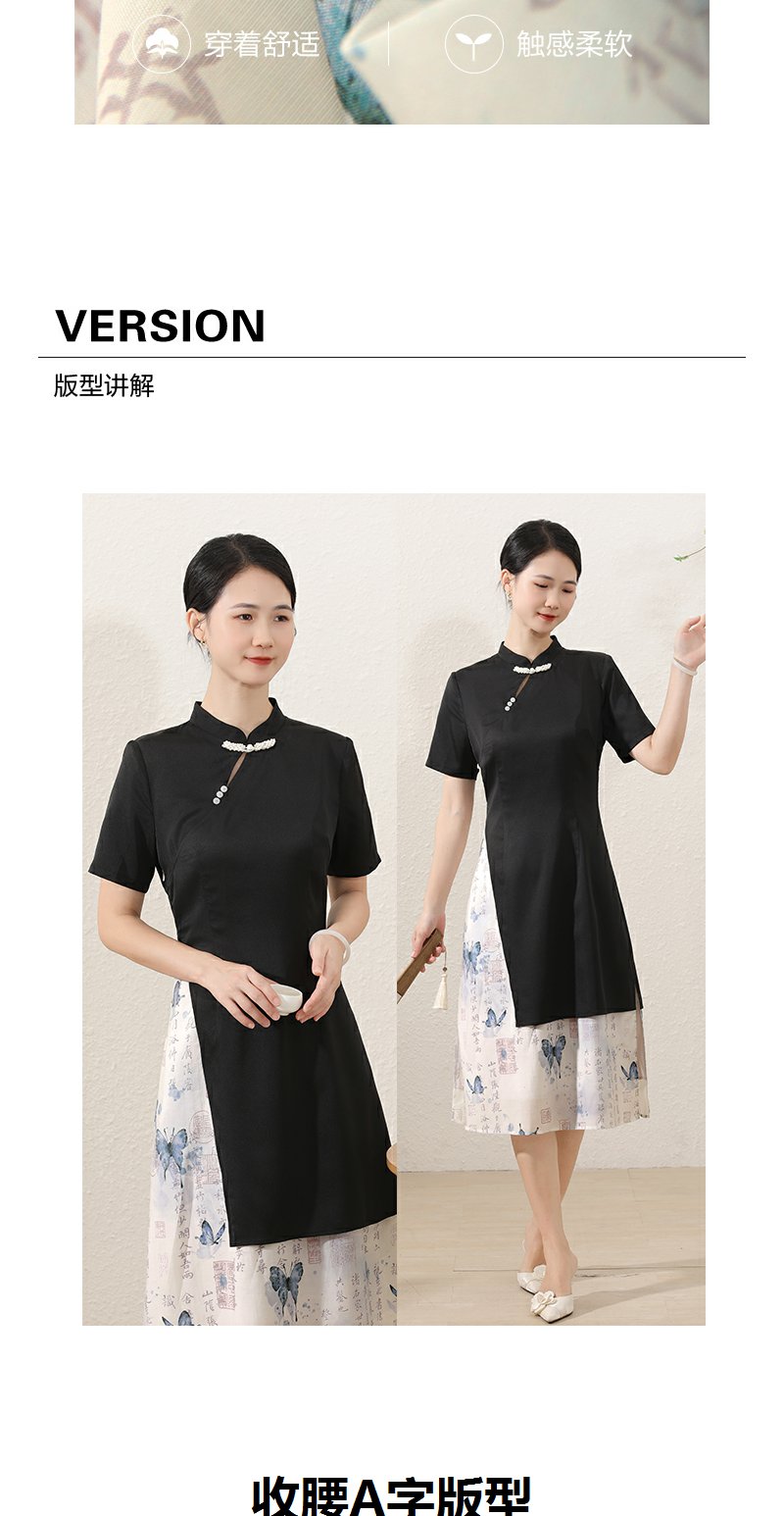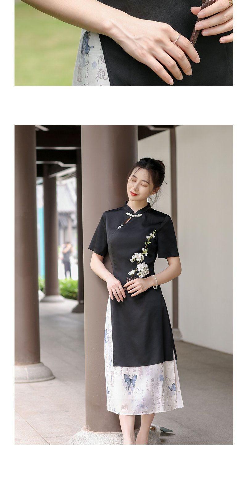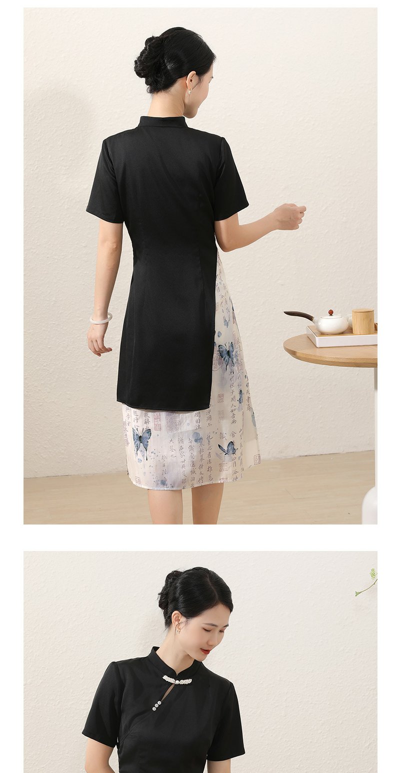 未风黑色改良旗袍连衣裙女2025新款夏季新中式假两件国风显瘦裙子