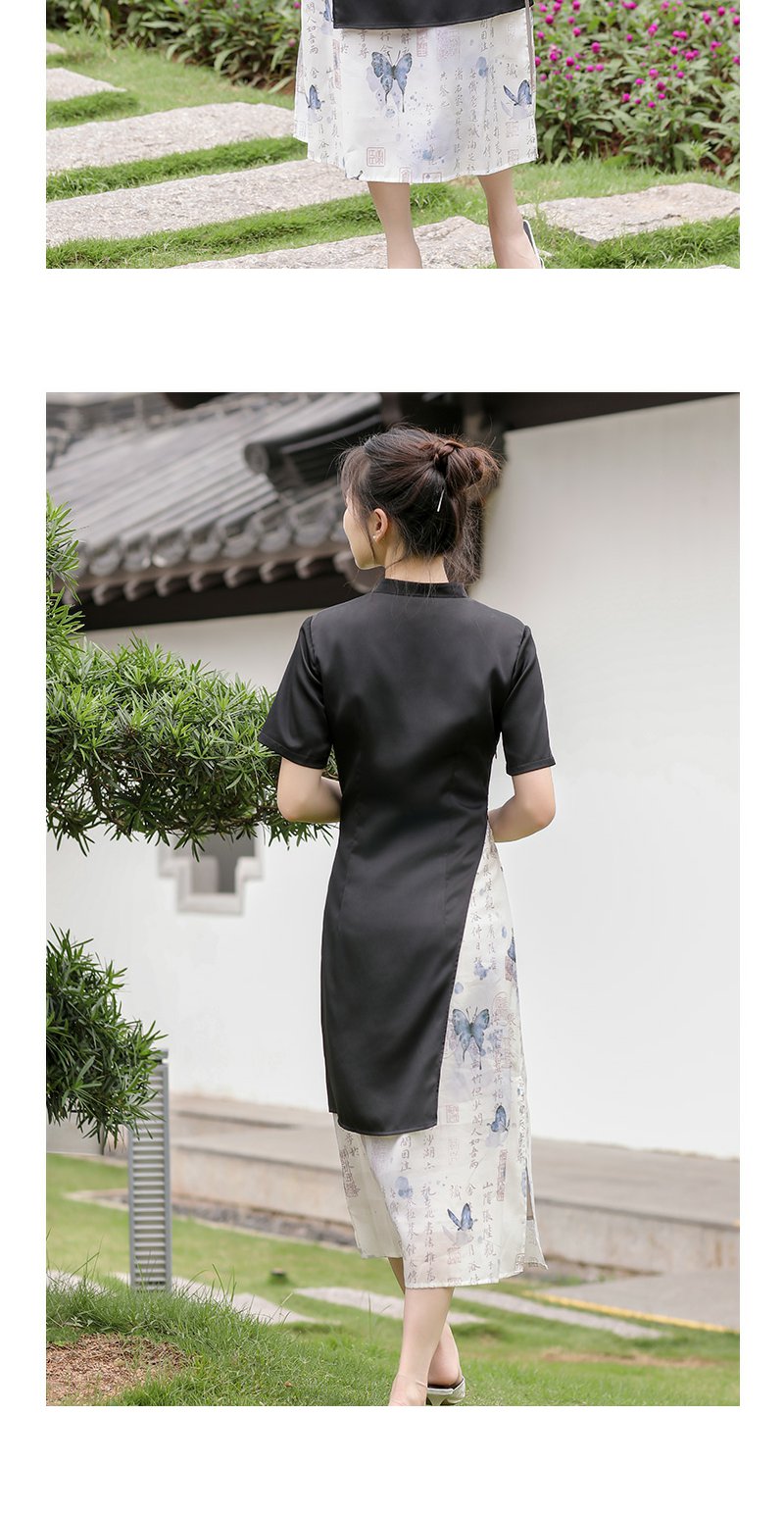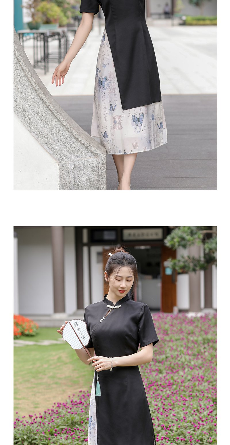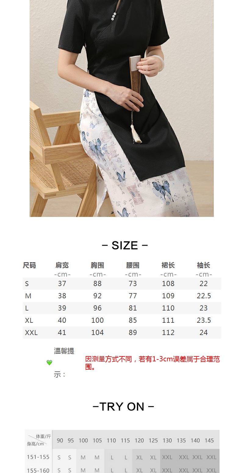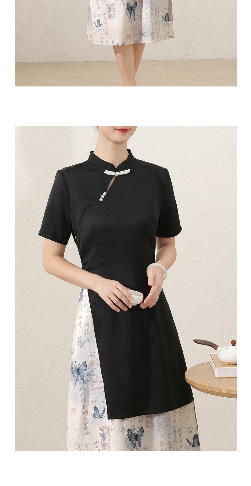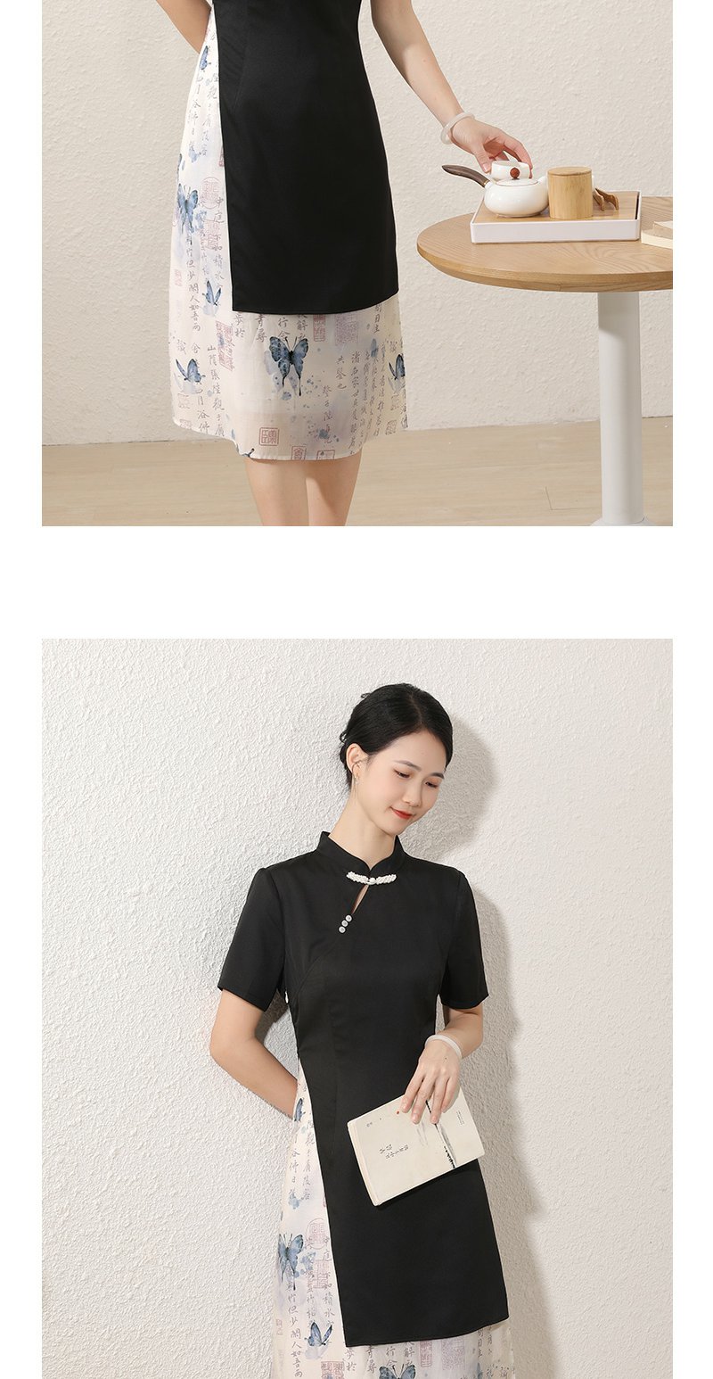 未风黑色改良旗袍连衣裙女2025新款夏季新中式假两件国风显瘦裙子