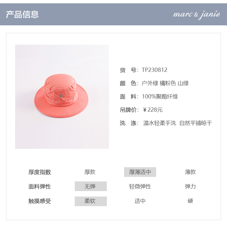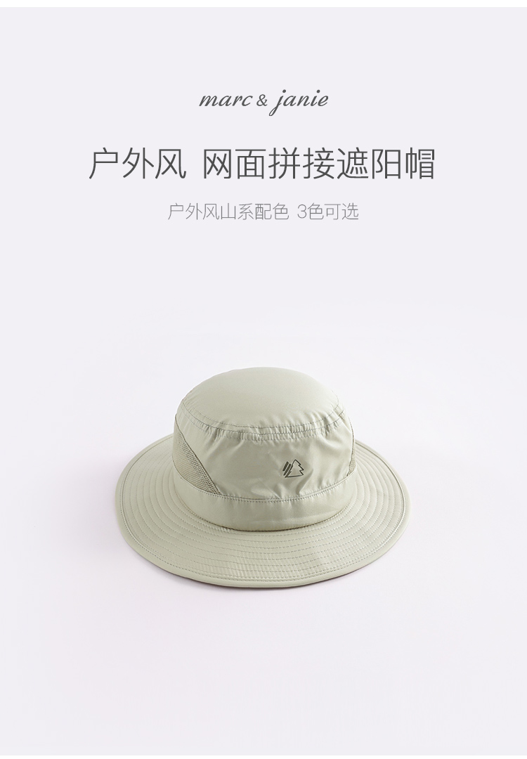 马克珍妮夏装新款 男女童户外风网面拼接遮阳渔夫帽230812