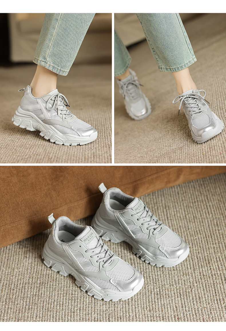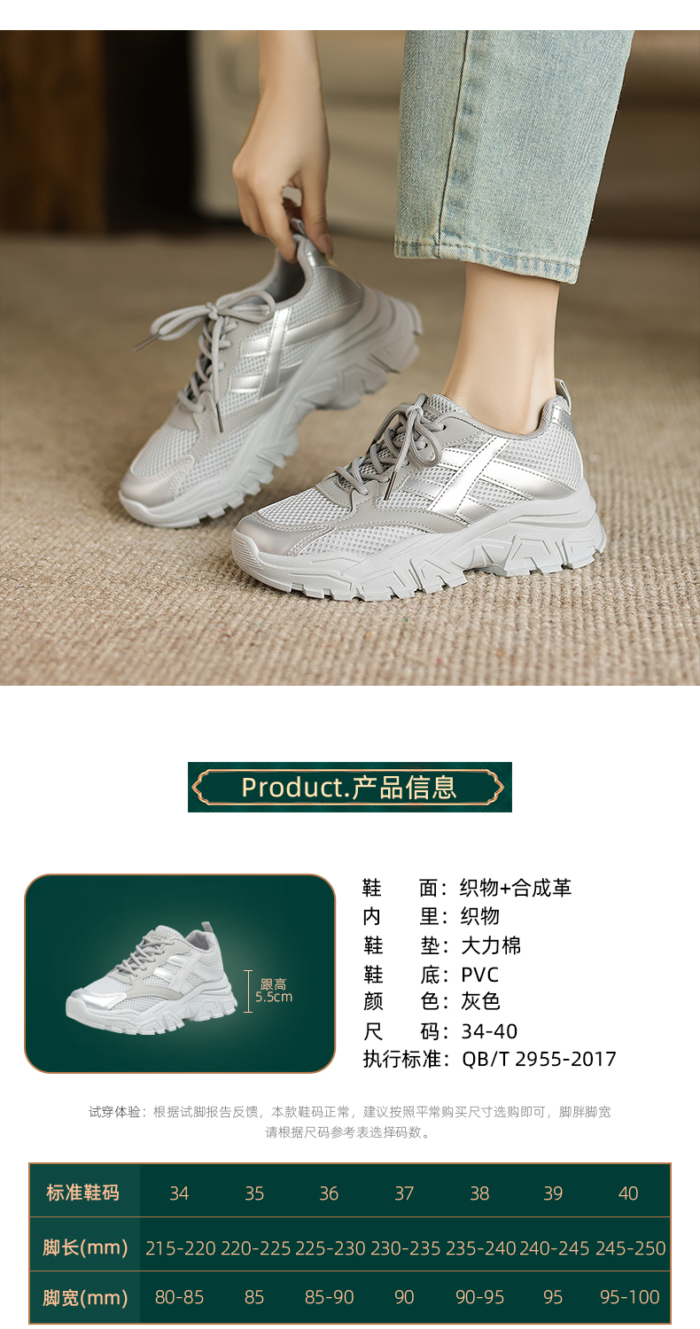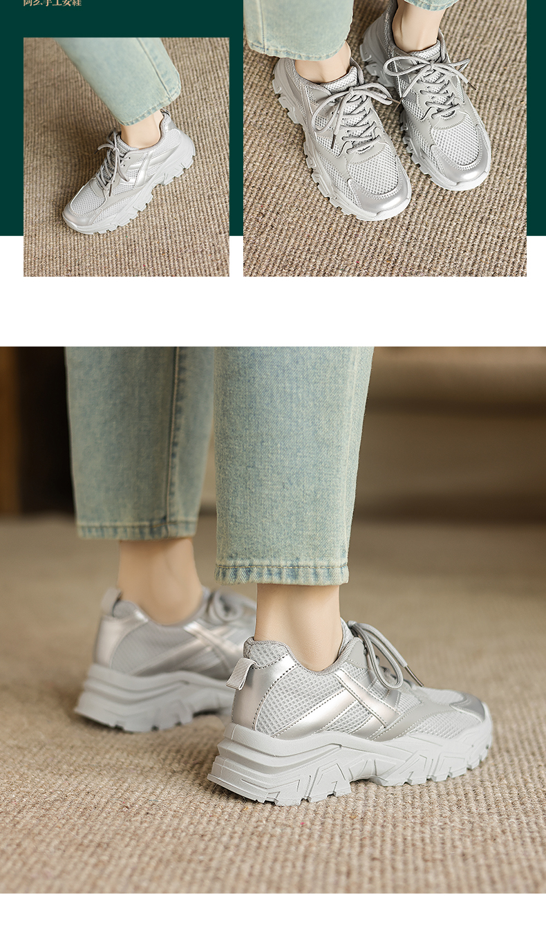 阿么手工女鞋网面透气休闲鞋女增高5.5CM软底舒适不累脚2025新款
