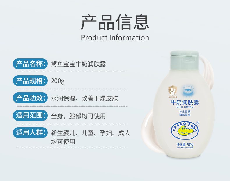 鳄鱼宝宝牛奶润肤露新生婴儿童身体乳200g