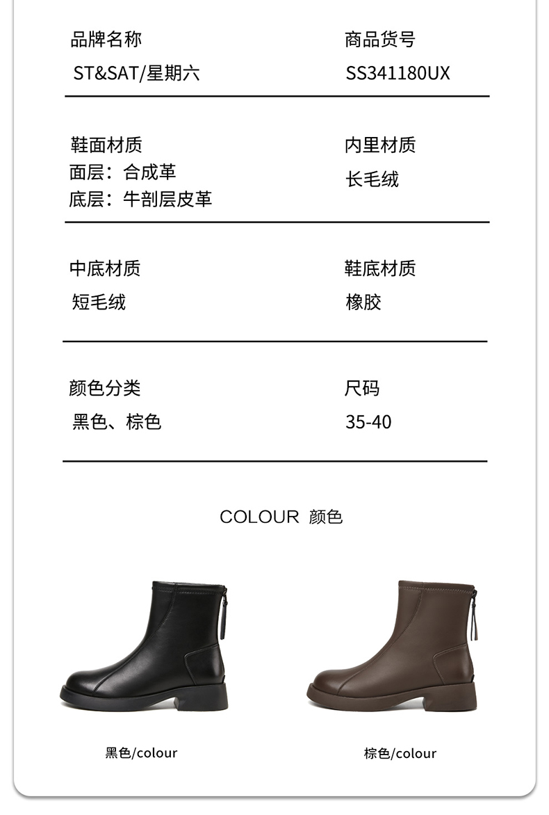 星期六通勤百搭简约绒里时尚短靴SS341180UX