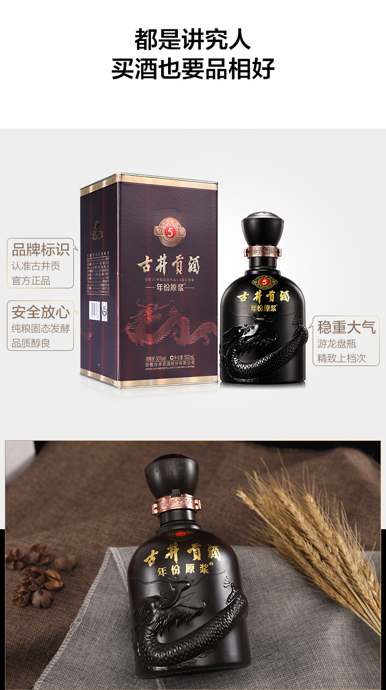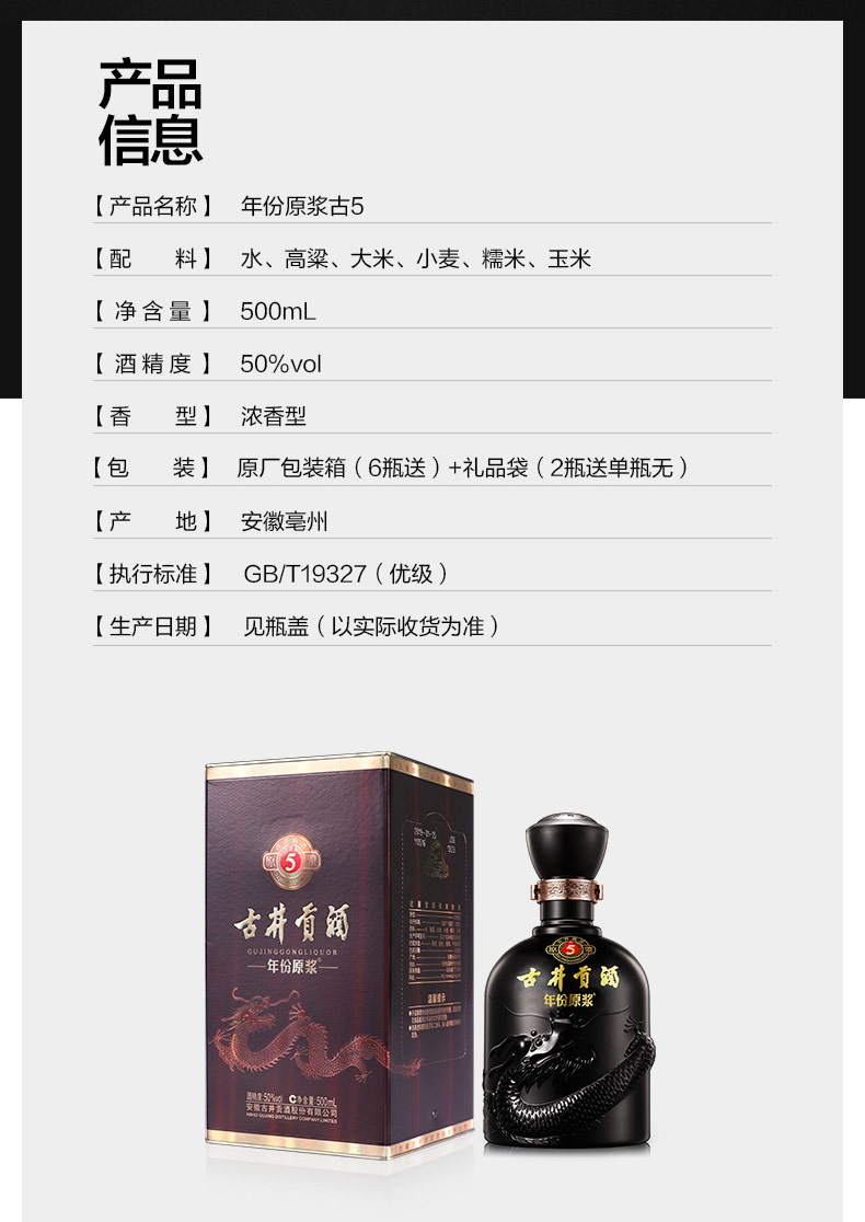 古井贡酒 年份原浆 古5 50度 单瓶装白酒500ml 口感浓香型 高度酒(新老包装随机发货)