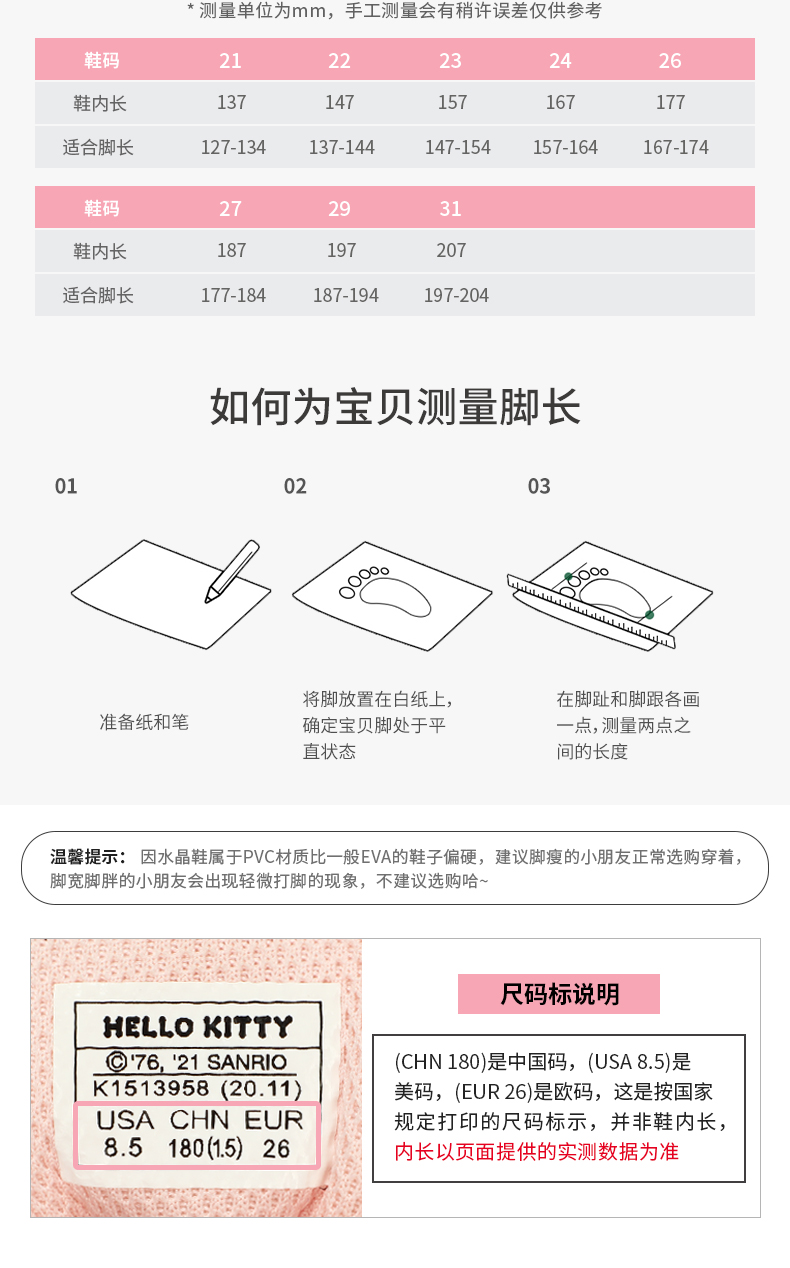 HELLOKITTY凯蒂猫童鞋四季果冻鞋24-31 K1815909A