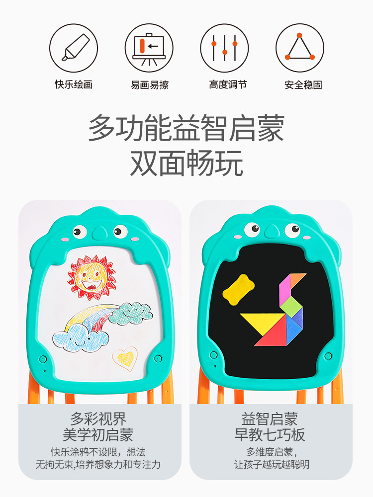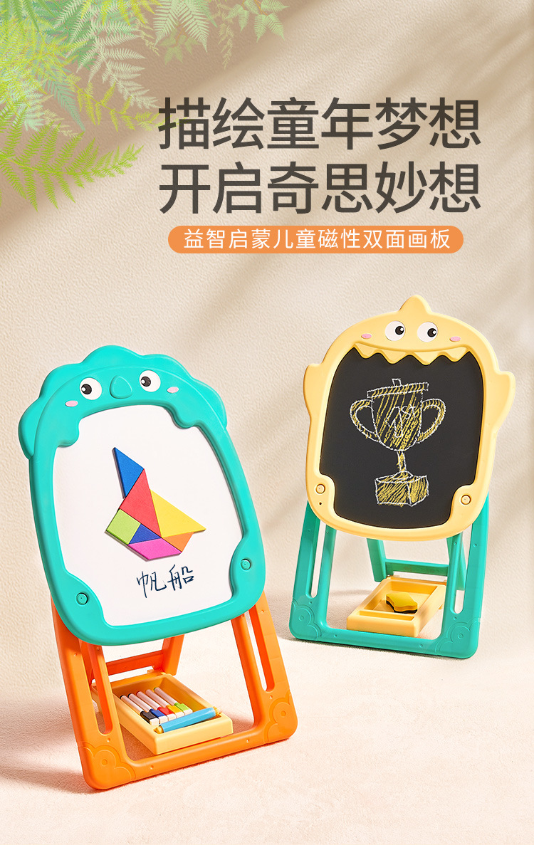 【快速折叠 轻松安装】益智启蒙儿童磁性双面画板 双面畅玩 底部收纳筐随手放 不易丢 让宝宝养成收纳好习惯
