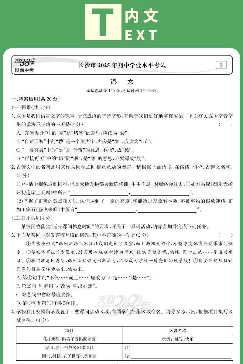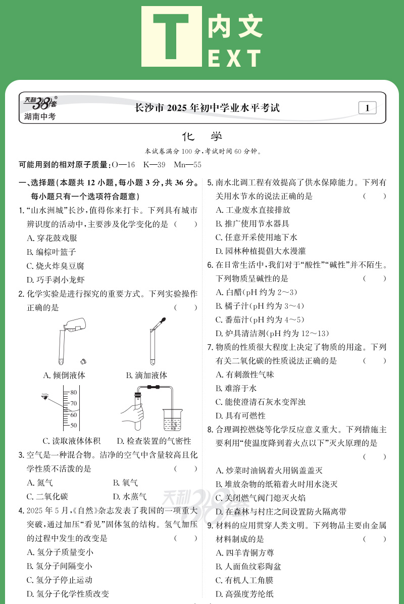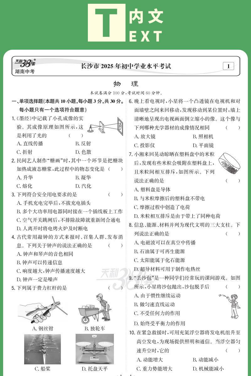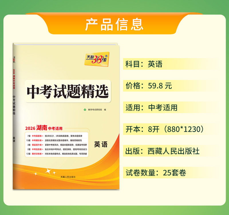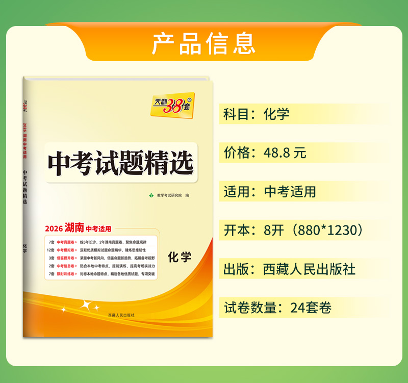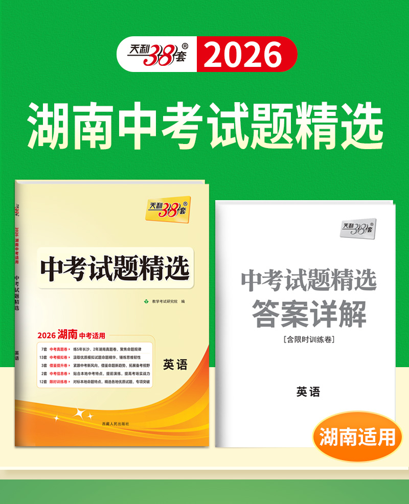 天利38套 2026湖南中考试题精选 语文 数学 英语 物理 化学 历史 道德与法治