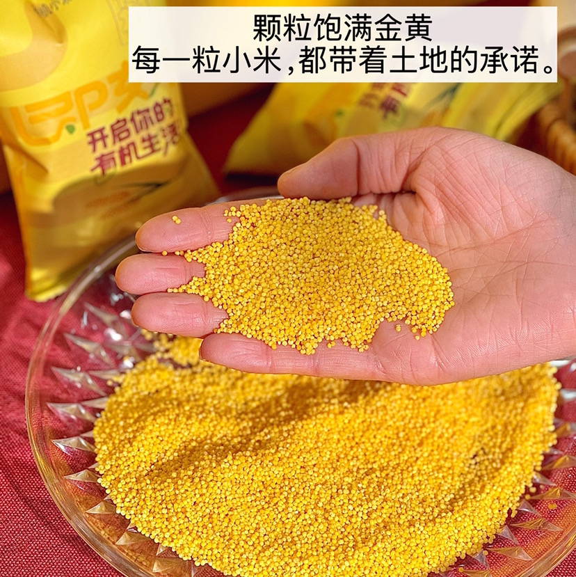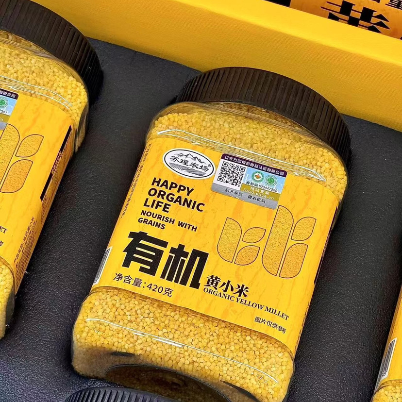 石家庄优选仓库速达,苏瑆农场有机小米,色泽黄润均匀,米粒饱满圆润,保留原始小米的原色原香,净重2.52kg礼盒装(420g*6)
