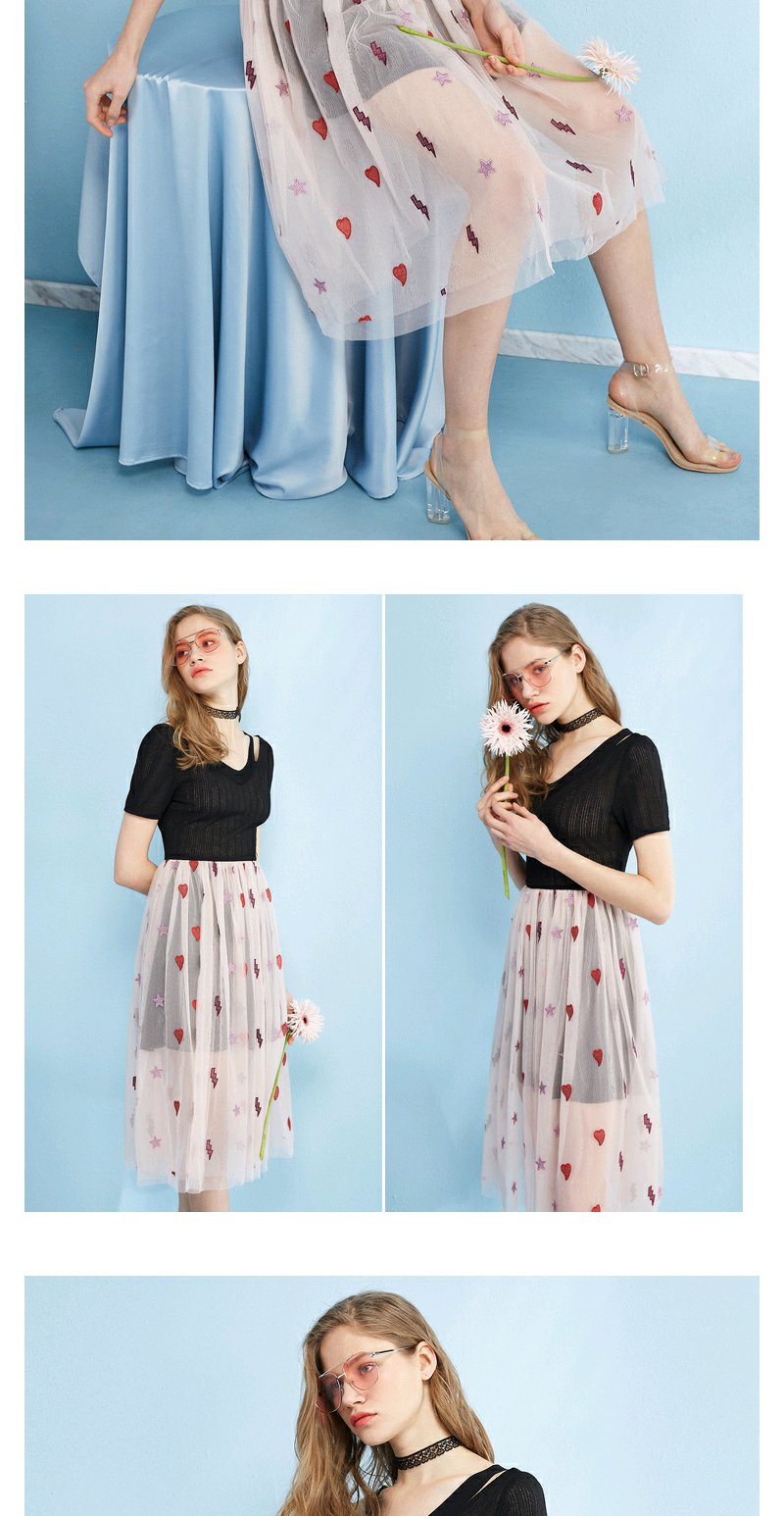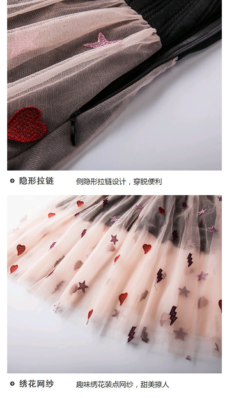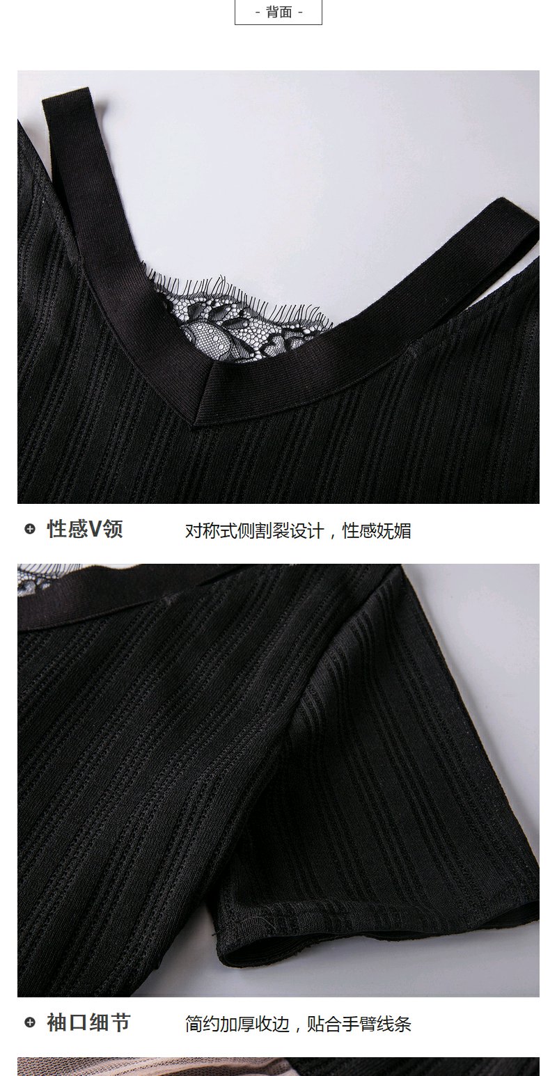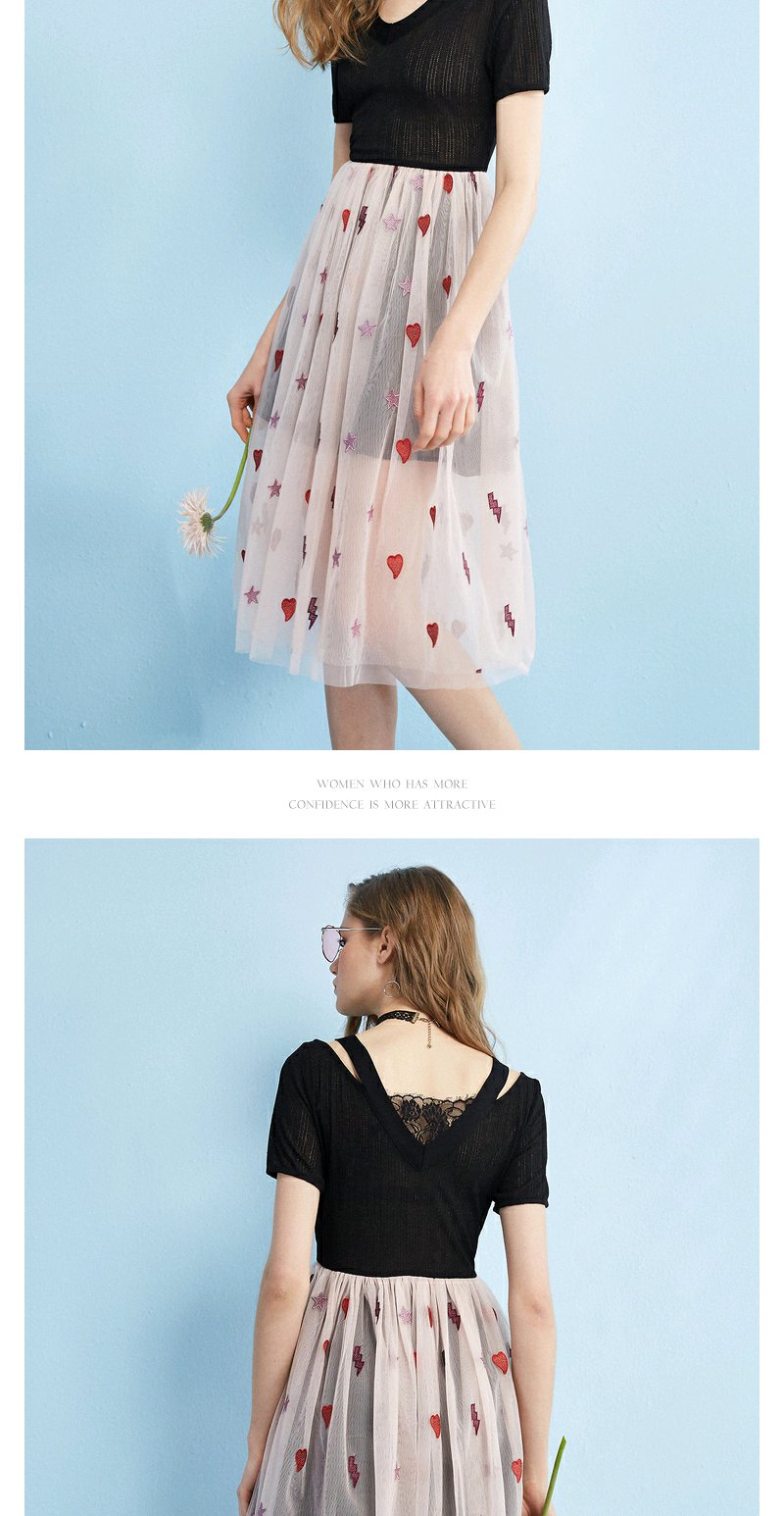 欧芮儿 夏装新款蕾丝拼接V领网纱绣花针织连衣裙女中长款裙子