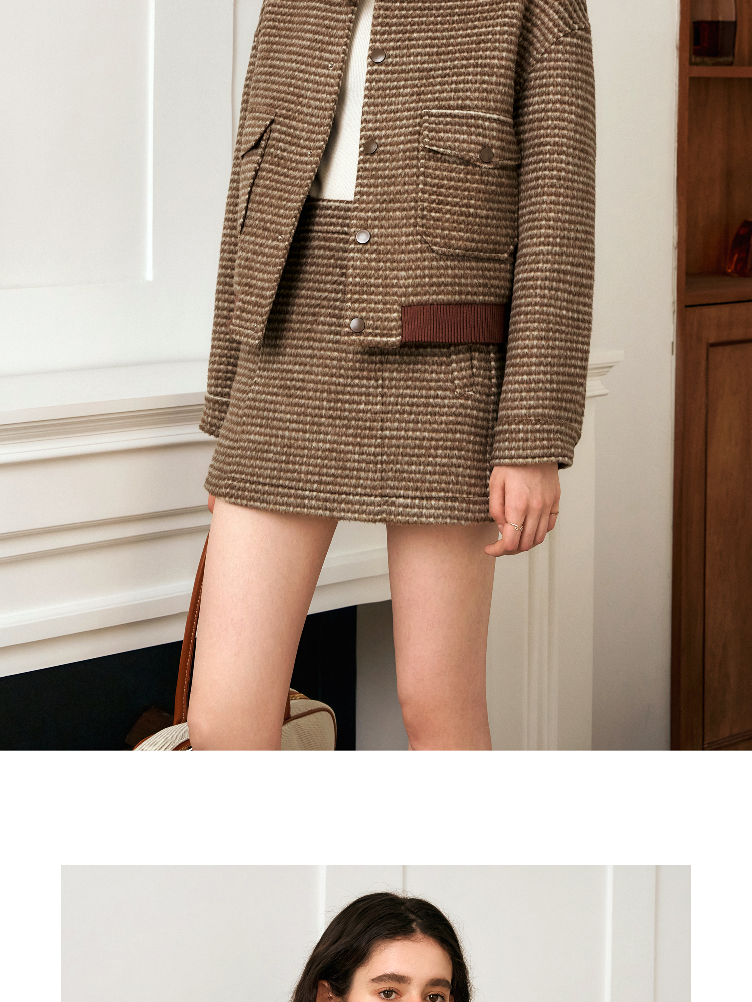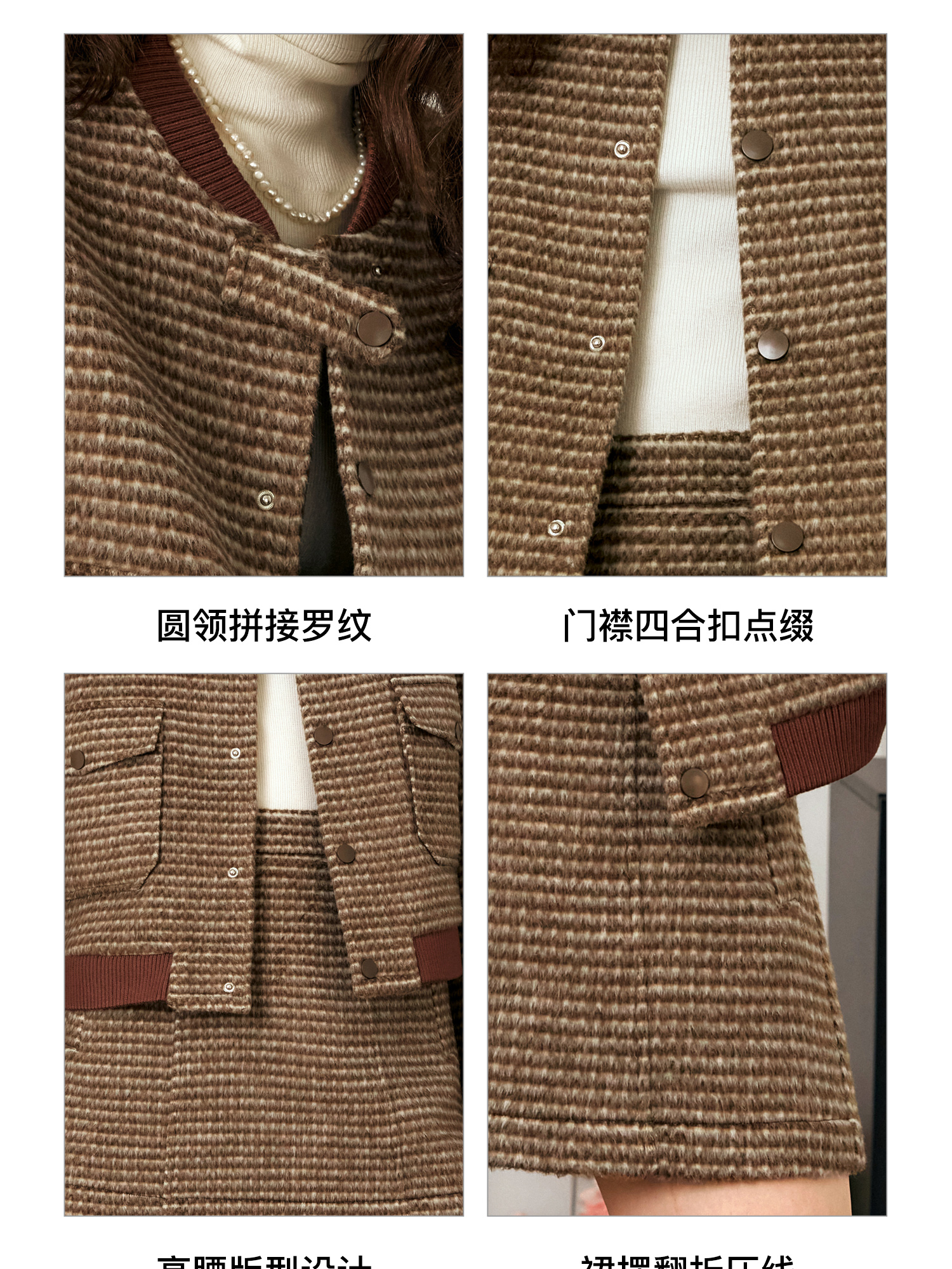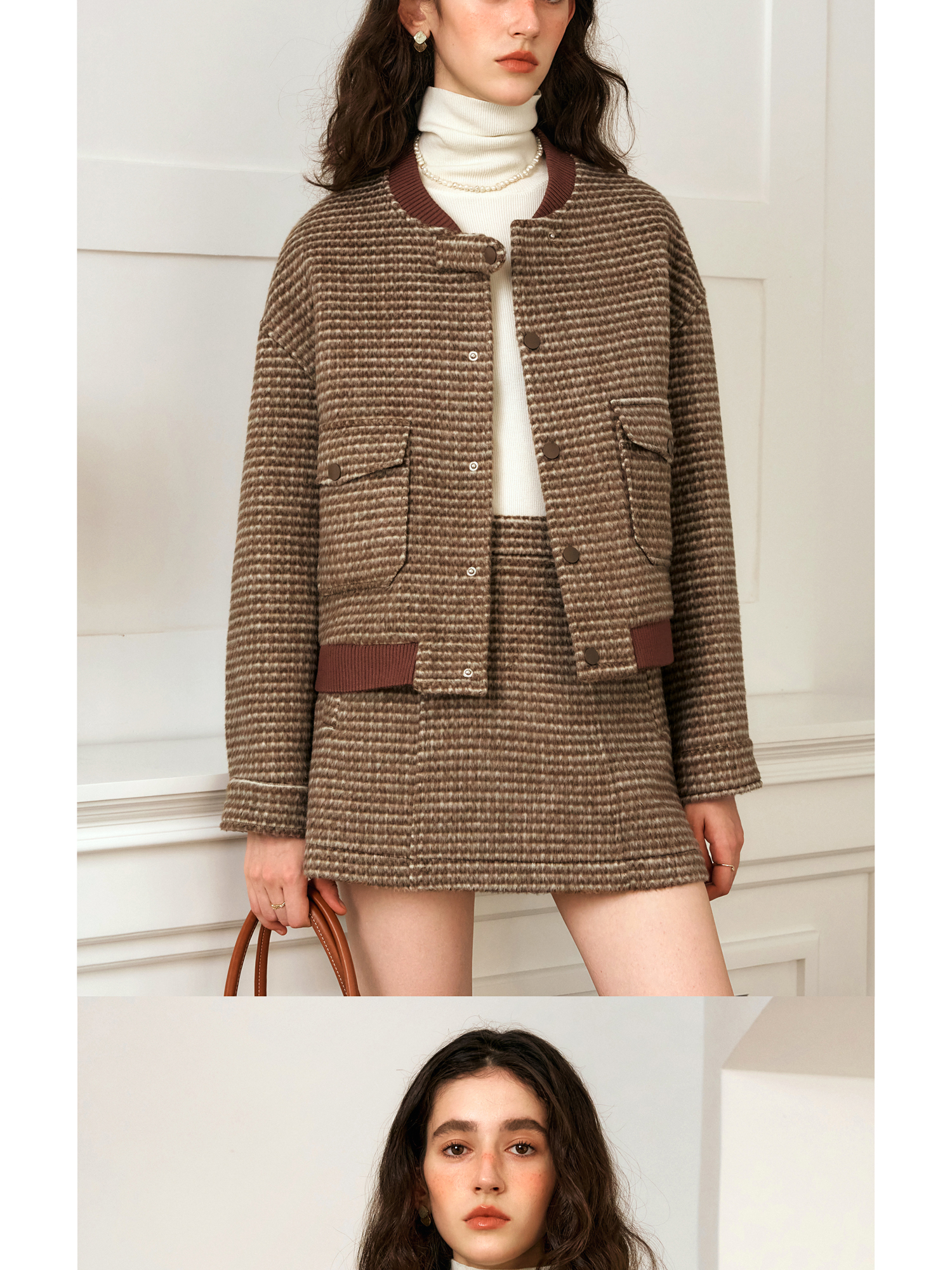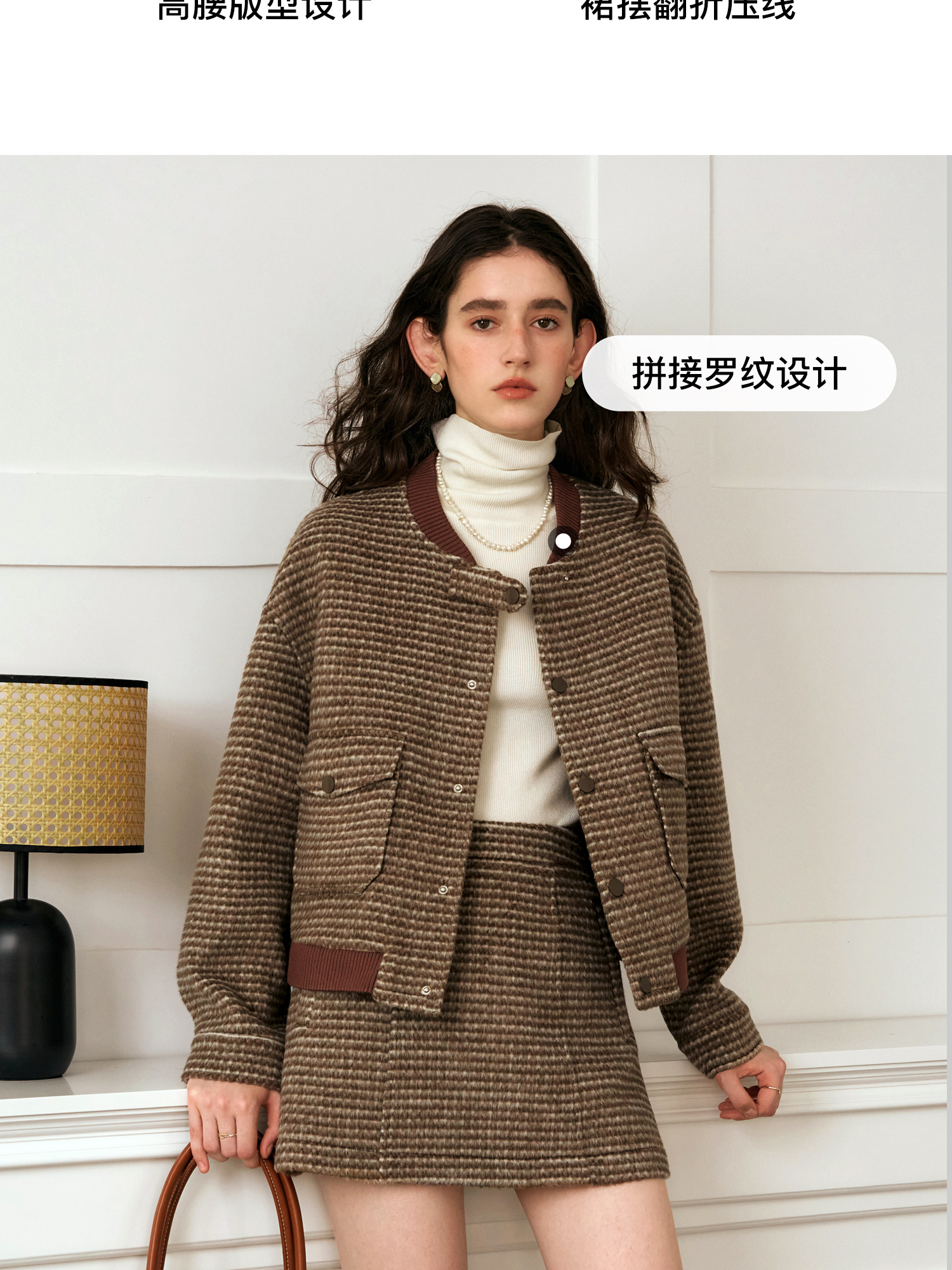 OLrain欧芮儿棕色时尚套装女冬季2024年新款毛呢A字短裙两件套