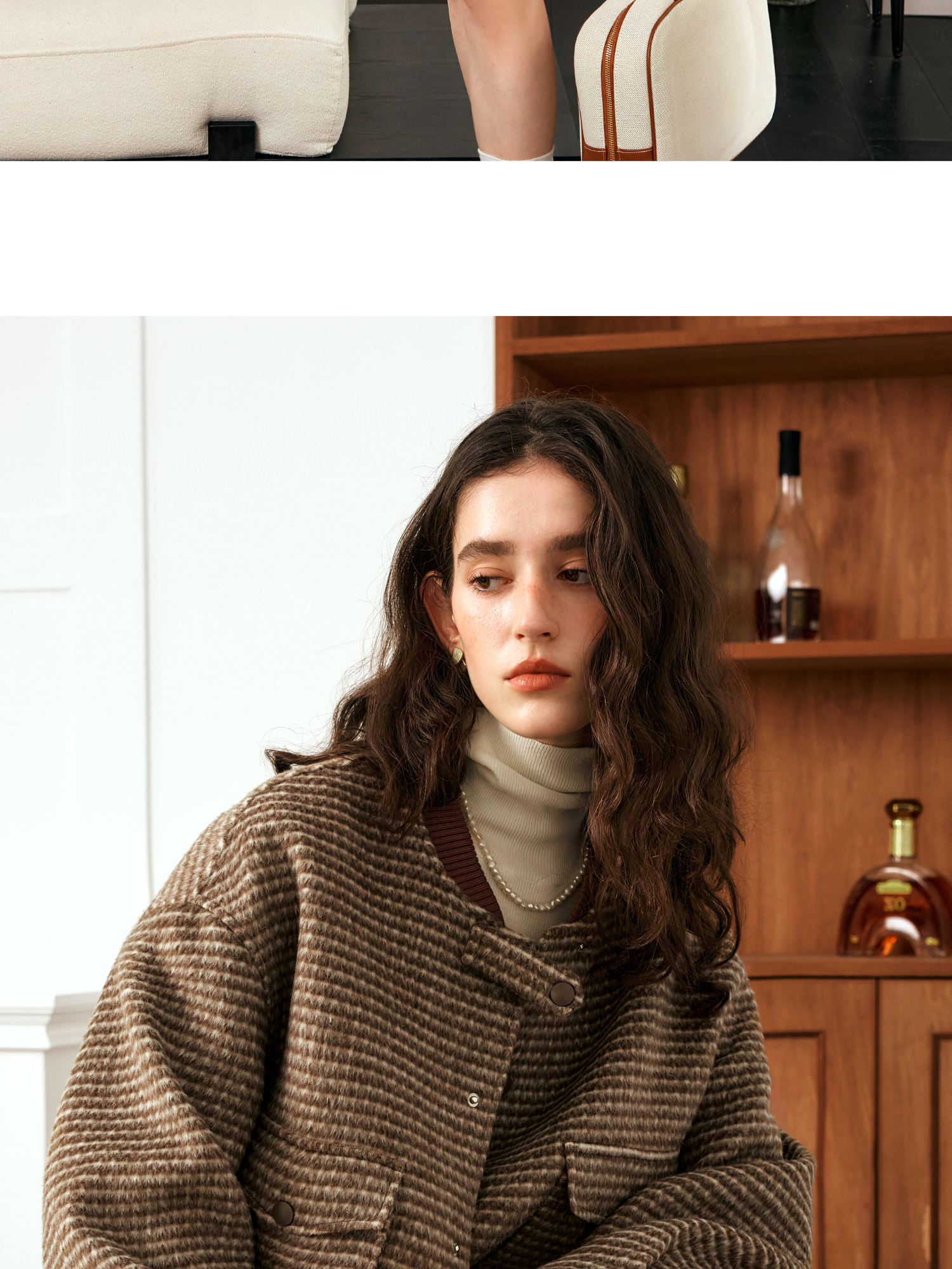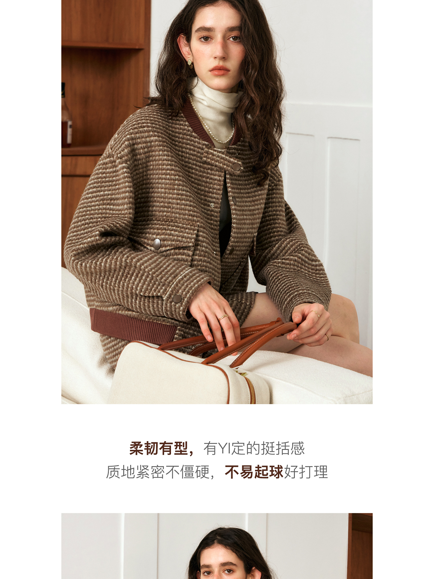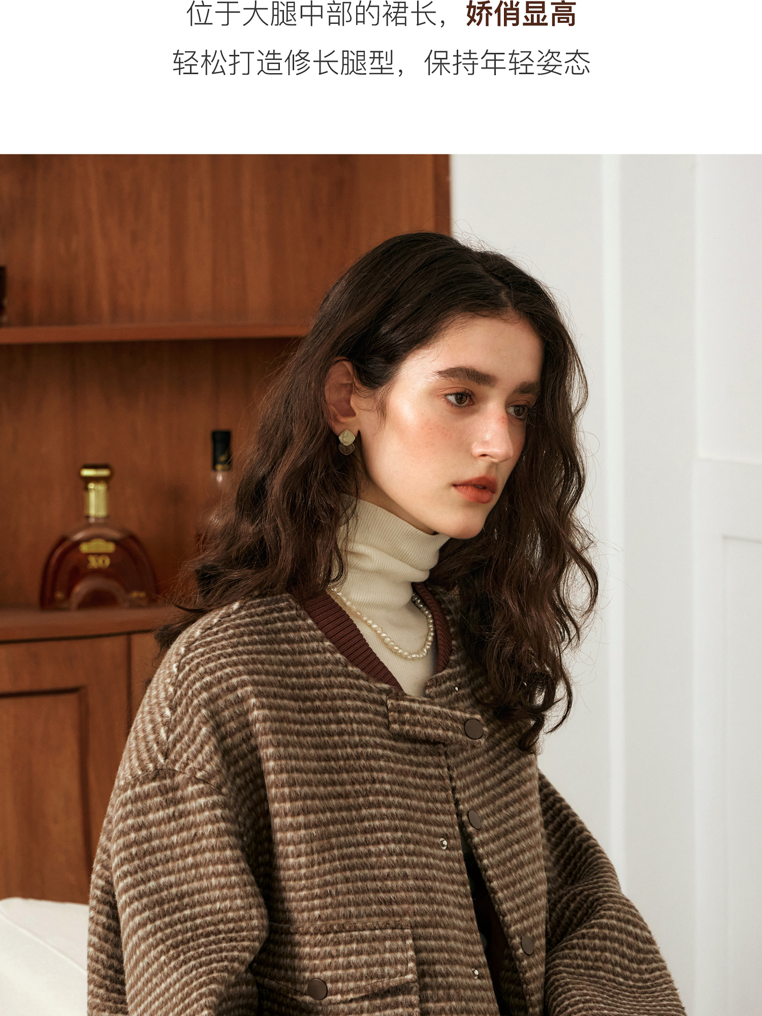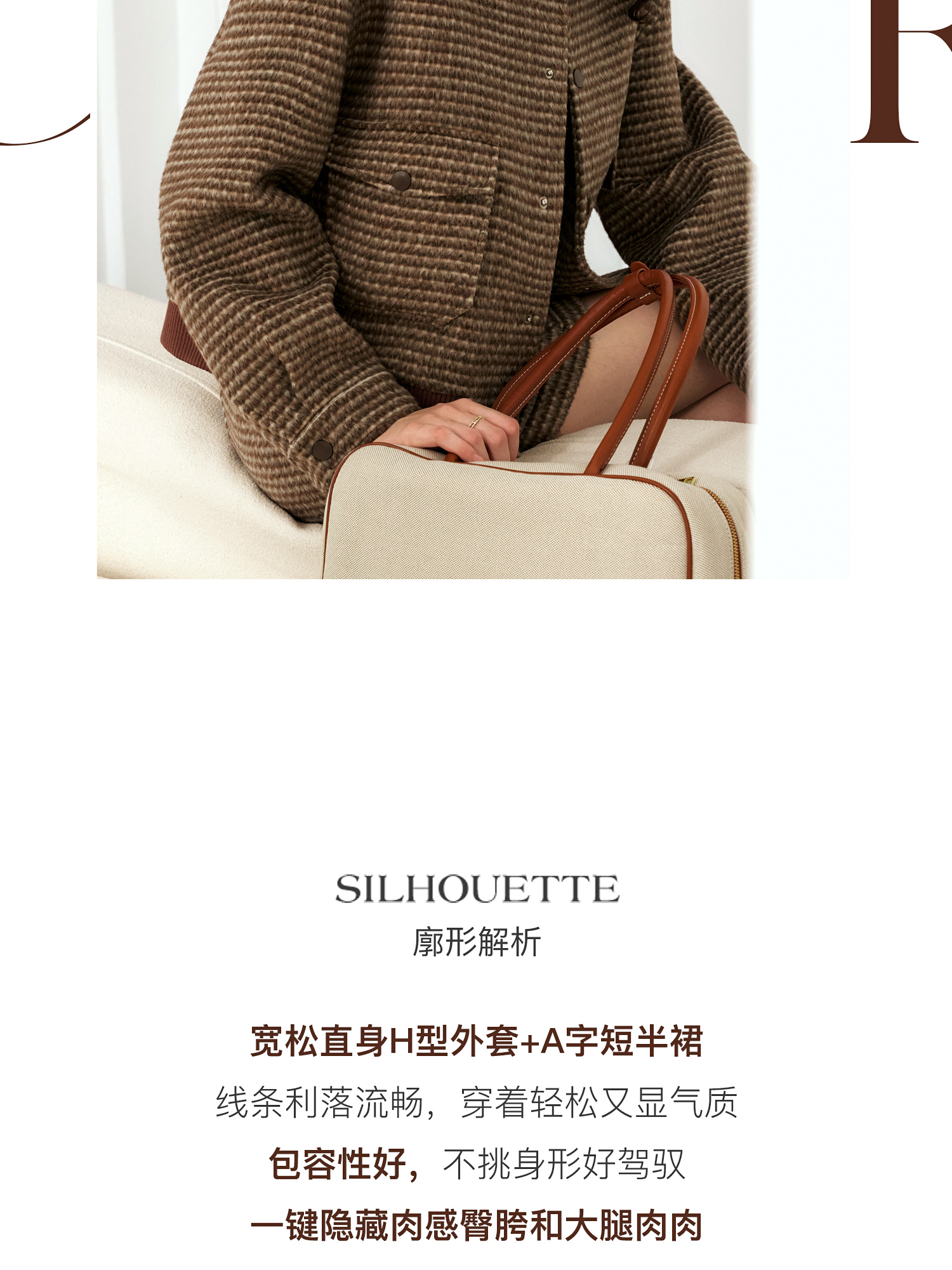 OLrain欧芮儿棕色时尚套装女冬季2024年新款毛呢A字短裙两件套