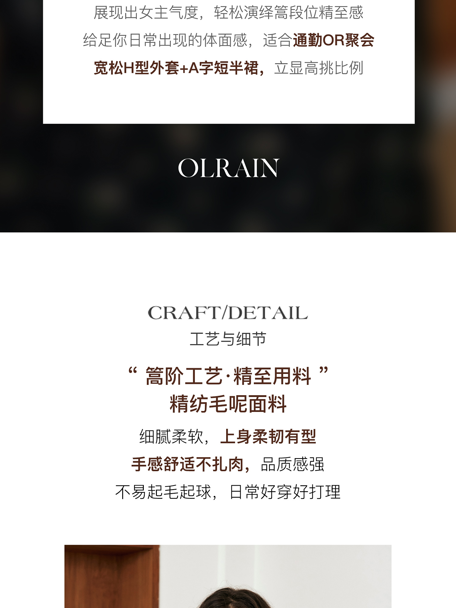 - “精致”是欧芮儿olrain品牌文化的核心,欧芮儿认为,精致的女人,不但要外在动人,更要内在迷人,内外兼修,有魅力、有气质、有内涵,自信而不自傲,优雅而不矫揉,自有万种风情而不轻浮,更不故作矜持。